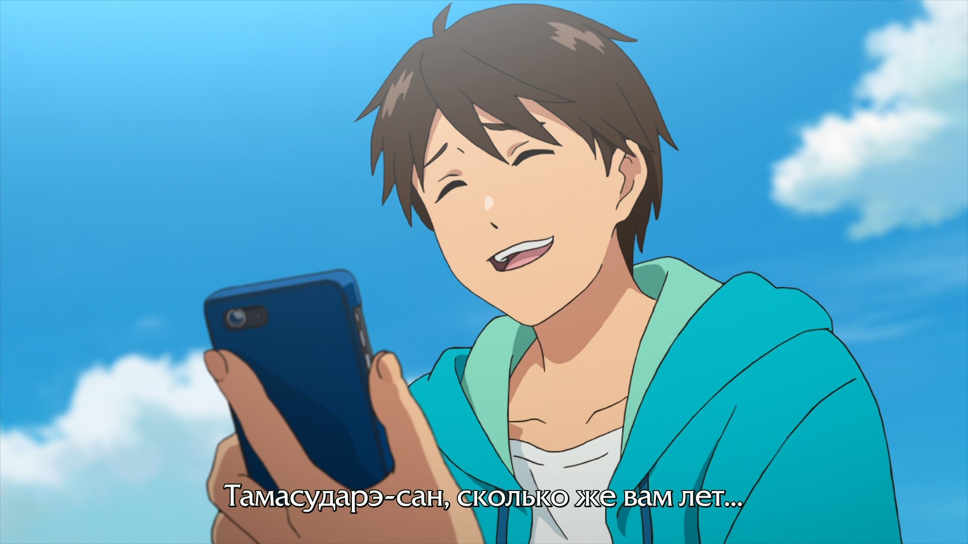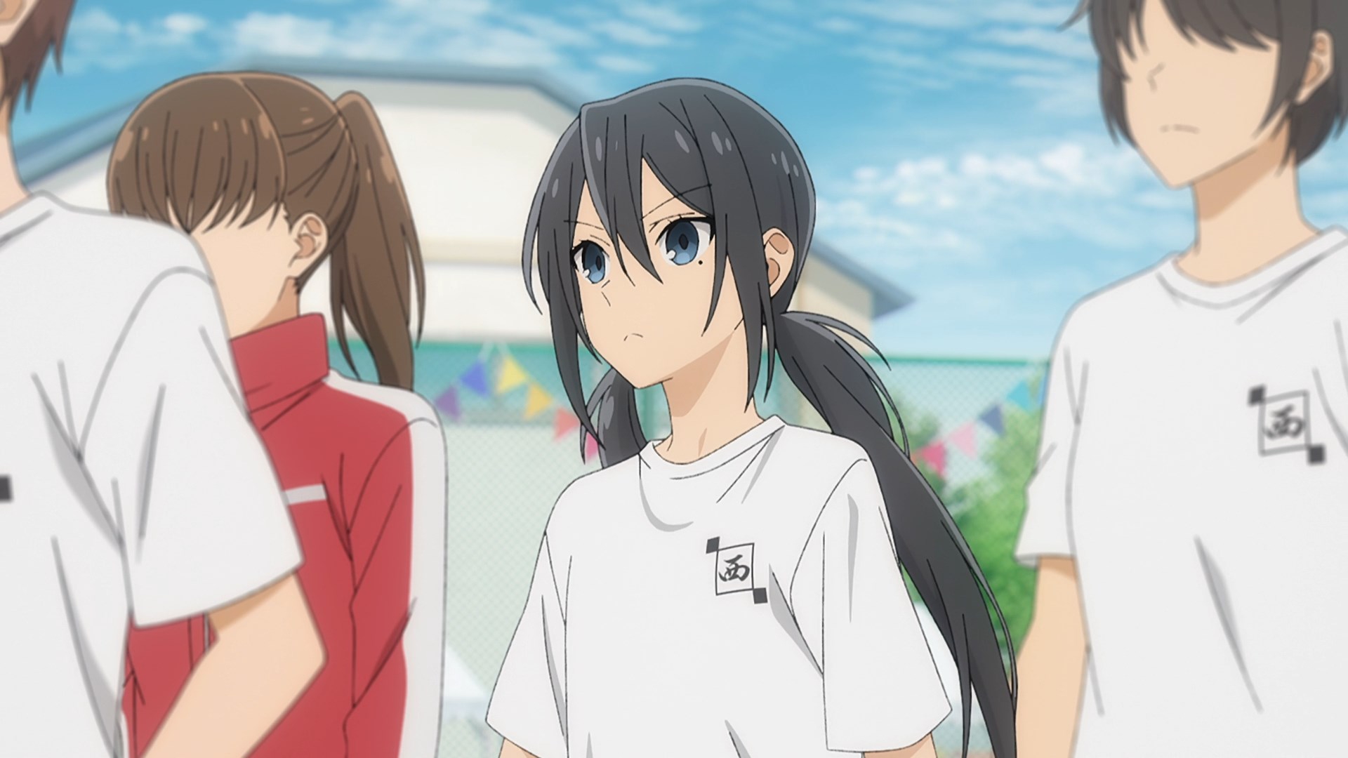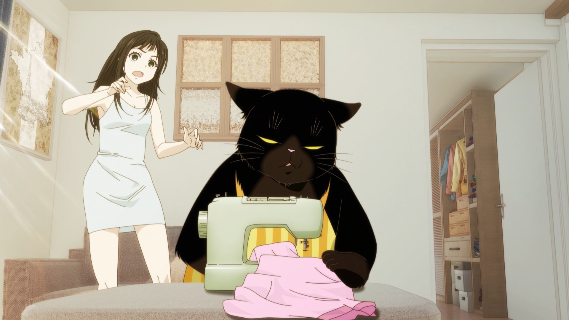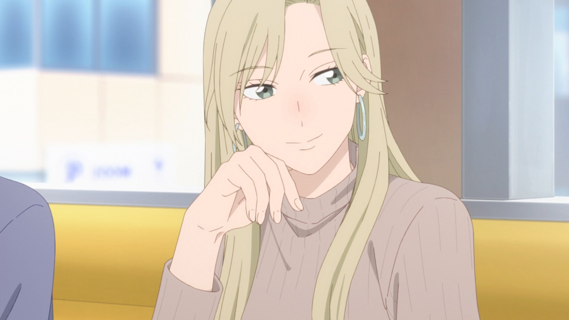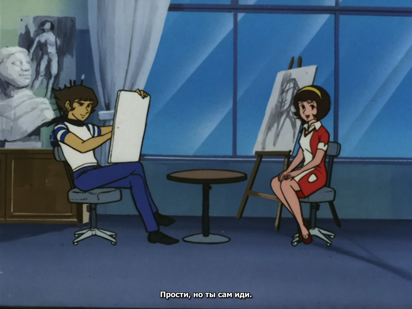 Забавно, что первая половина эпизода - такая более стилизованная и неанатомичная, хотя казалось бы - эпизод в летней пляжной кафешке. Немного похоже на имаишевский стиль, особенно анимация, но не он.