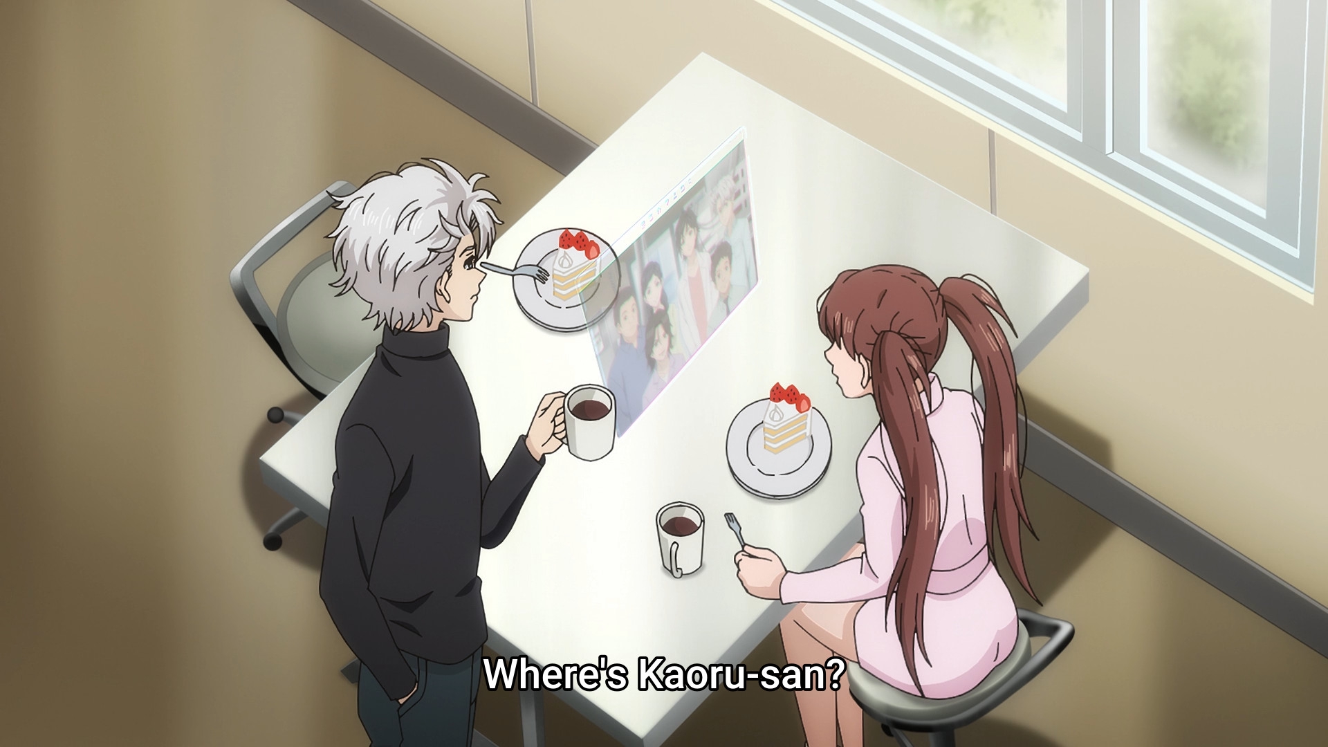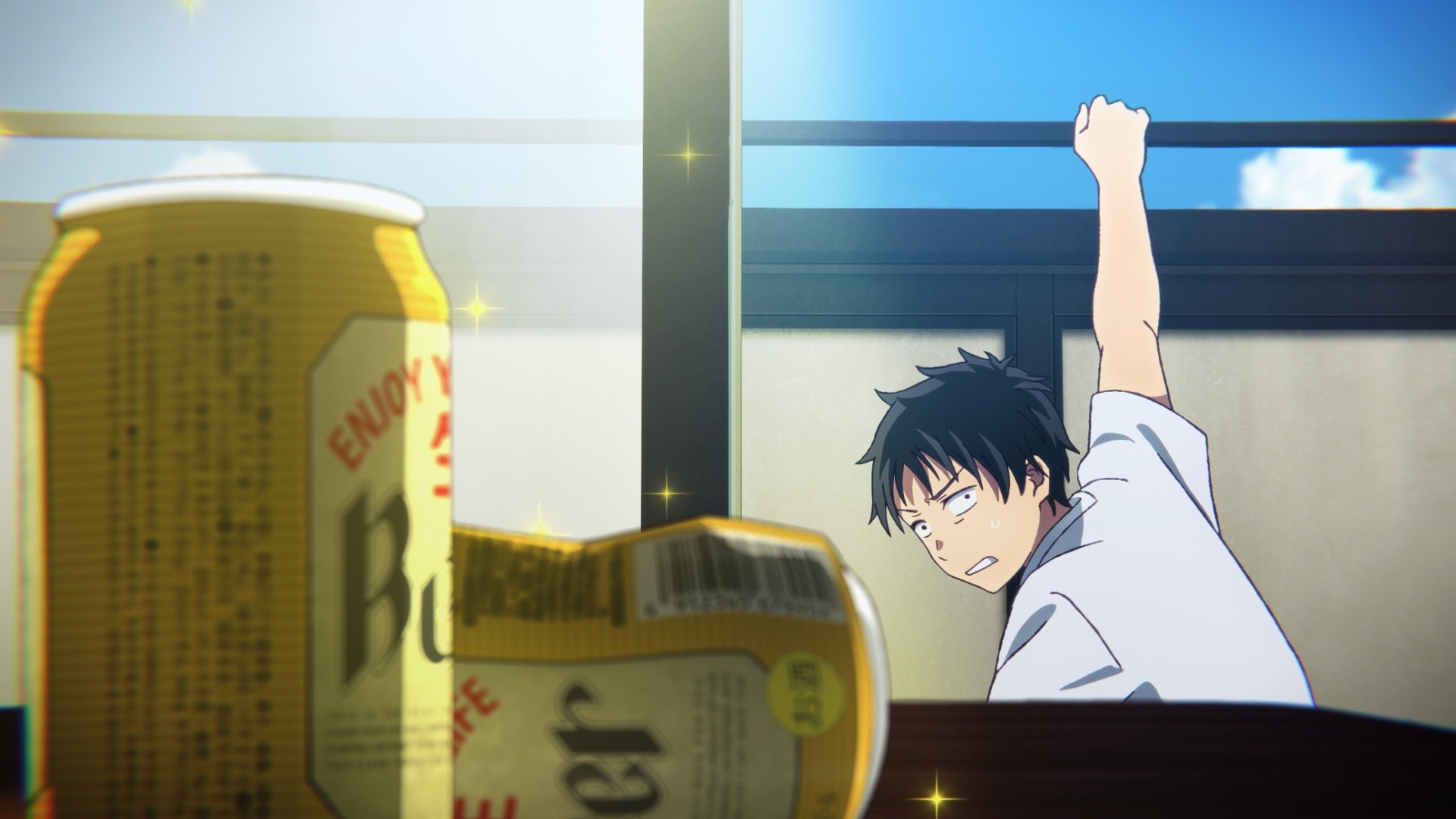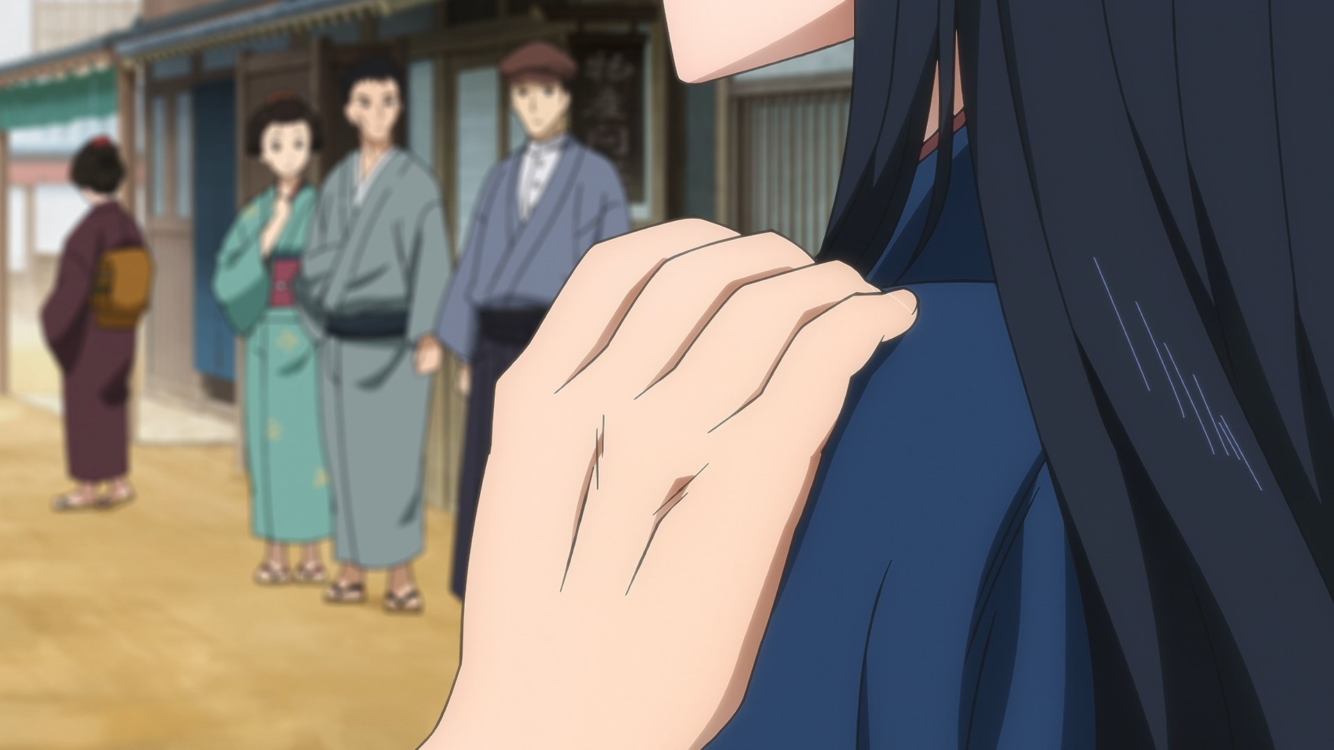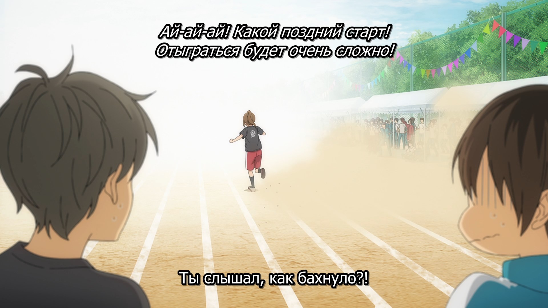 Забавно, что первая половина эпизода - такая более стилизованная и неанатомичная, хотя казалось бы - эпизод в летней пляжной кафешке. Немного похоже на имаишевский стиль, особенно анимация, но не он.
