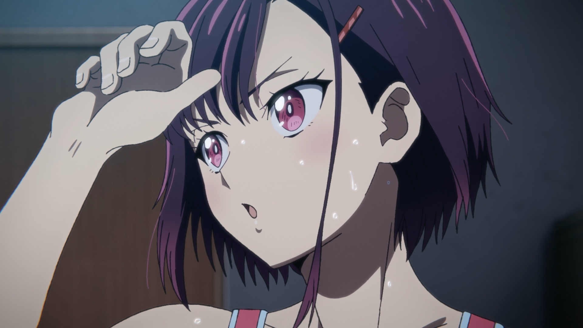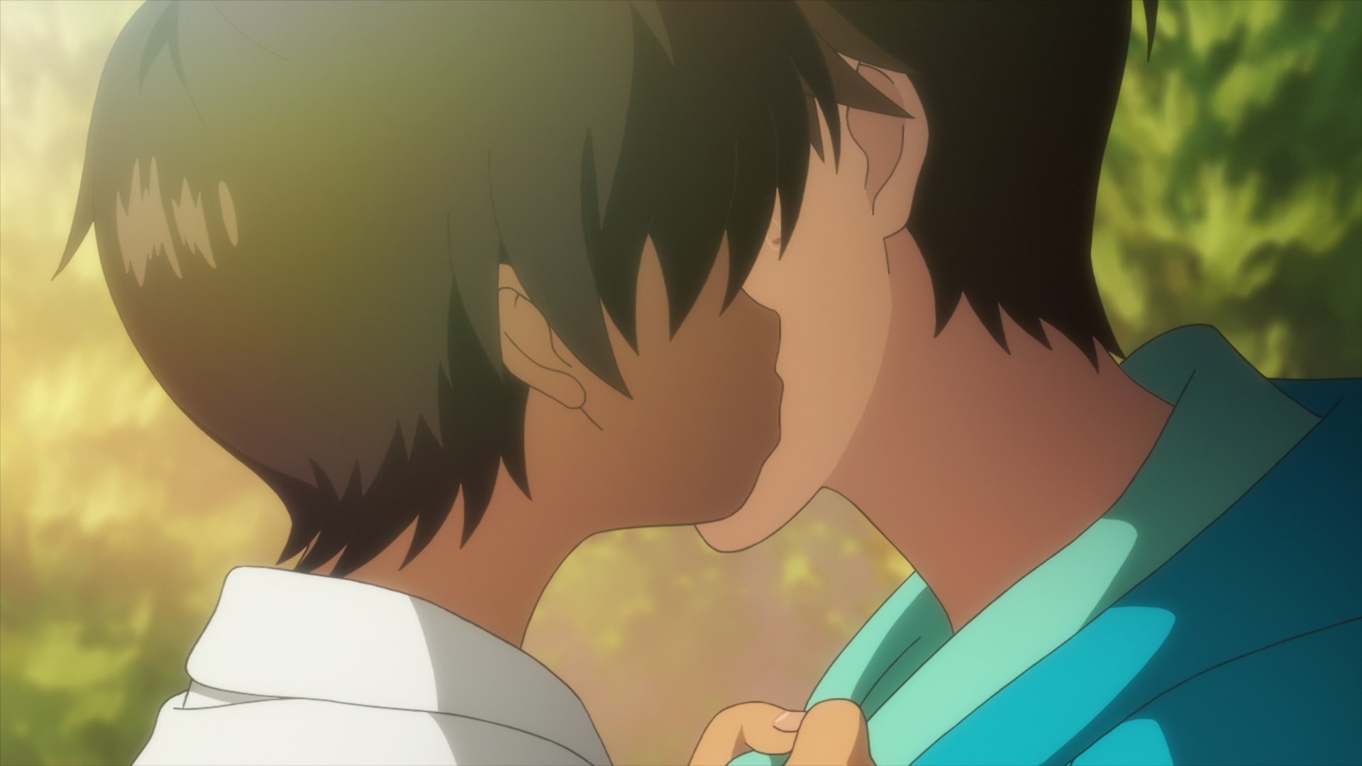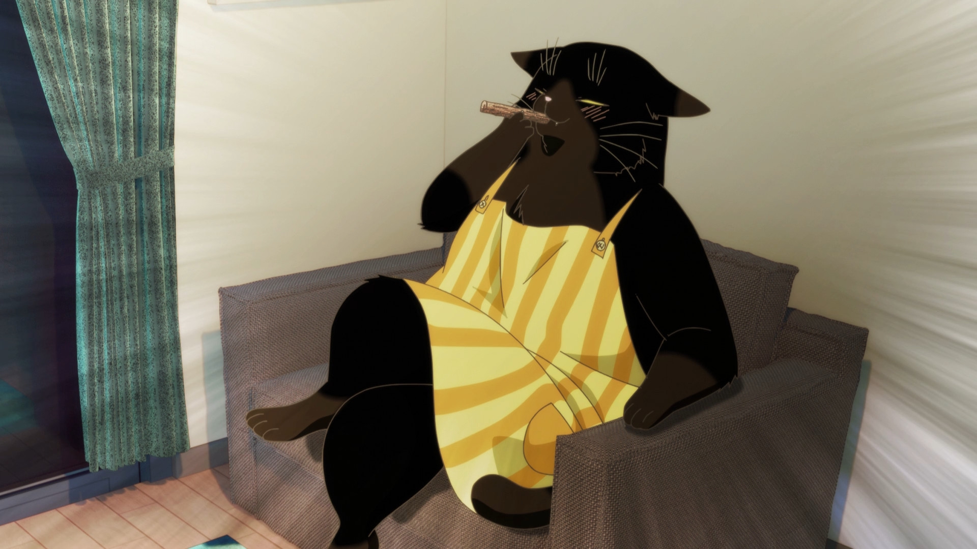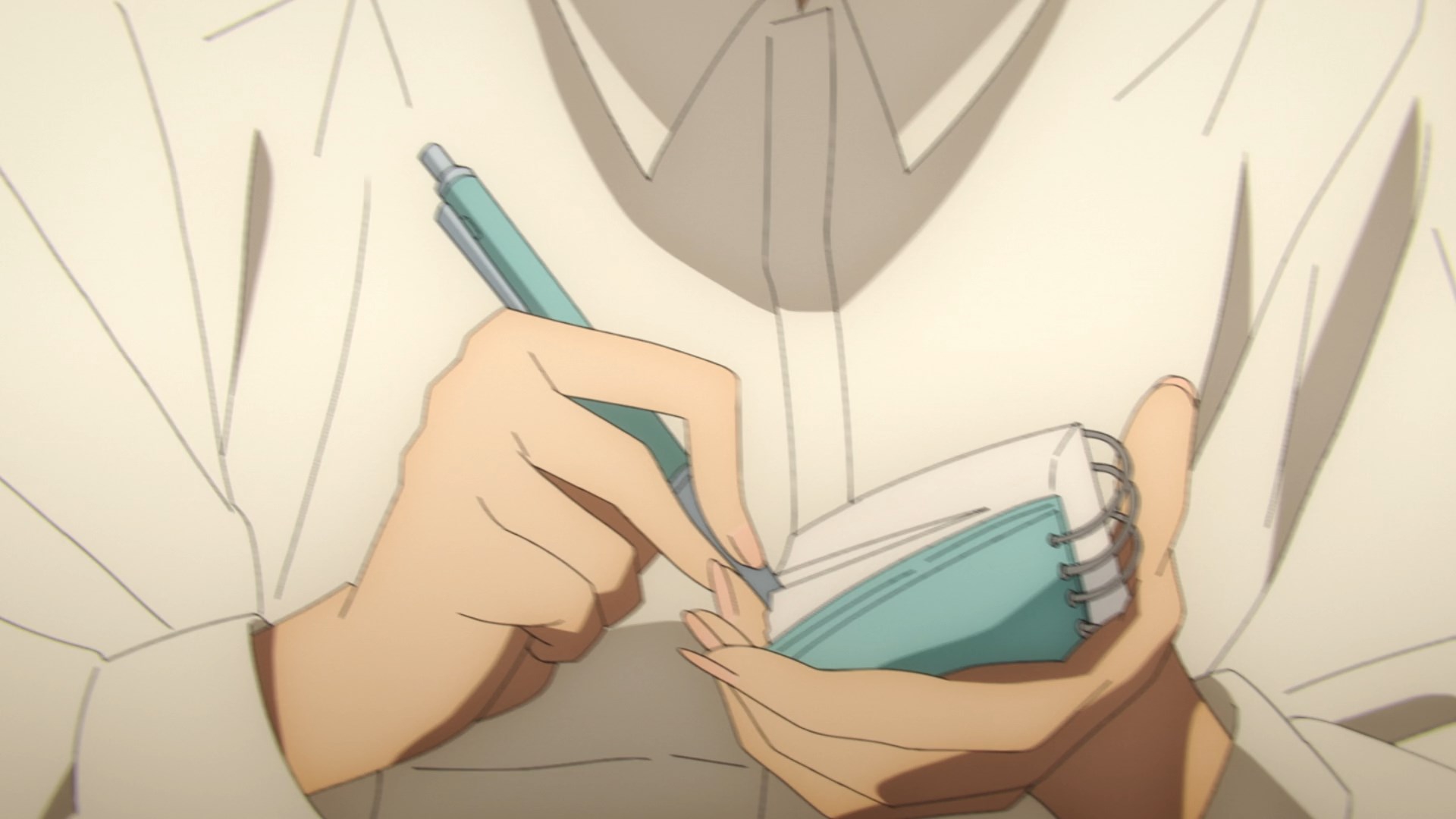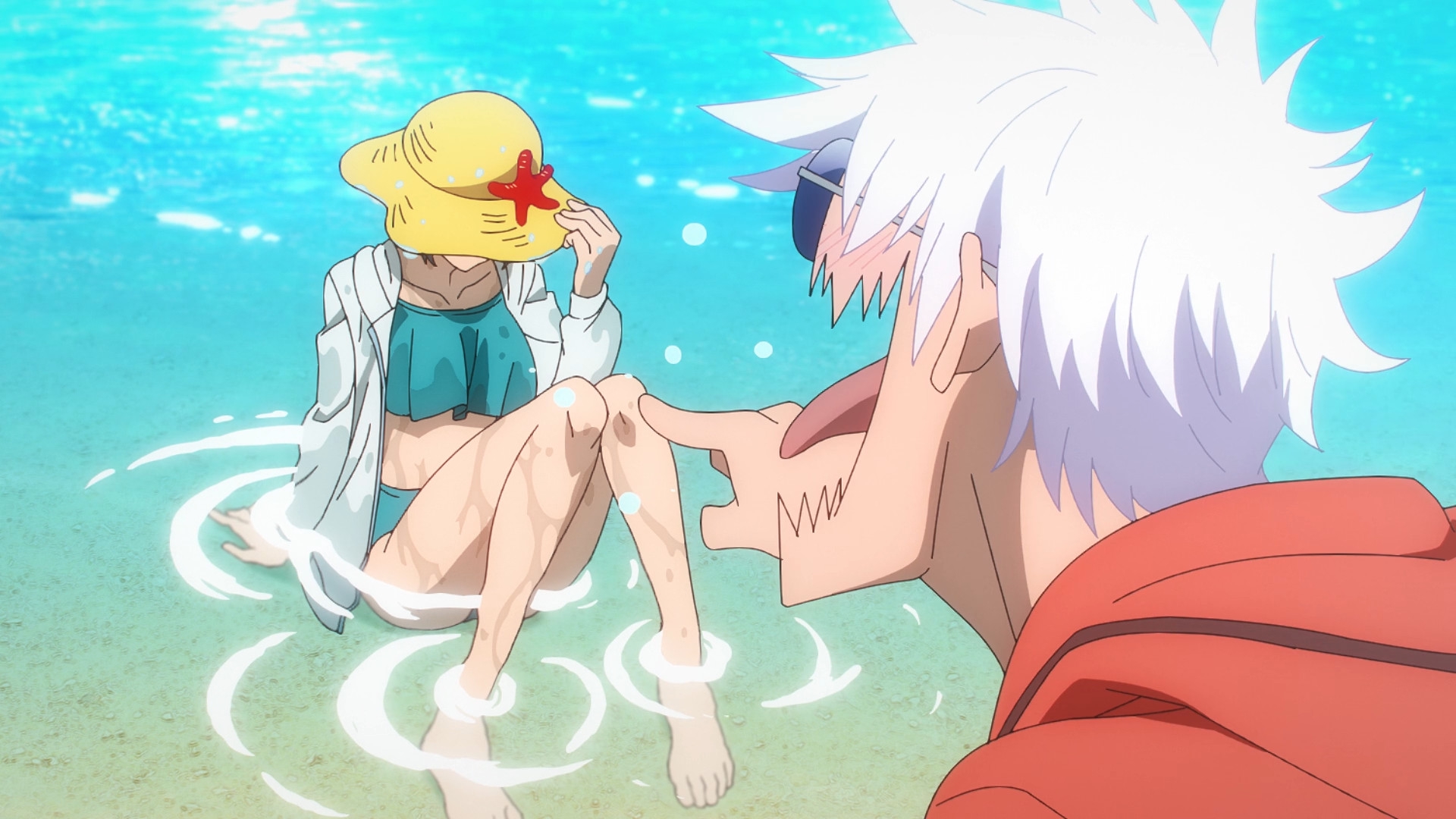 Забавно, что первая половина эпизода - такая более стилизованная и неанатомичная, хотя казалось бы - эпизод в летней пляжной кафешке. Немного похоже на имаишевский стиль, особенно анимация, но не он.
