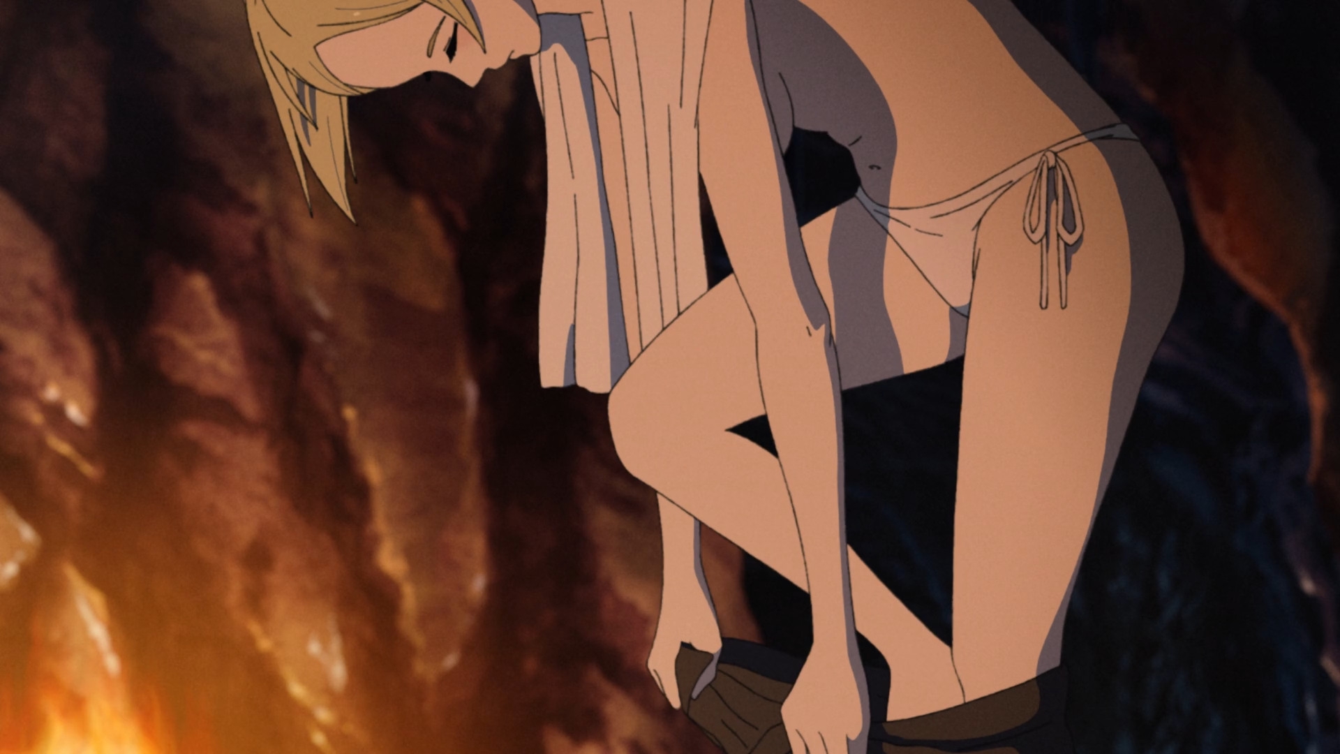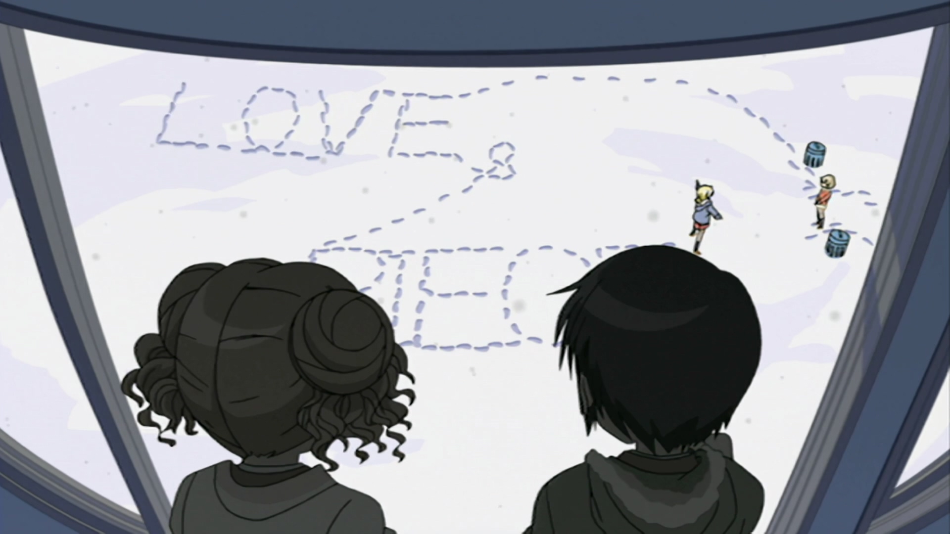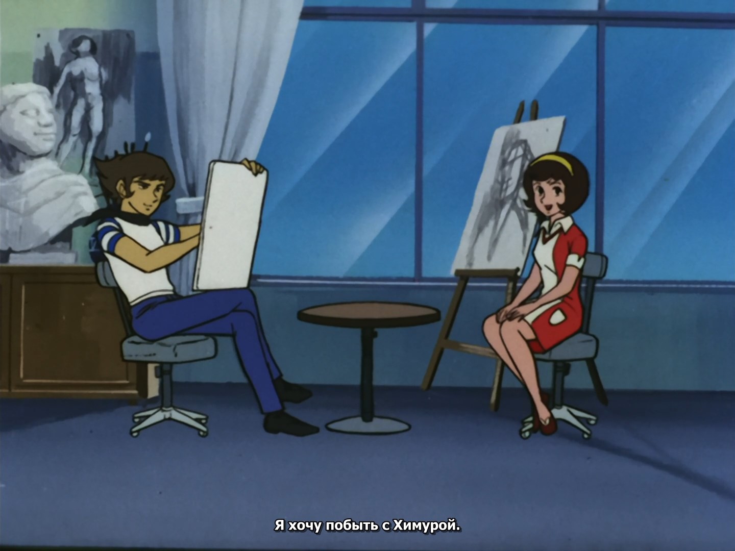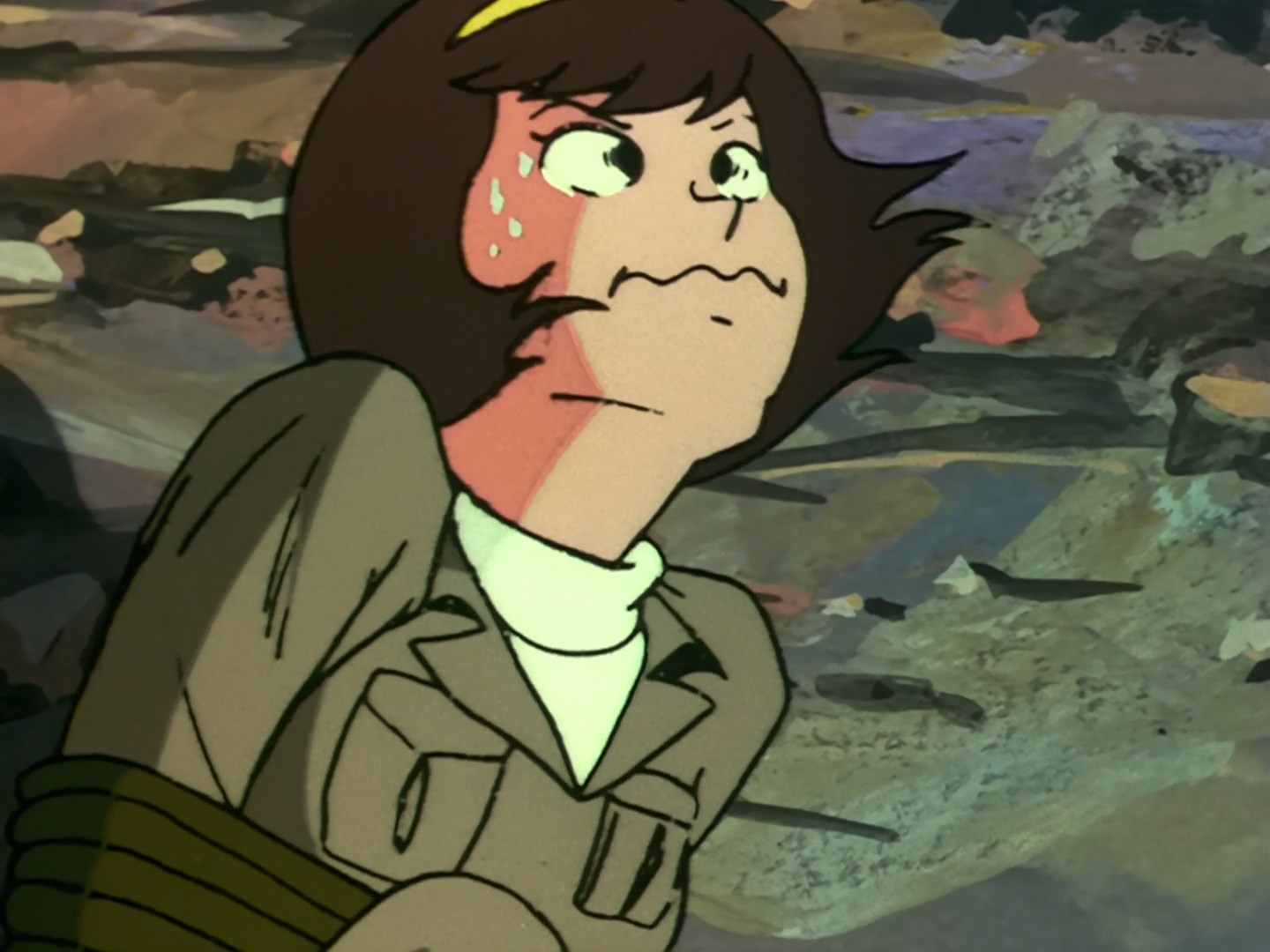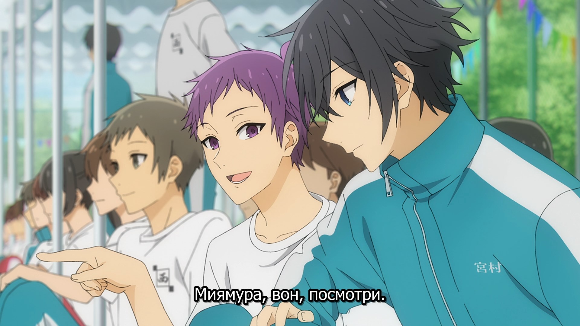 Забавно, что первая половина эпизода - такая более стилизованная и неанатомичная, хотя казалось бы - эпизод в летней пляжной кафешке. Немного похоже на имаишевский стиль, особенно анимация, но не он.