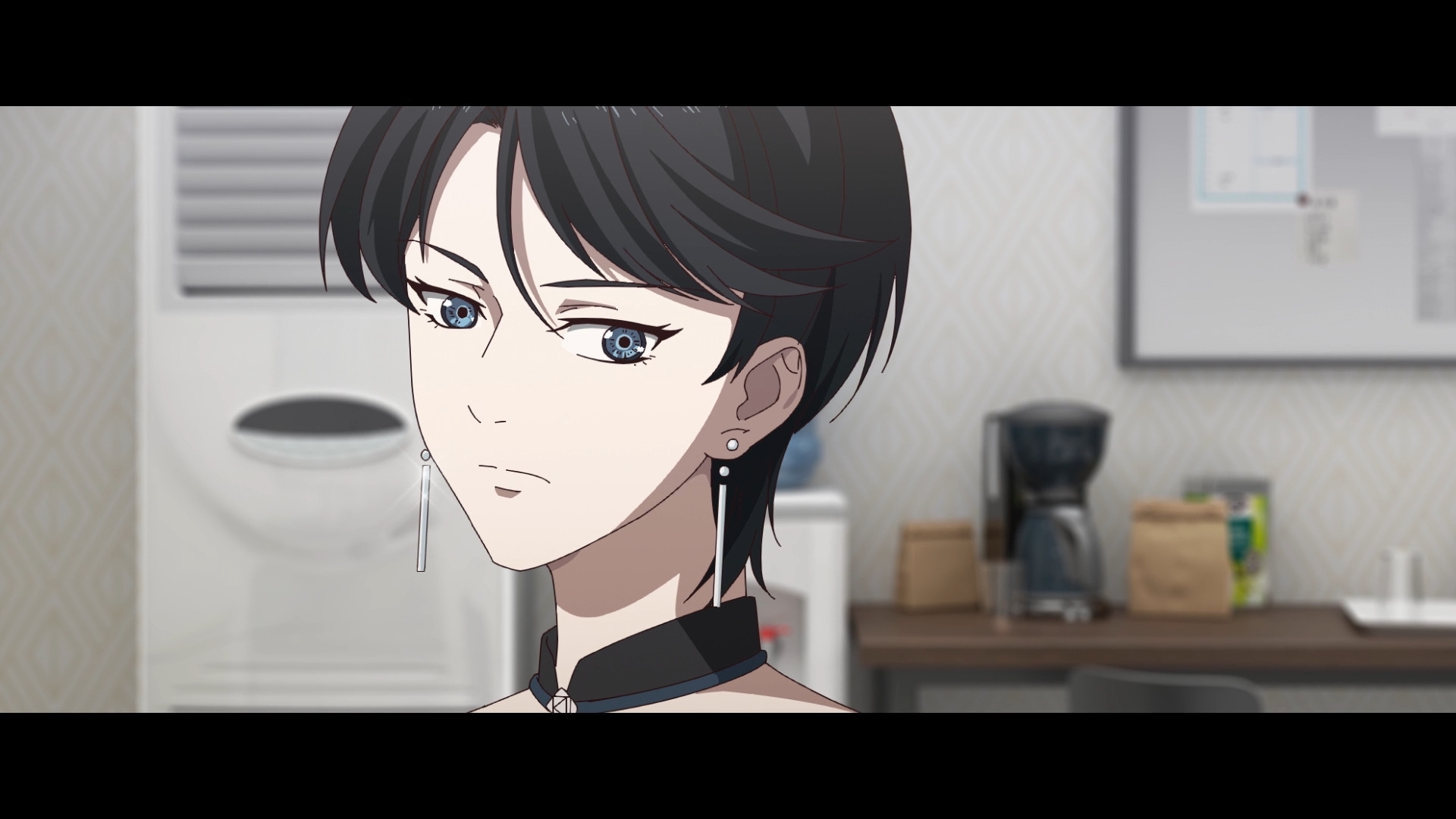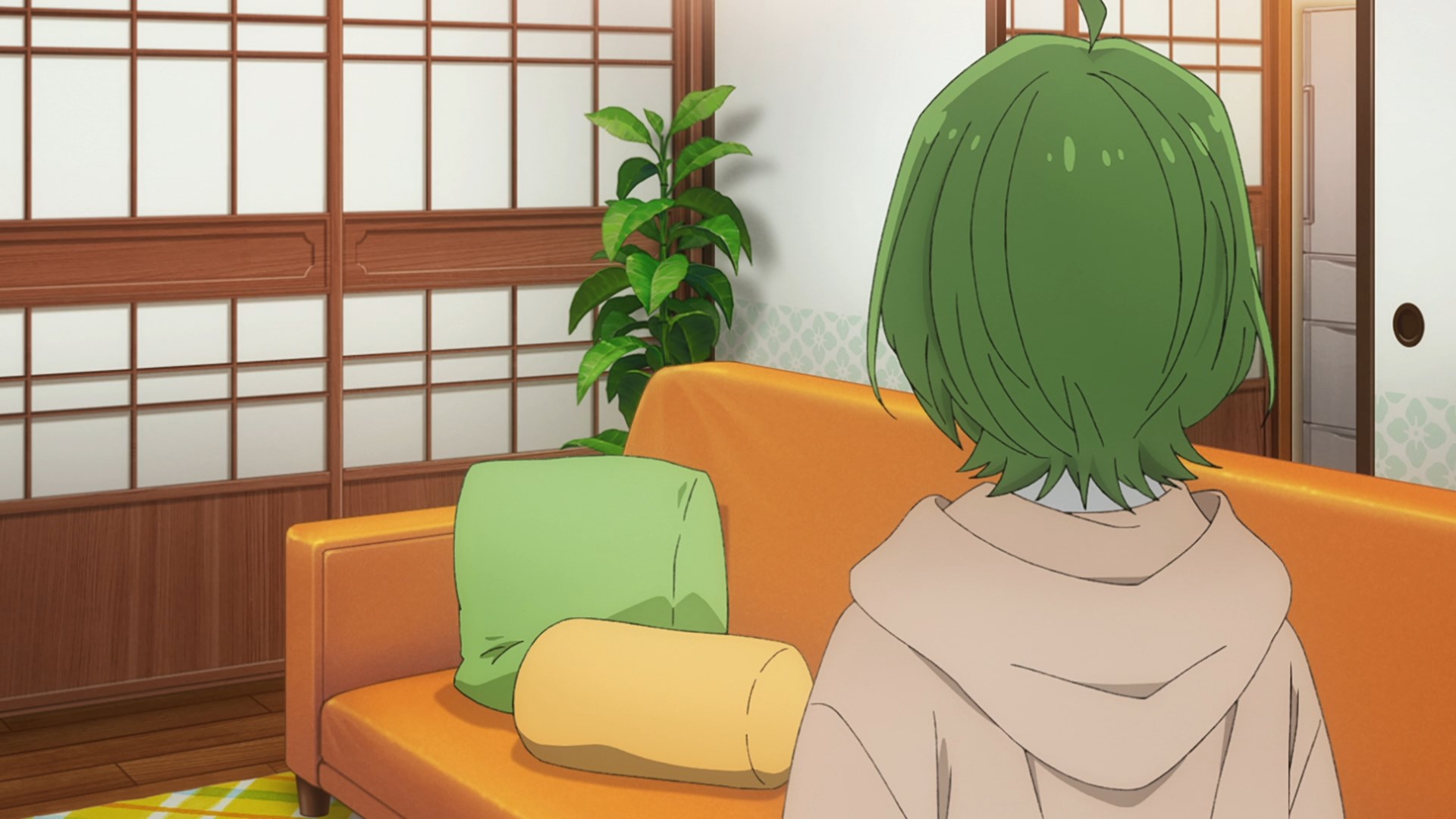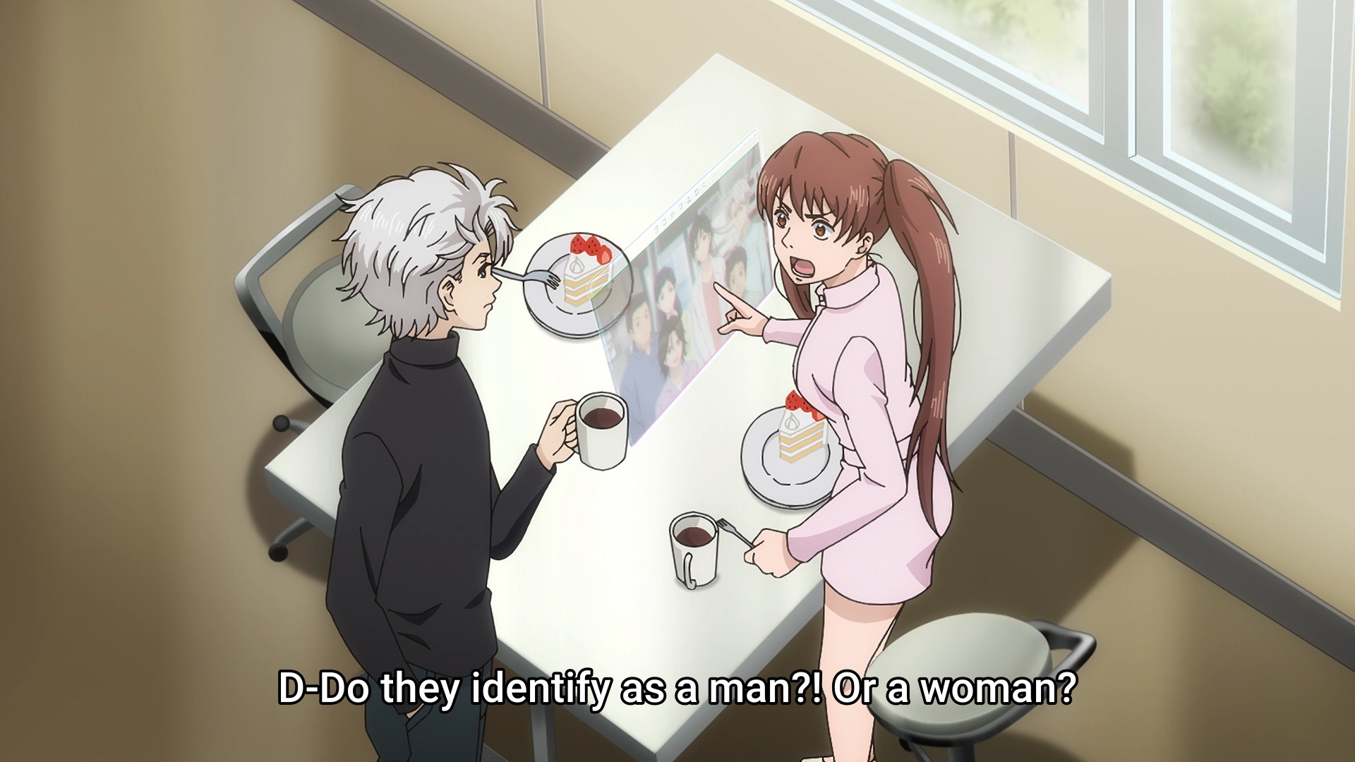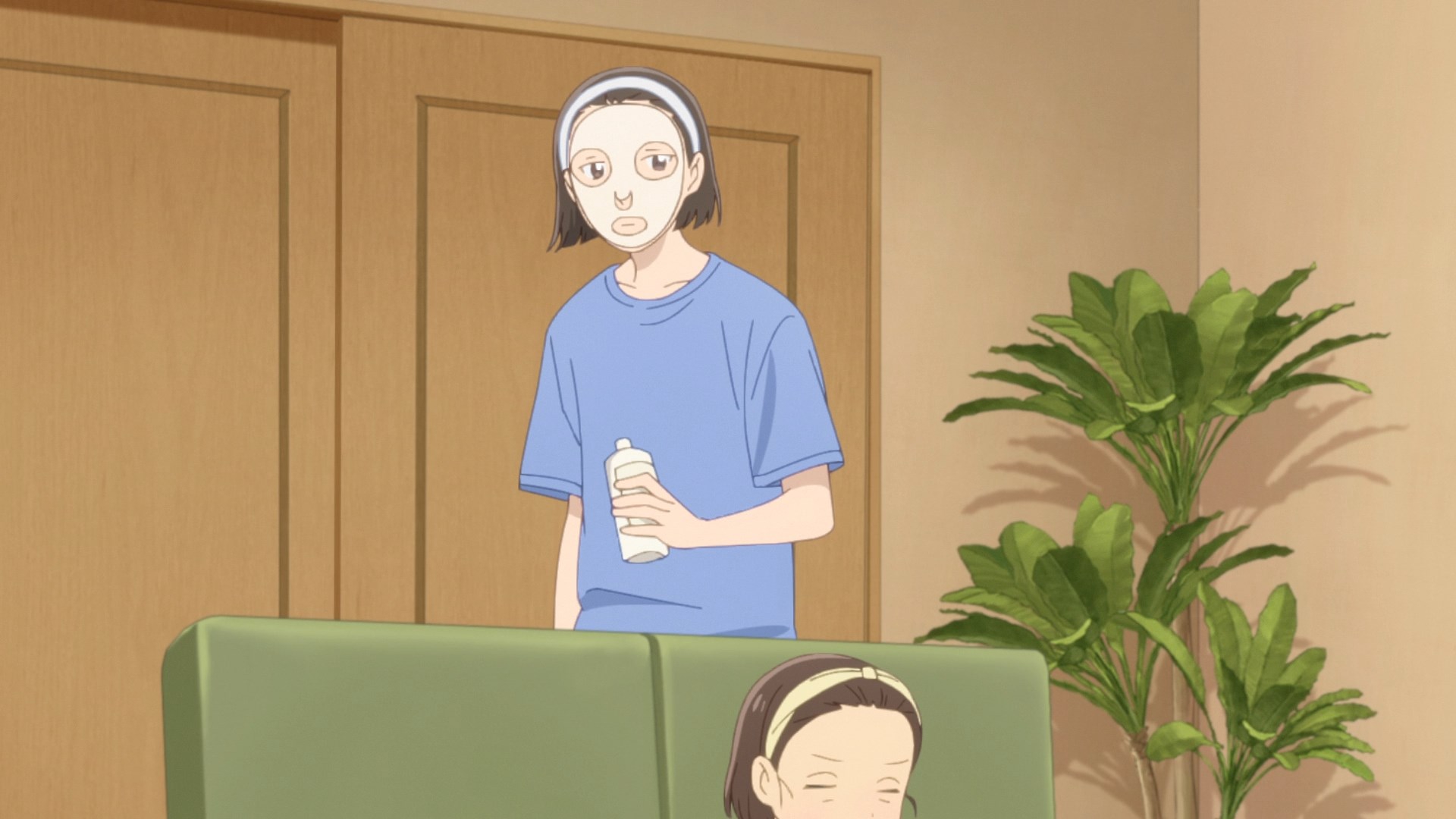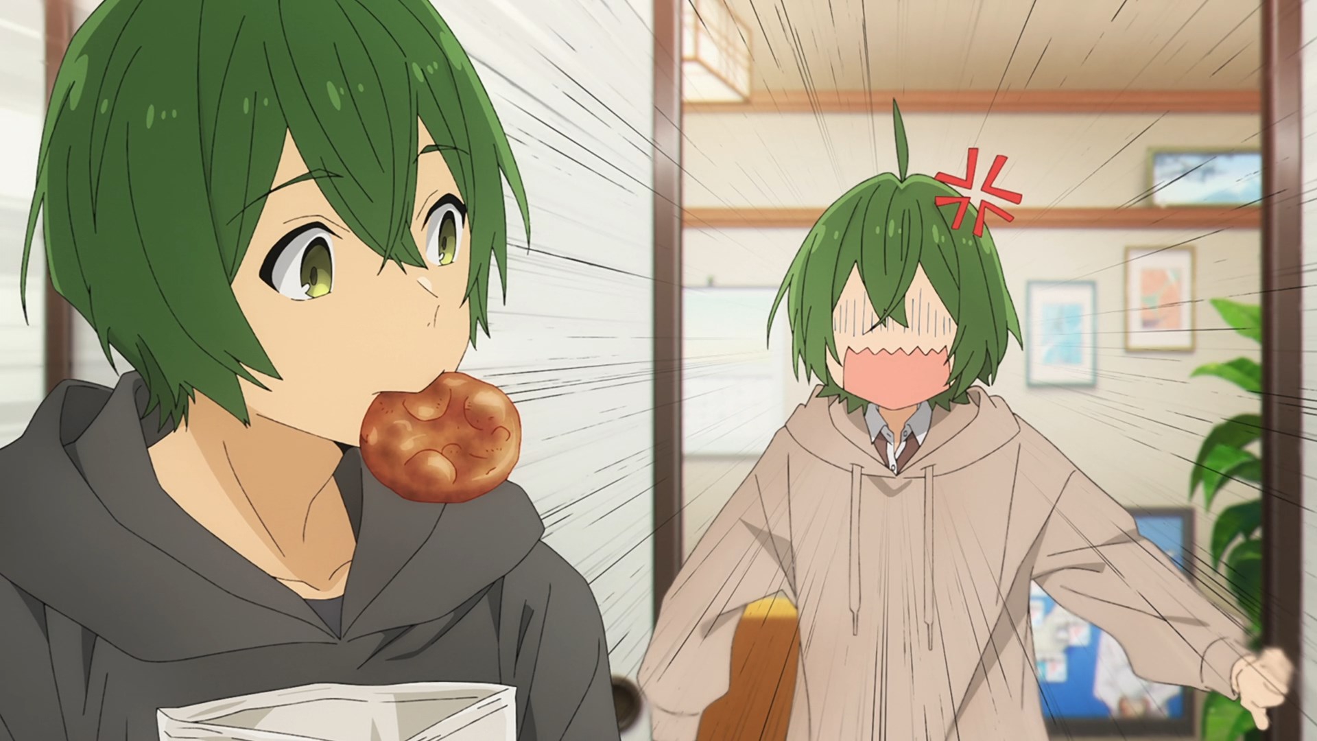 Забавно, что первая половина эпизода - такая более стилизованная и неанатомичная, хотя казалось бы - эпизод в летней пляжной кафешке. Немного похоже на имаишевский стиль, особенно анимация, но не он.