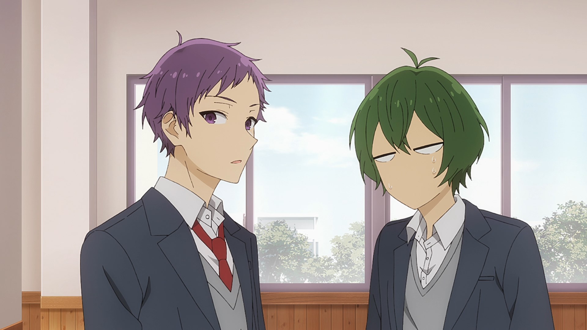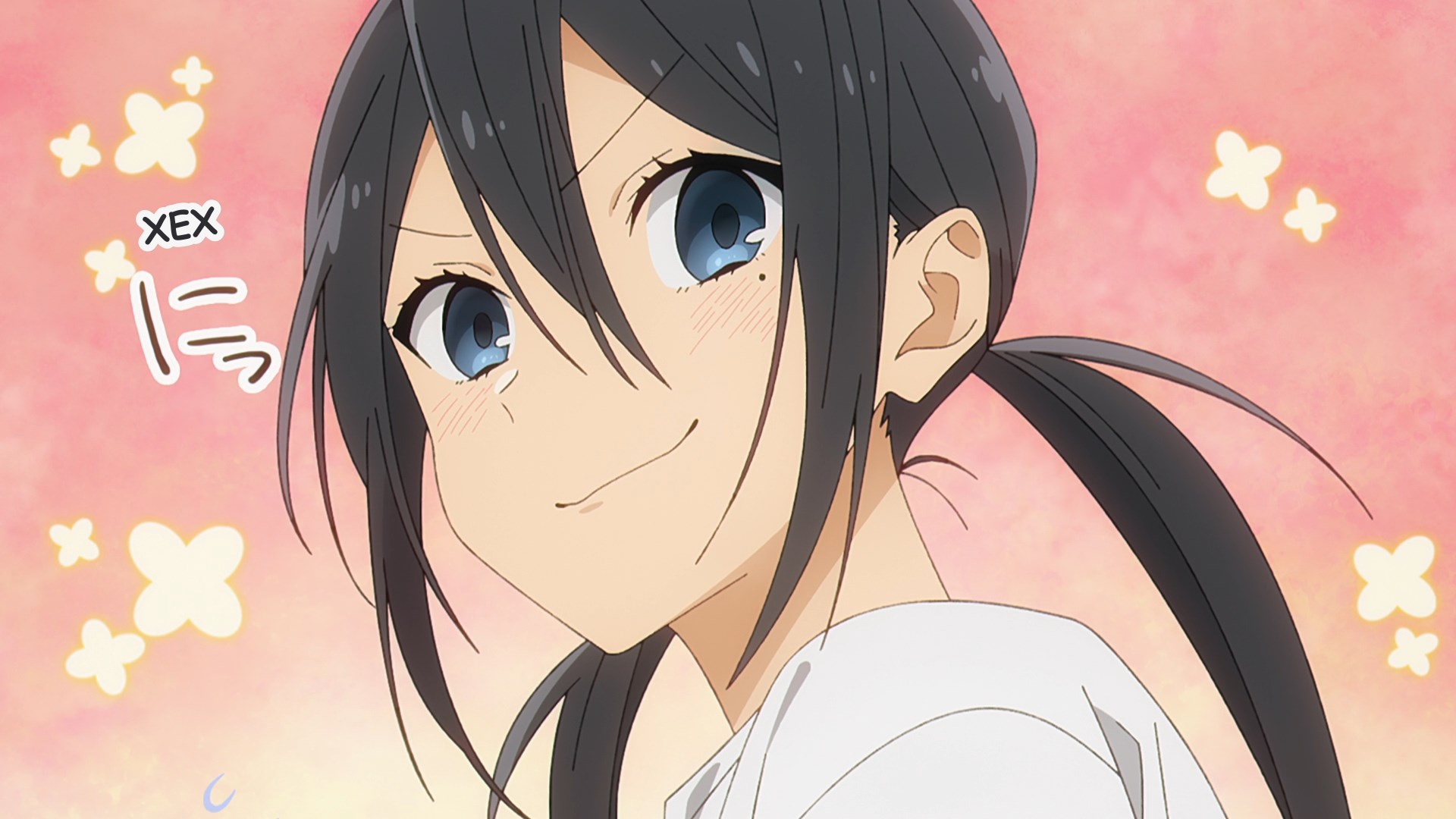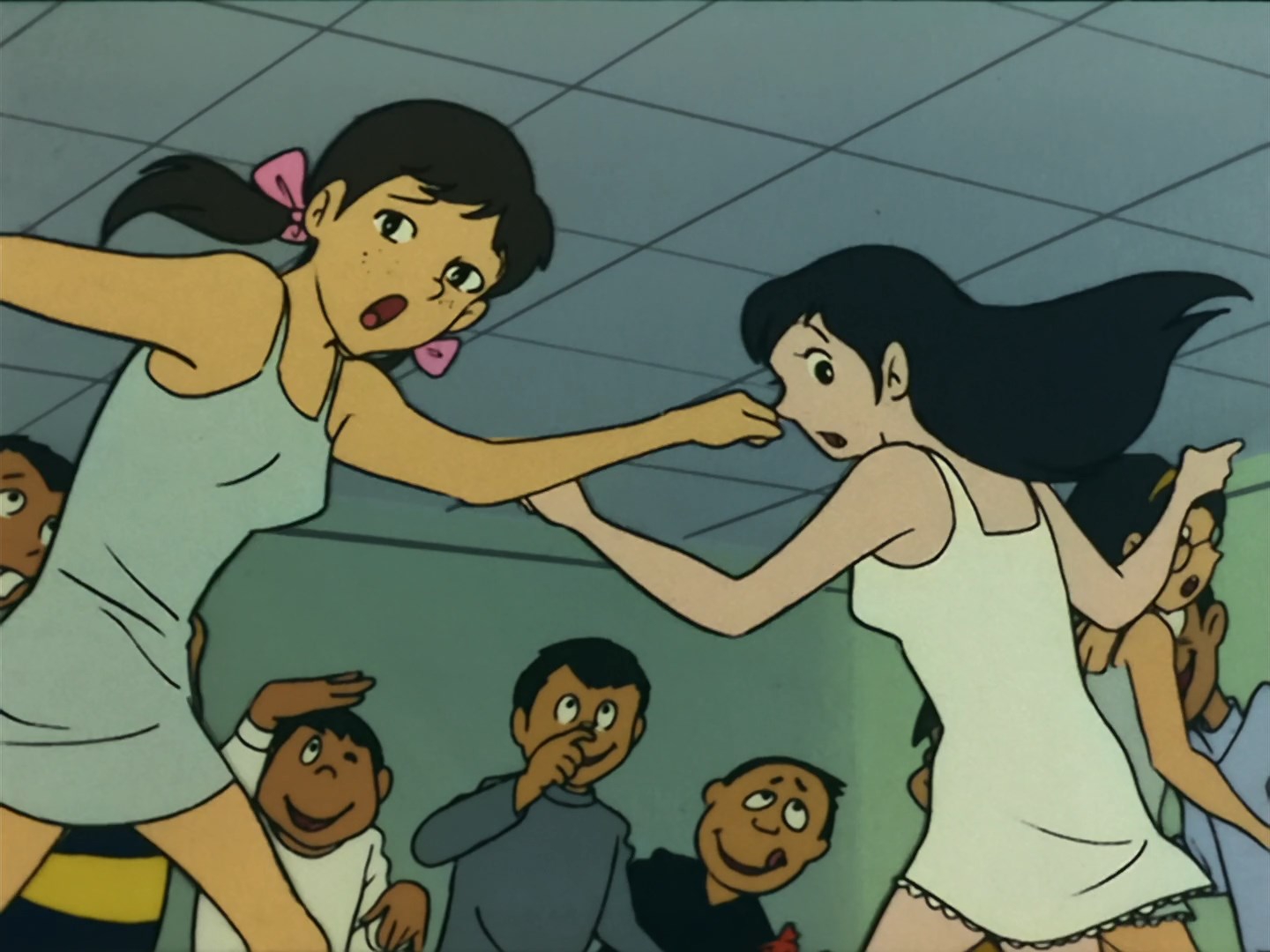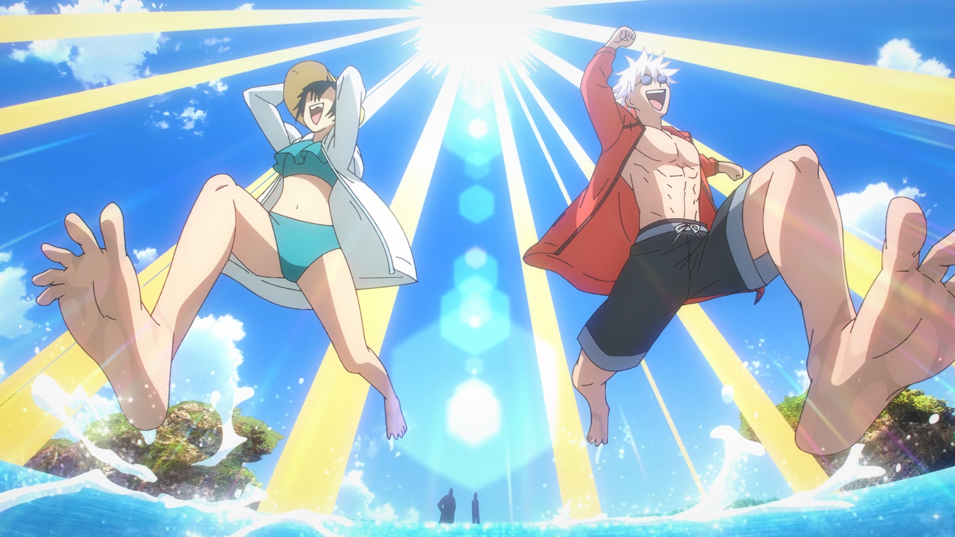 Забавно, что первая половина эпизода - такая более стилизованная и неанатомичная, хотя казалось бы - эпизод в летней пляжной кафешке. Немного похоже на имаишевский стиль, особенно анимация, но не он.