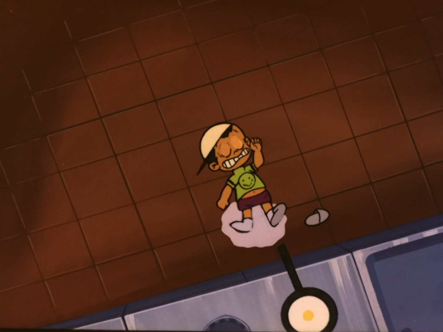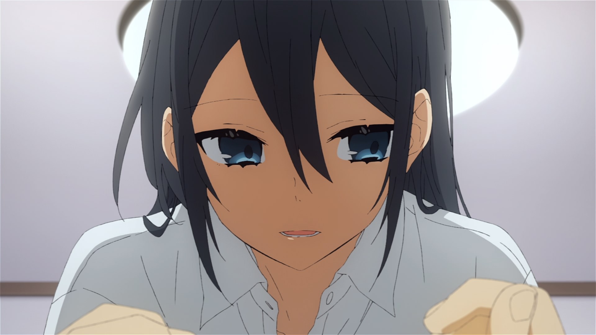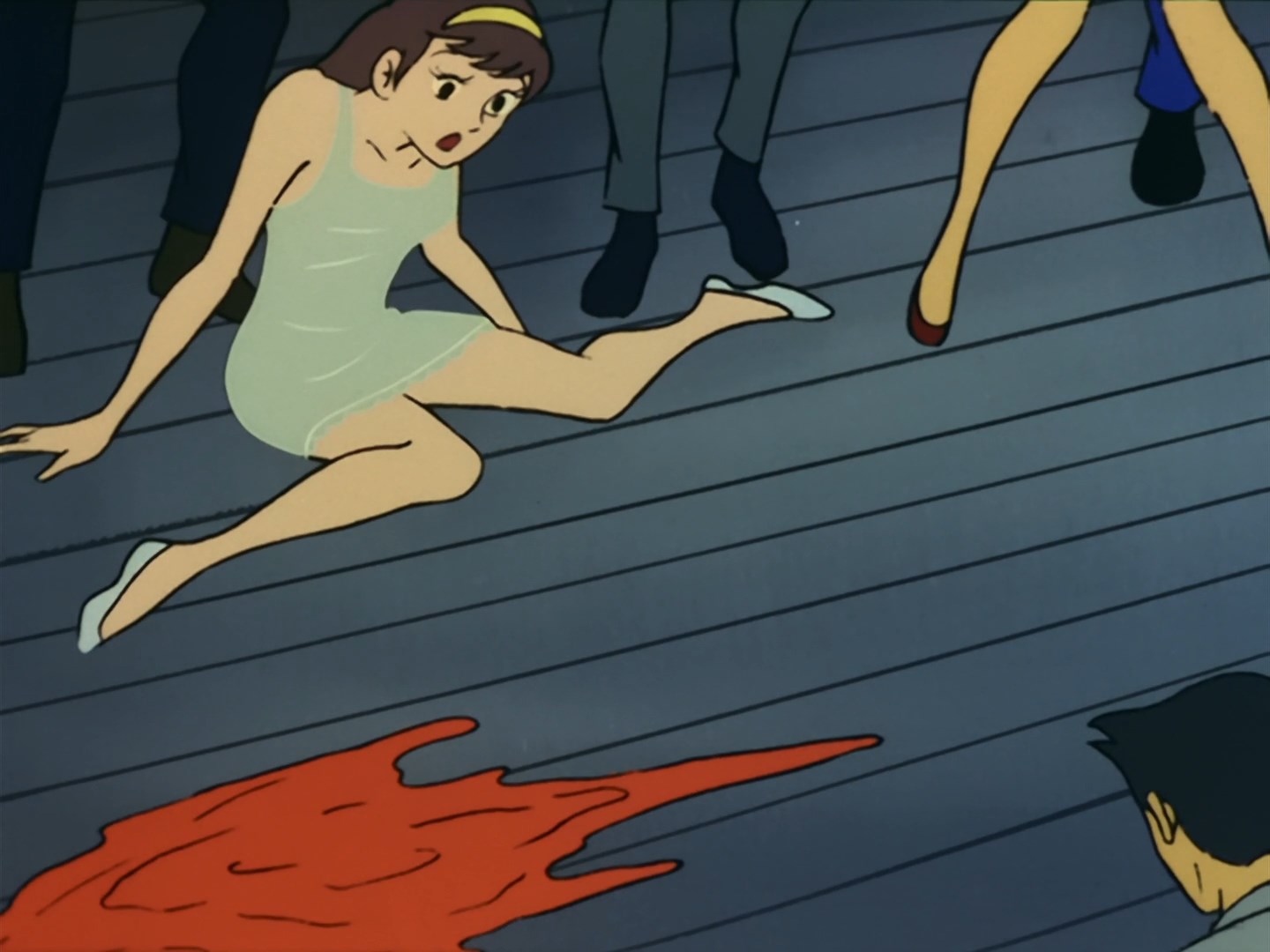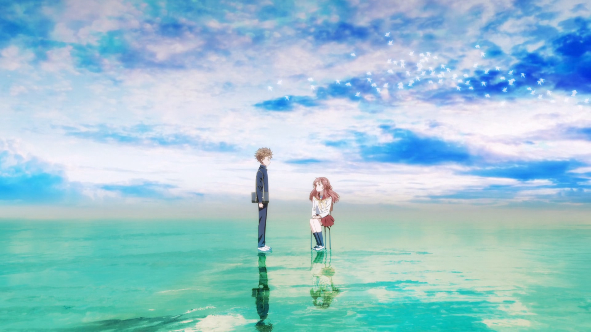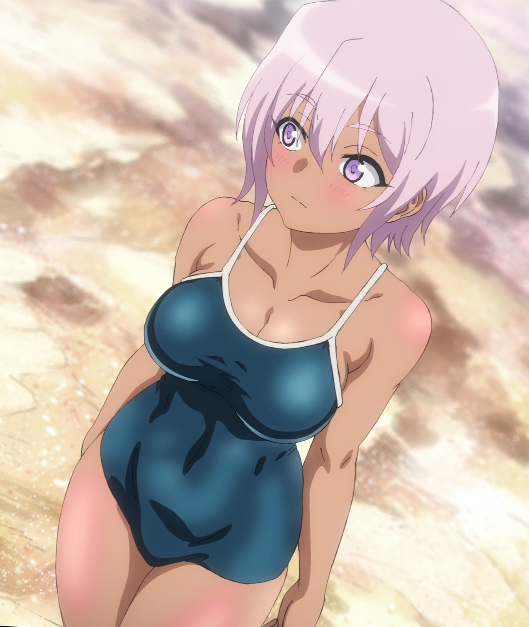 Забавно, что первая половина эпизода - такая более стилизованная и неанатомичная, хотя казалось бы - эпизод в летней пляжной кафешке. Немного похоже на имаишевский стиль, особенно анимация, но не он.