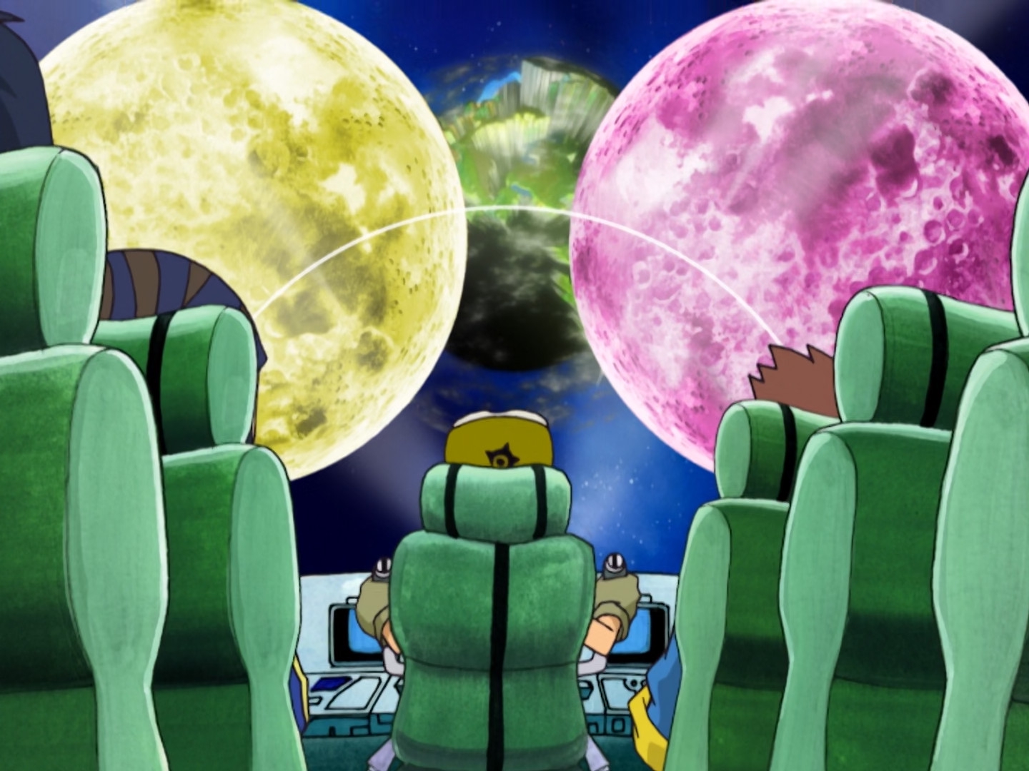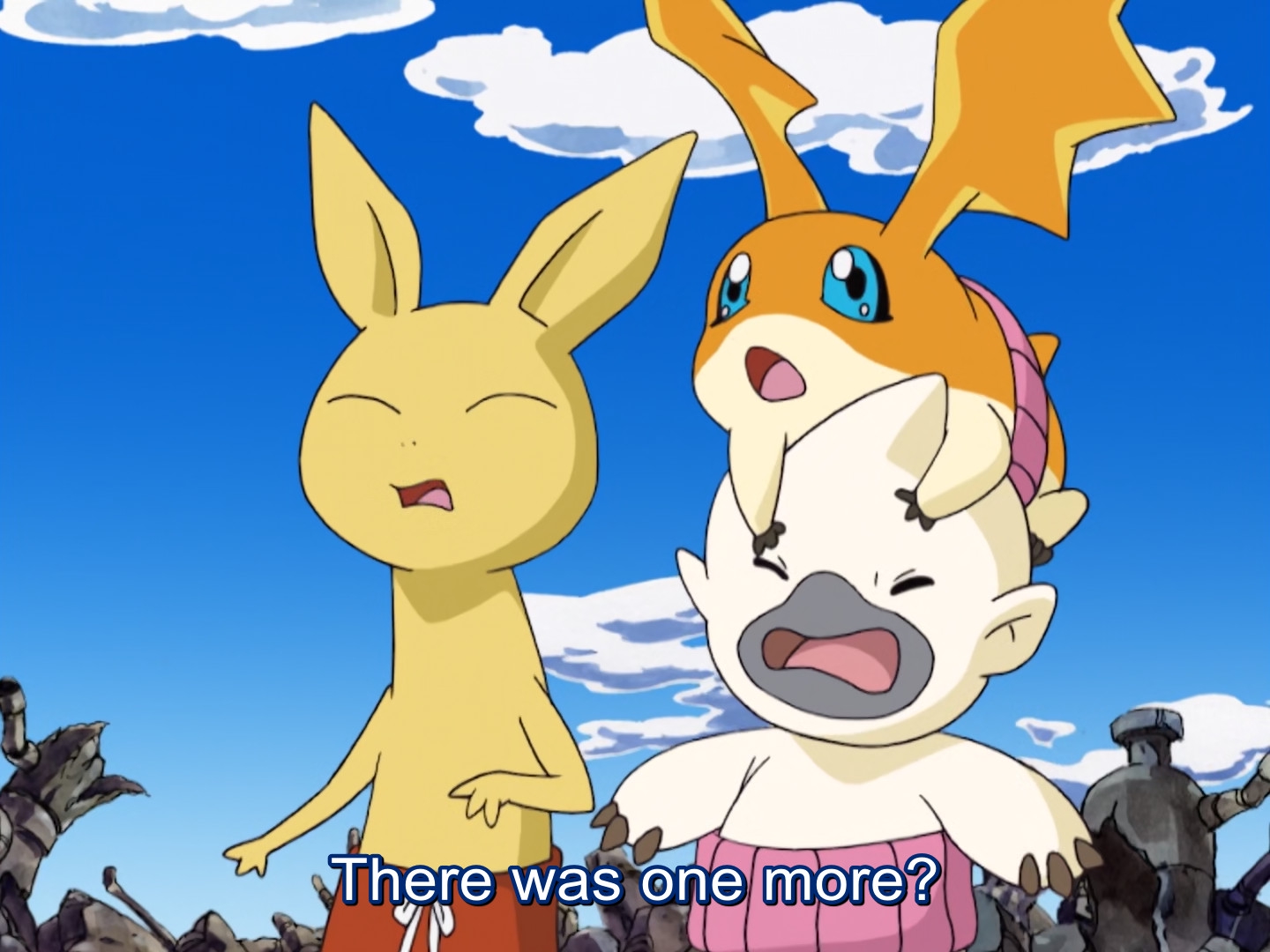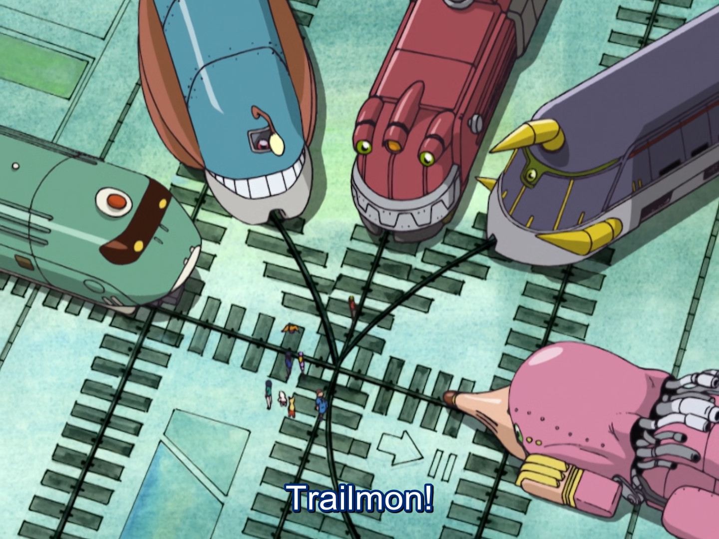 Прикольной была тема с поездами, которая шла через весь сериал. Автор, уверен, прям любит их. В финале, когда весь диджитал мир был разрушен, все что осталось - это рельсы, буквально повисшие в воздухе, которые опоясывали, то что раньше было планетой, и соединяли ее. Это прям-таки даже сильная идея Финал, кстати, впечатляющий. Реально полное разрушение всего мира, планет, лун