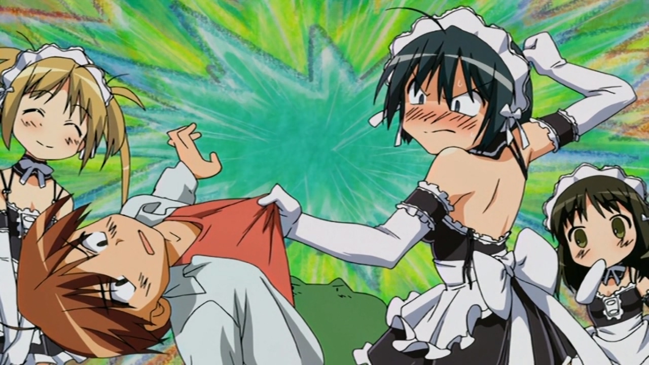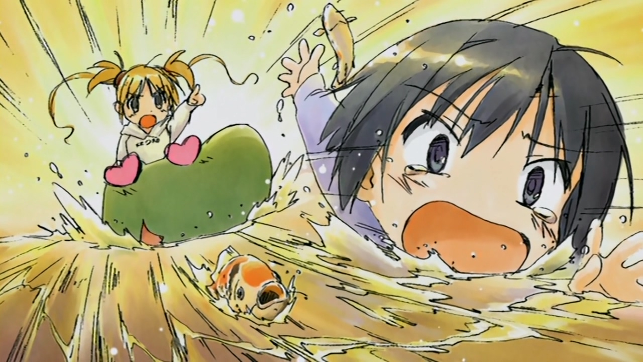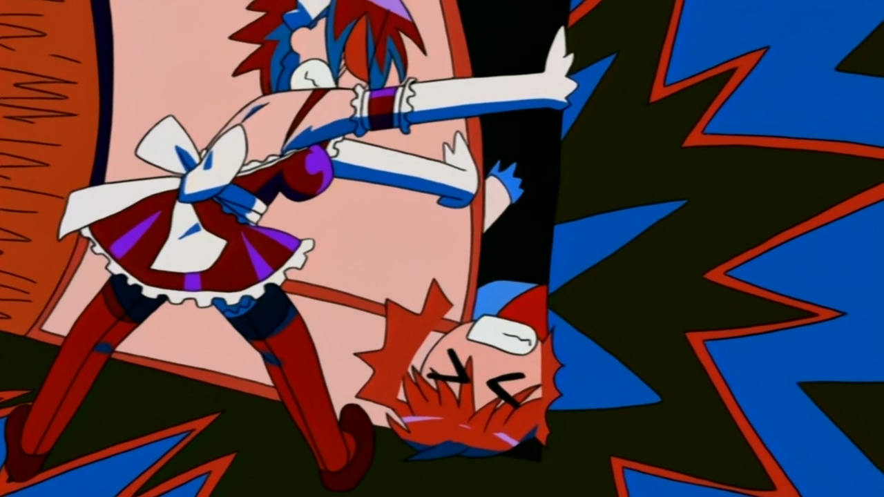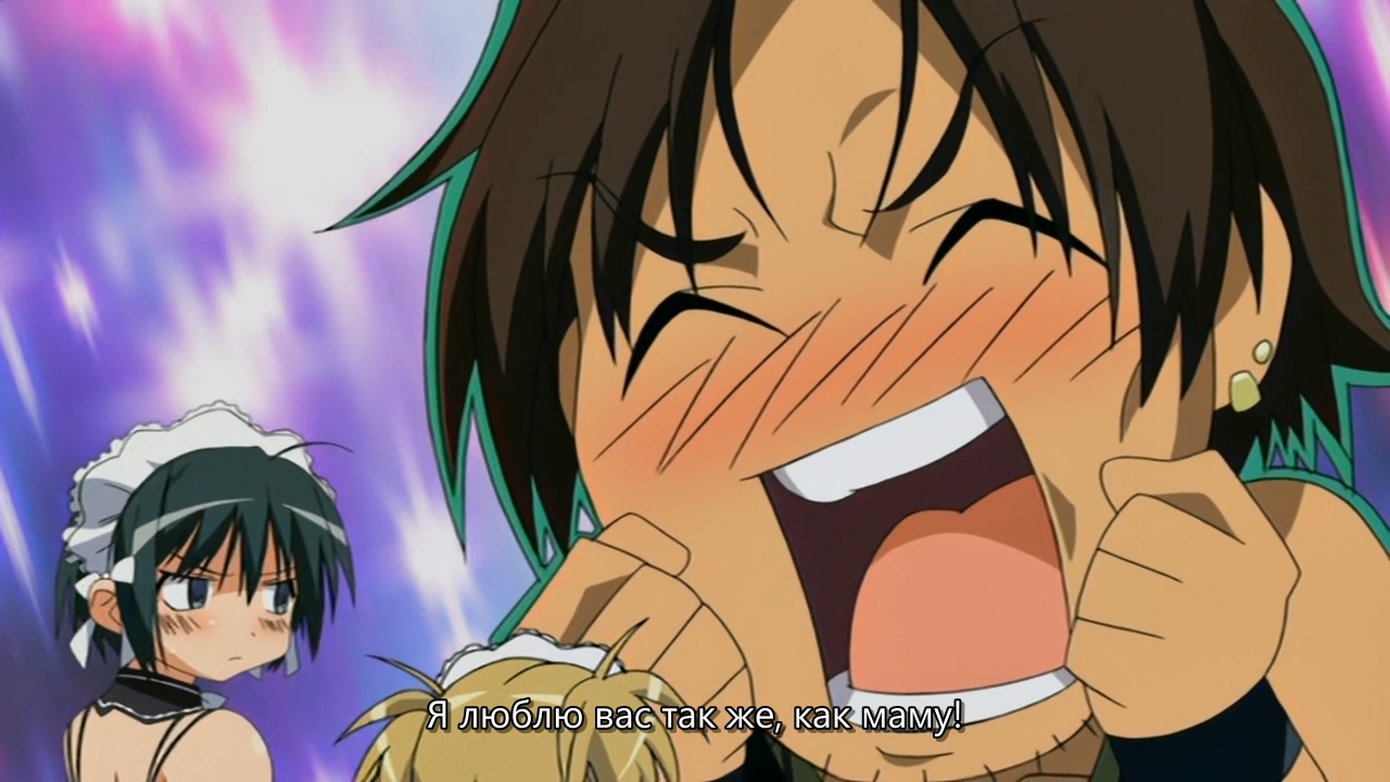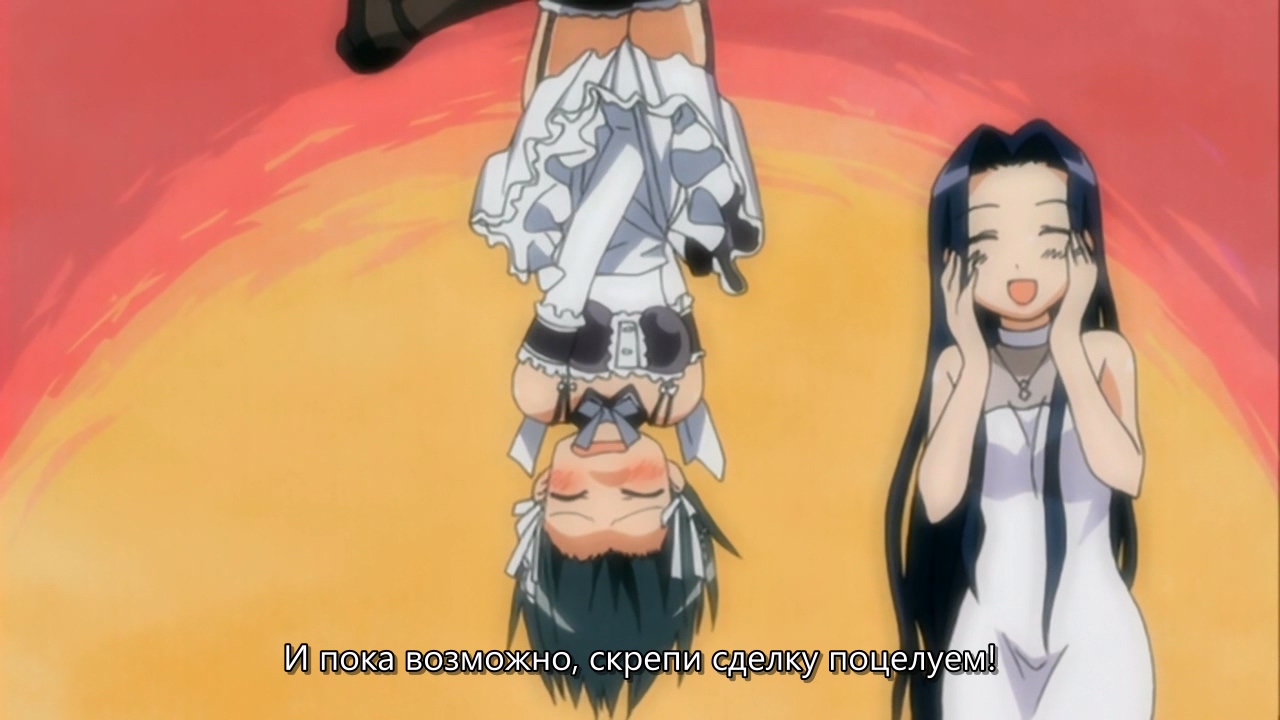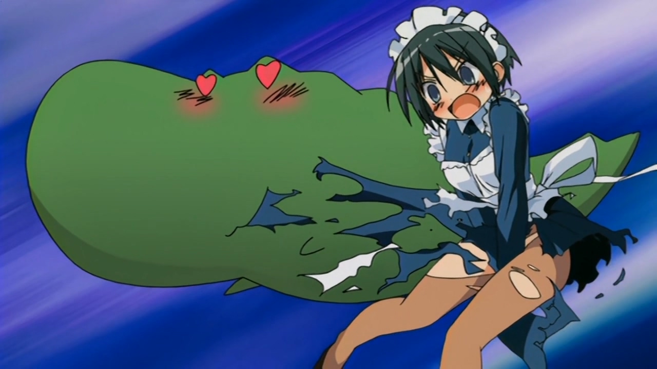 В целом довольно незамысловатое аниме, примерно каждый эпизод строится по схеме: гошужин-сама творит какую-нибудь извращенскую хрень, Изуми верещит и дает ему по башке, младшая сестренка придумывает ебанутое соревнование, быстро перерастающее в полный бардак, и Изуми, вереща, убегает от возбужденного аллигатора. Но все это работает, благодаря хорошему комедийному таймингу, простым но эффективным визуальным приемам и персонажам, хорошо справляющимся со своими ролями - что тоже очень важно для slapstick comedy, ведь если, например, местный "боку" не дает достаточных поводов его отпиздить - то реакция цундерки/цуккоми будет выглядеть излишней, а сама она - истеричкой-психопаткой. Но тут этой проблемы нет, ведь гошуджин-сама свою роль(получать пизды и давать поводы для этого) отыгрывает на отлично. Визуально тоже смотрится очень приятно, немного склоняясь к триггеровскому ответвлению гайнаксовского стиля, в отличии от, например, махороматика - и это прекрасно подходит формату. Ну и да, довольно неожиданная тема взаимозависимых отношений хоть и не сказать, что как то глубоко раскрыта, но все равно выглядит освежающе для ромкома. Еще и почти что свадьба уже к концу единственного кура - в современных такого не увидишь. 7/10 в некотором роде приятный сюрприз