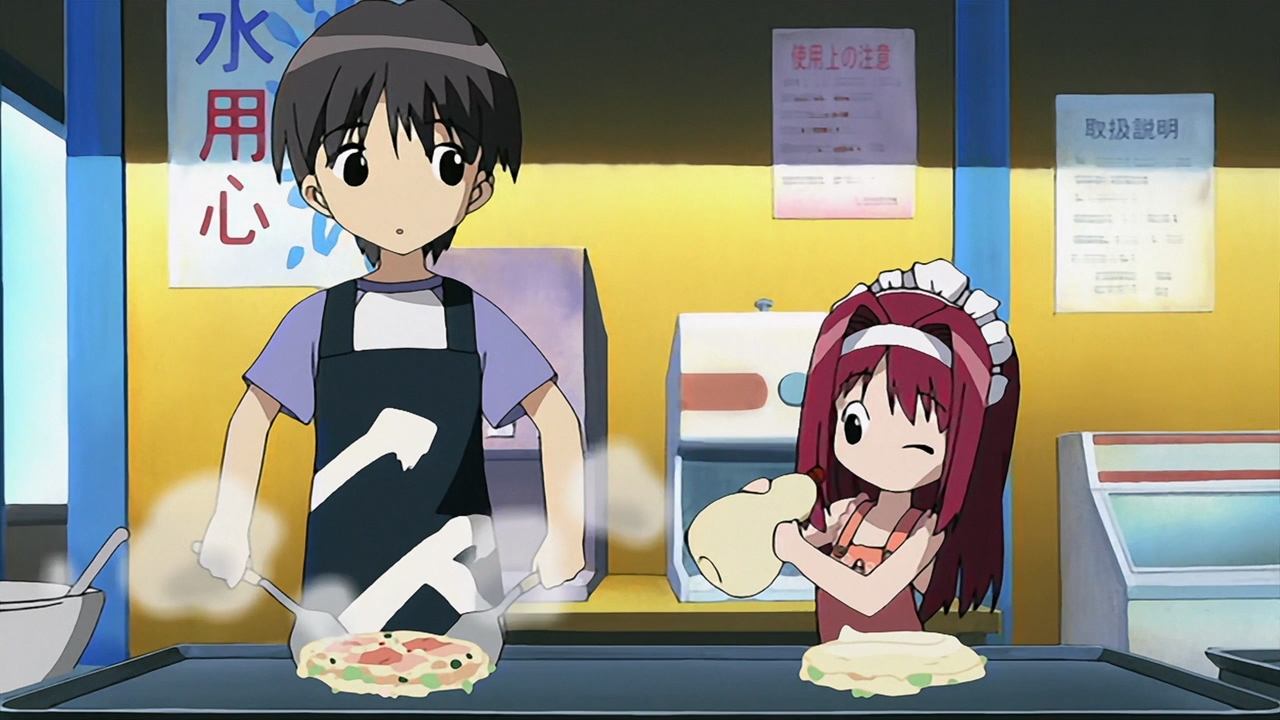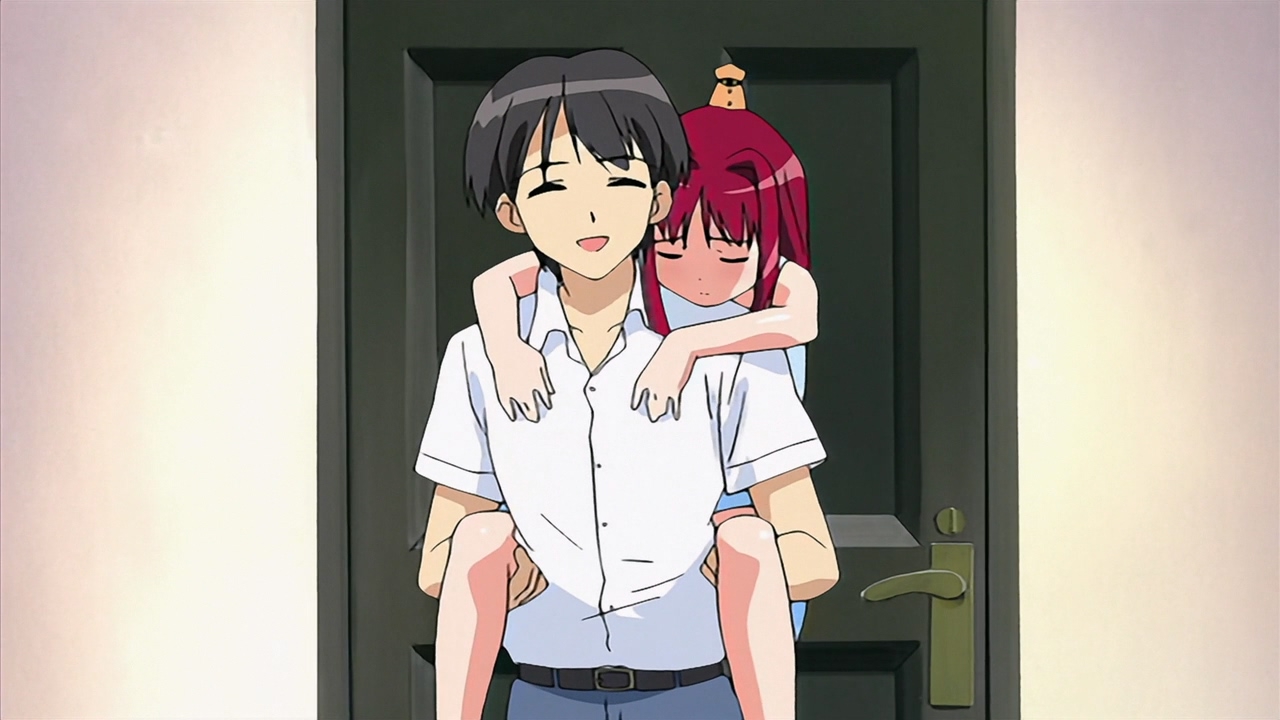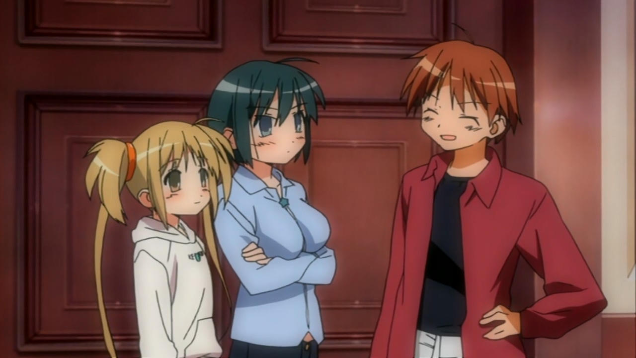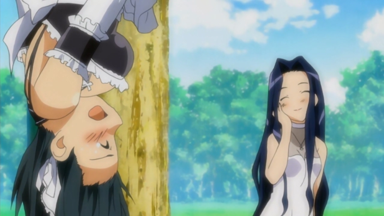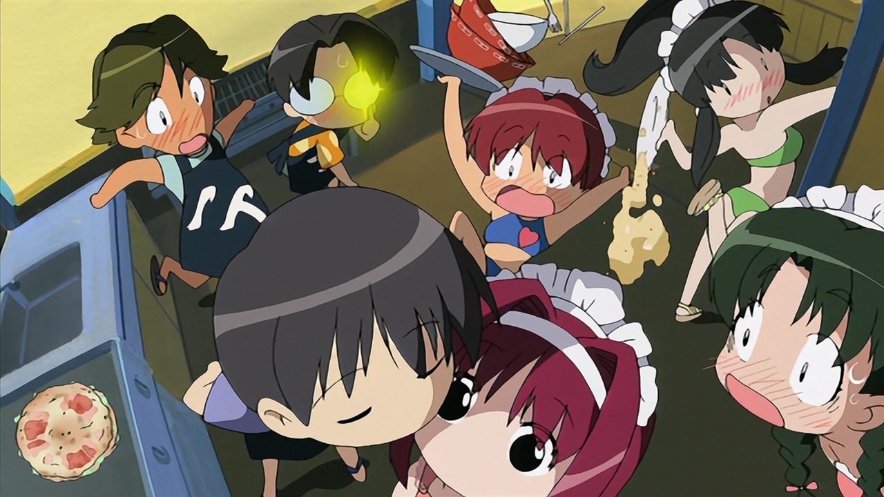 В целом довольно незамысловатое аниме, примерно каждый эпизод строится по схеме: гошужин-сама творит какую-нибудь извращенскую хрень, Изуми верещит и дает ему по башке, младшая сестренка придумывает ебанутое соревнование, быстро перерастающее в полный бардак, и Изуми, вереща, убегает от возбужденного аллигатора. Но все это работает, благодаря хорошему комедийному таймингу, простым но эффективным визуальным приемам и персонажам, хорошо справляющимся со своими ролями - что тоже очень важно для slapstick comedy, ведь если, например, местный "боку" не дает достаточных поводов его отпиздить - то реакция цундерки/цуккоми будет выглядеть излишней, а сама она - истеричкой-психопаткой. Но тут этой проблемы нет, ведь гошуджин-сама свою роль(получать пизды и давать поводы для этого) отыгрывает на отлично. Визуально тоже смотрится очень приятно, немного склоняясь к триггеровскому ответвлению гайнаксовского стиля, в отличии от, например, махороматика - и это прекрасно подходит формату. Ну и да, довольно неожиданная тема взаимозависимых отношений хоть и не сказать, что как то глубоко раскрыта, но все равно выглядит освежающе для ромкома. Еще и почти что свадьба уже к концу единственного кура - в современных такого не увидишь. 7/10 в некотором роде приятный сюрприз