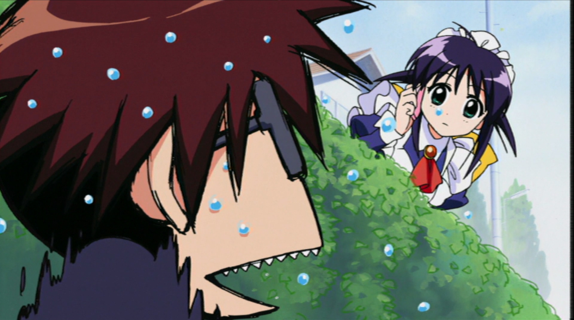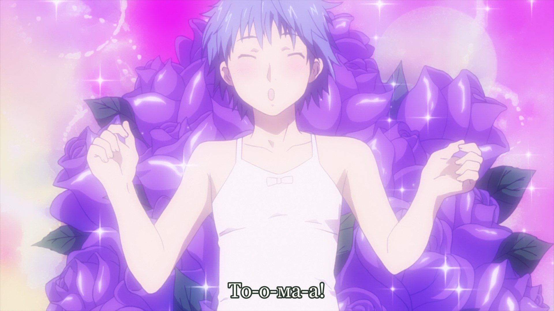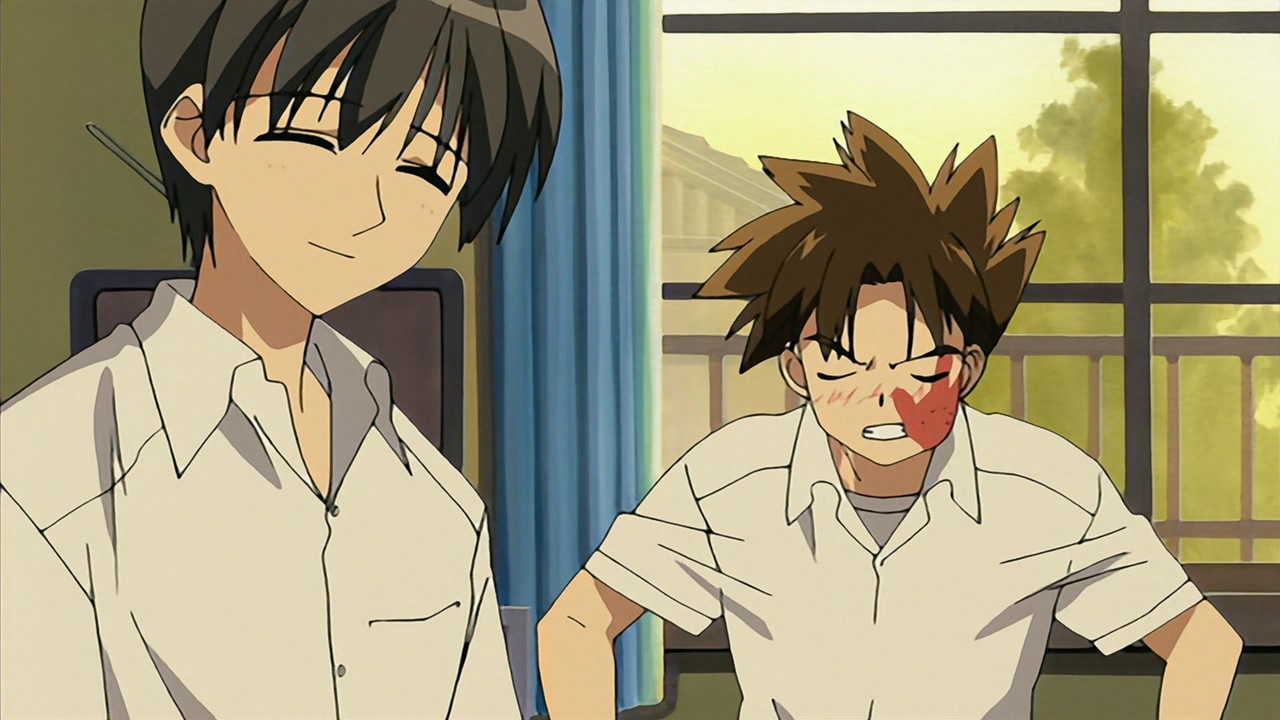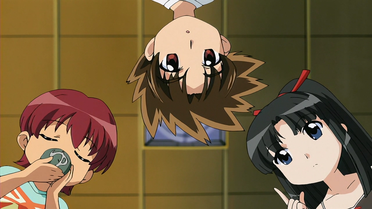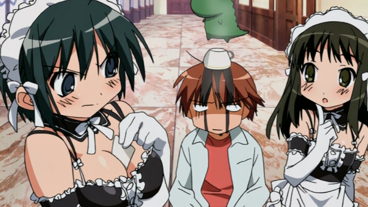 В целом довольно незамысловатое аниме, примерно каждый эпизод строится по схеме: гошужин-сама творит какую-нибудь извращенскую хрень, Изуми верещит и дает ему по башке, младшая сестренка придумывает ебанутое соревнование, быстро перерастающее в полный бардак, и Изуми, вереща, убегает от возбужденного аллигатора. Но все это работает, благодаря хорошему комедийному таймингу, простым но эффективным визуальным приемам и персонажам, хорошо справляющимся со своими ролями - что тоже очень важно для slapstick comedy, ведь если, например, местный "боку" не дает достаточных поводов его отпиздить - то реакция цундерки/цуккоми будет выглядеть излишней, а сама она - истеричкой-психопаткой. Но тут этой проблемы нет, ведь гошуджин-сама свою роль(получать пизды и давать поводы для этого) отыгрывает на отлично. Визуально тоже смотрится очень приятно, немного склоняясь к триггеровскому ответвлению гайнаксовского стиля, в отличии от, например, махороматика - и это прекрасно подходит формату. Ну и да, довольно неожиданная тема взаимозависимых отношений хоть и не сказать, что как то глубоко раскрыта, но все равно выглядит освежающе для ромкома. Еще и почти что свадьба уже к концу единственного кура - в современных такого не увидишь. 7/10 в некотором роде приятный сюрприз