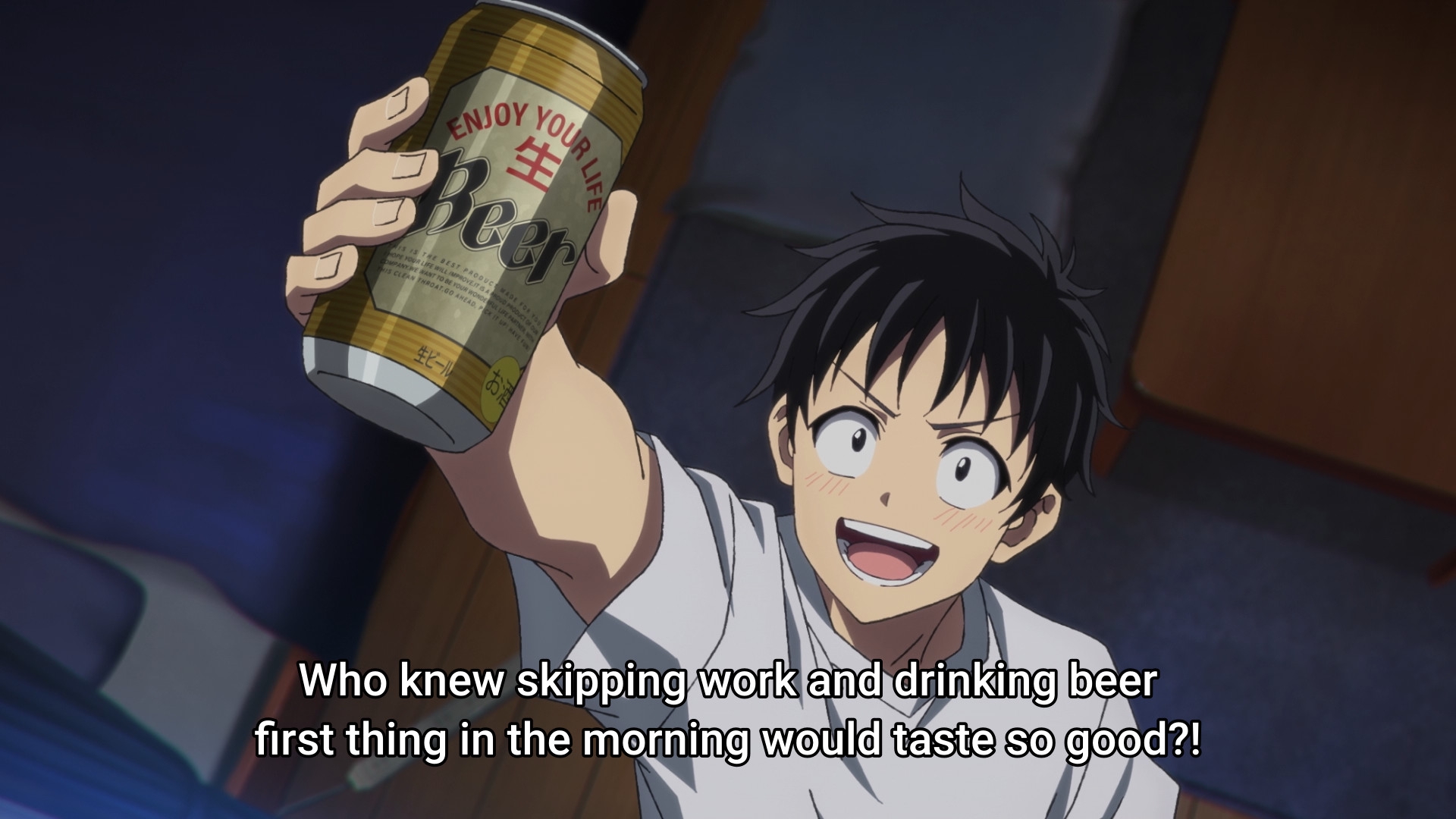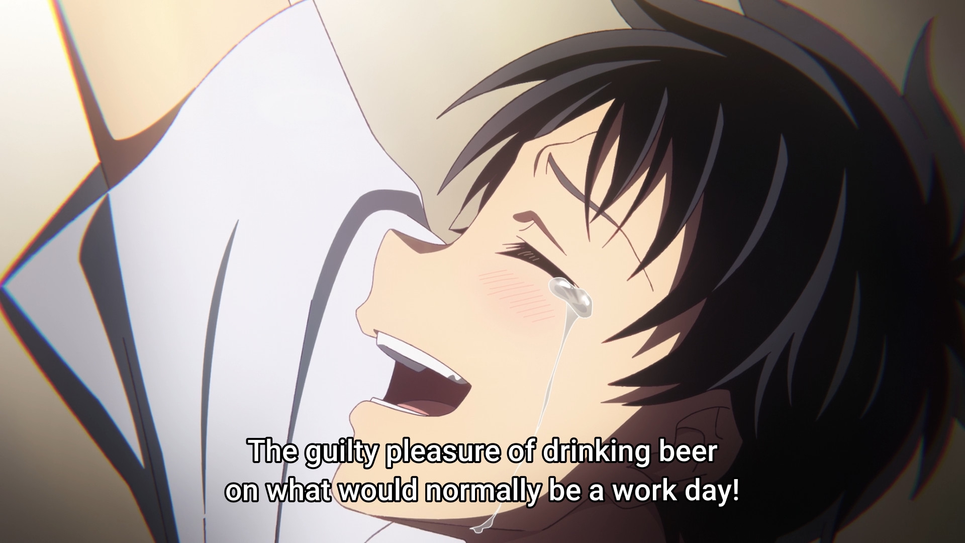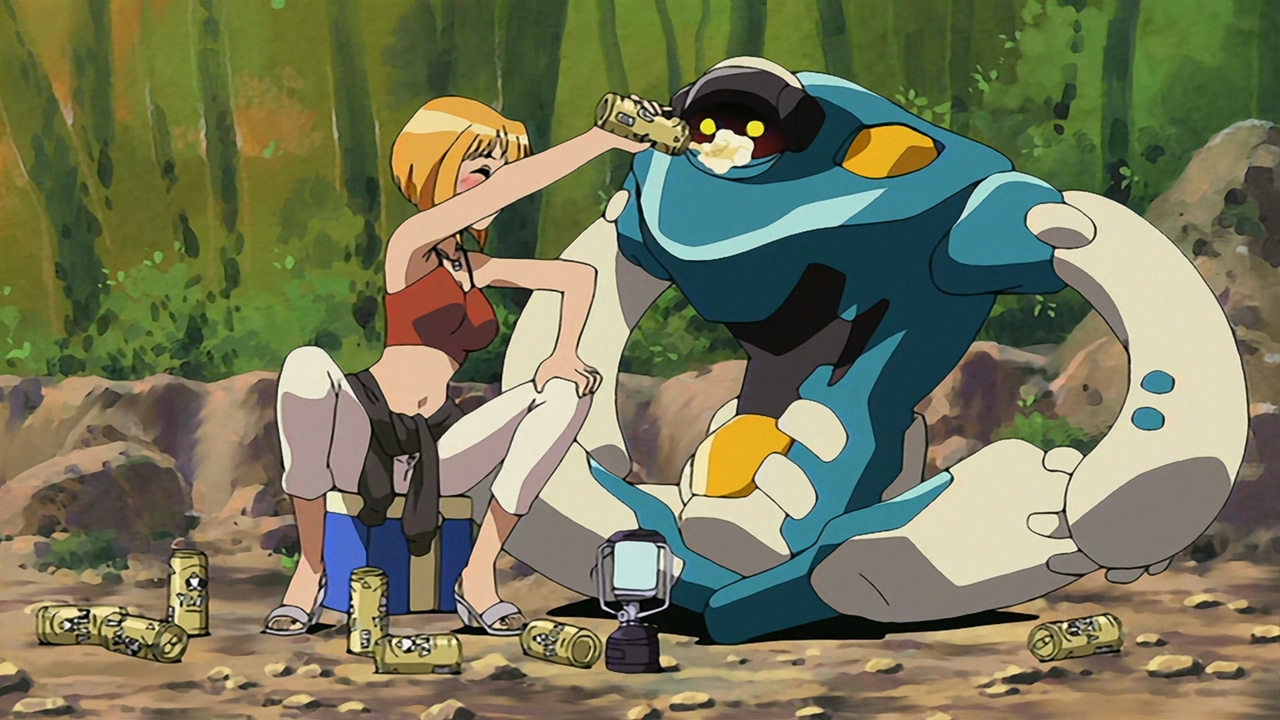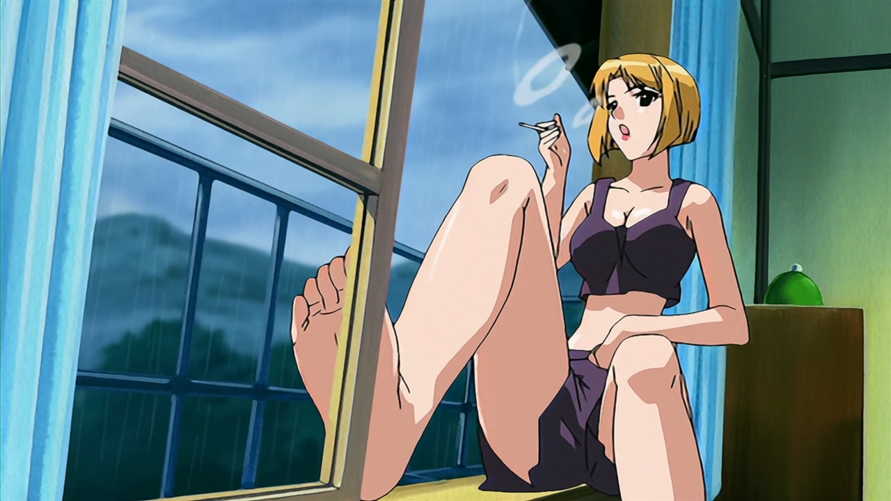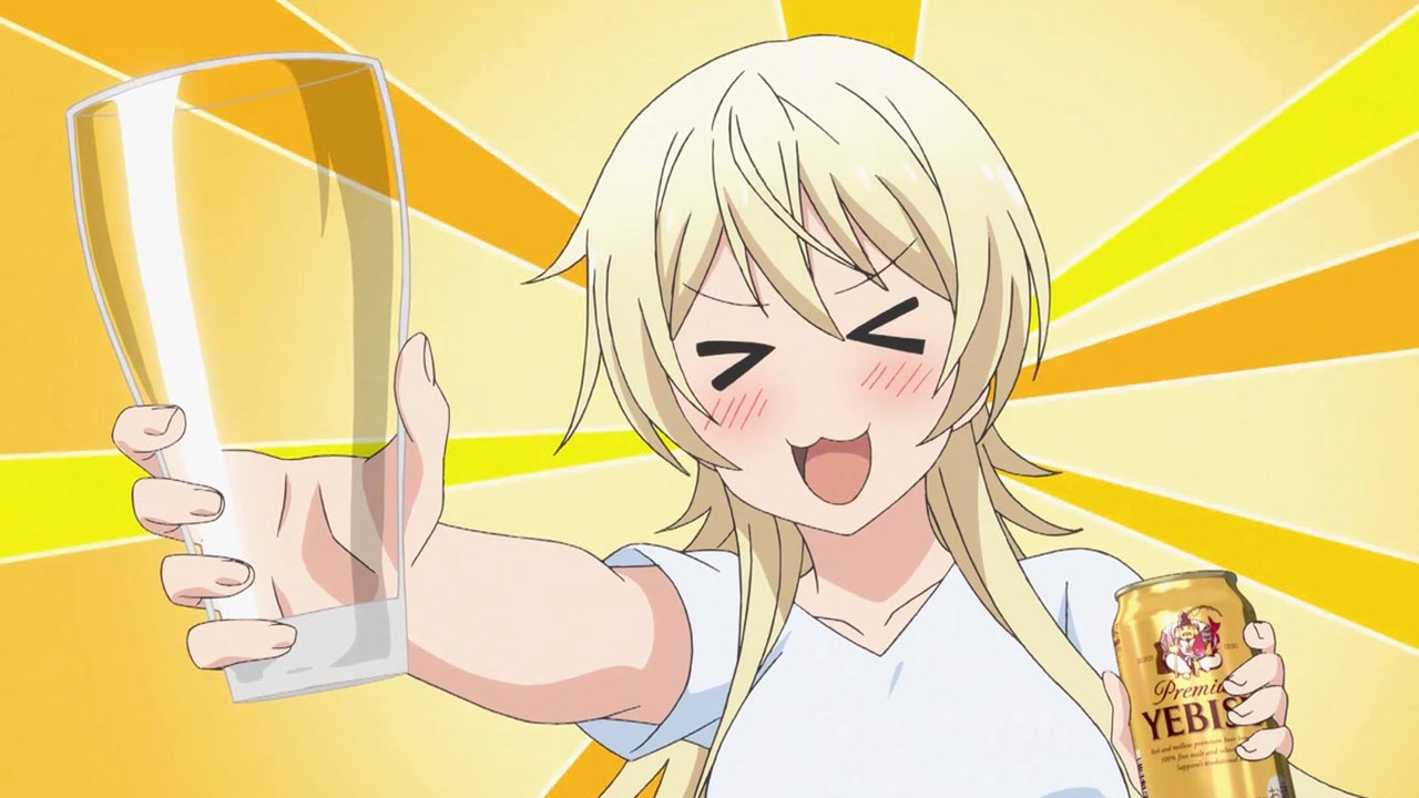 Ну вот, пиваса с сушеным кальмаром захотелось. Почему у гайнакса всегда есть взрослая тян, вкусно бухающая и домогающаяся до школьников? Эта вот вообще непонятно откуда взялась и что делает - просто есть.