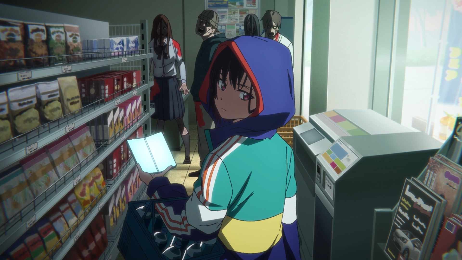 Зомби-апокалипсис спасающий от зомбификации. Честно говоря, этот эпизод настолько разнообразен и насыщен визуально и тематически, что просто один заслуживает простынки большей, чем большинство полноформатных тайтлов. Но эссе, разбирая по сценам, я тут писать не буду, так что вместо этого отмечу, что мне не всегда нравилась работа с цветом - я понимаю идею и концепцию, но реализовать можно было лучше. Но это мелкие "придирки" к почти идеальному эпизоду.