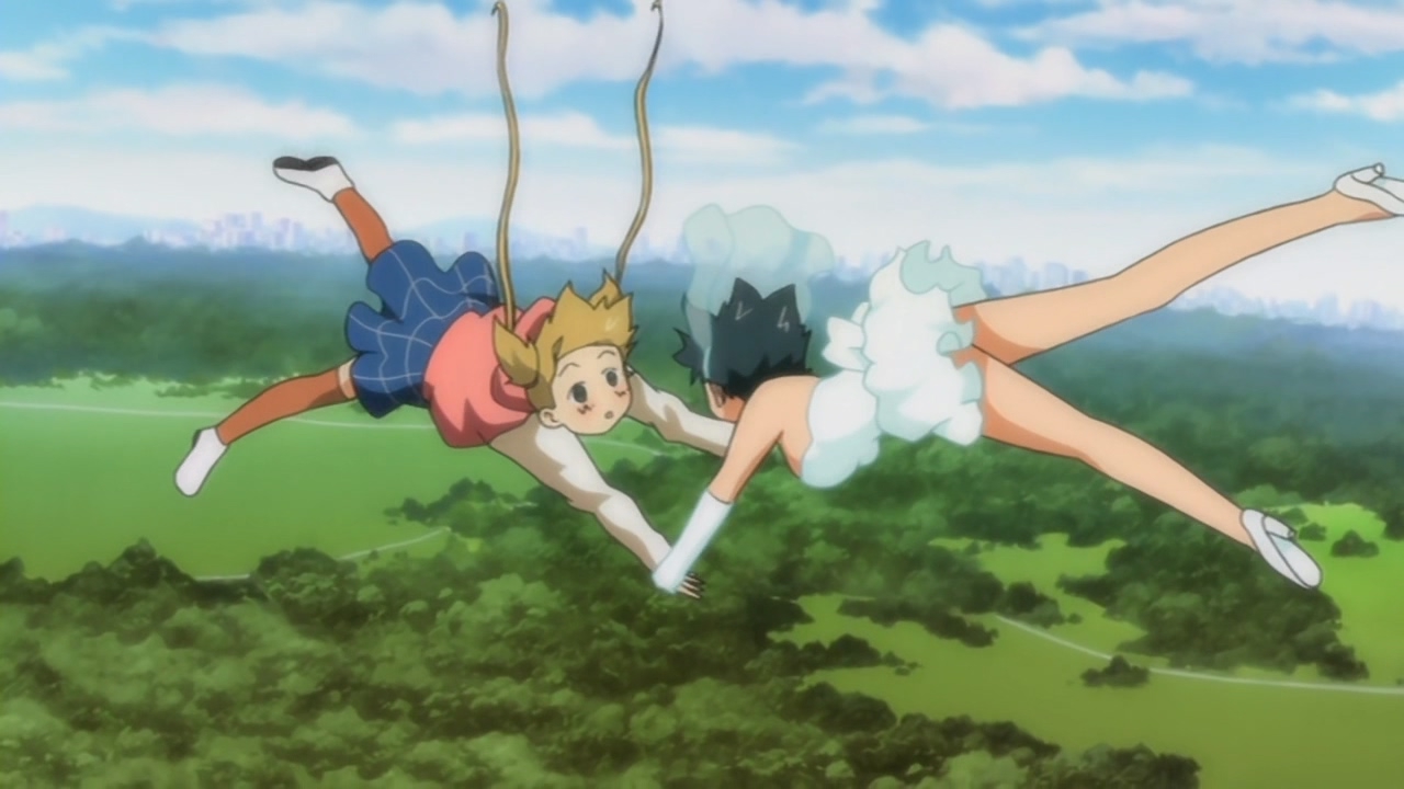 Серия 0 (спешл) Очень эффектная сцена падения! Зеленоволосая Сильфи стала седоволосой Фитц. От таких полетов легко поседеть.