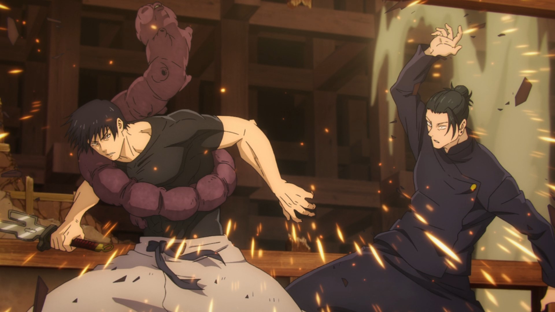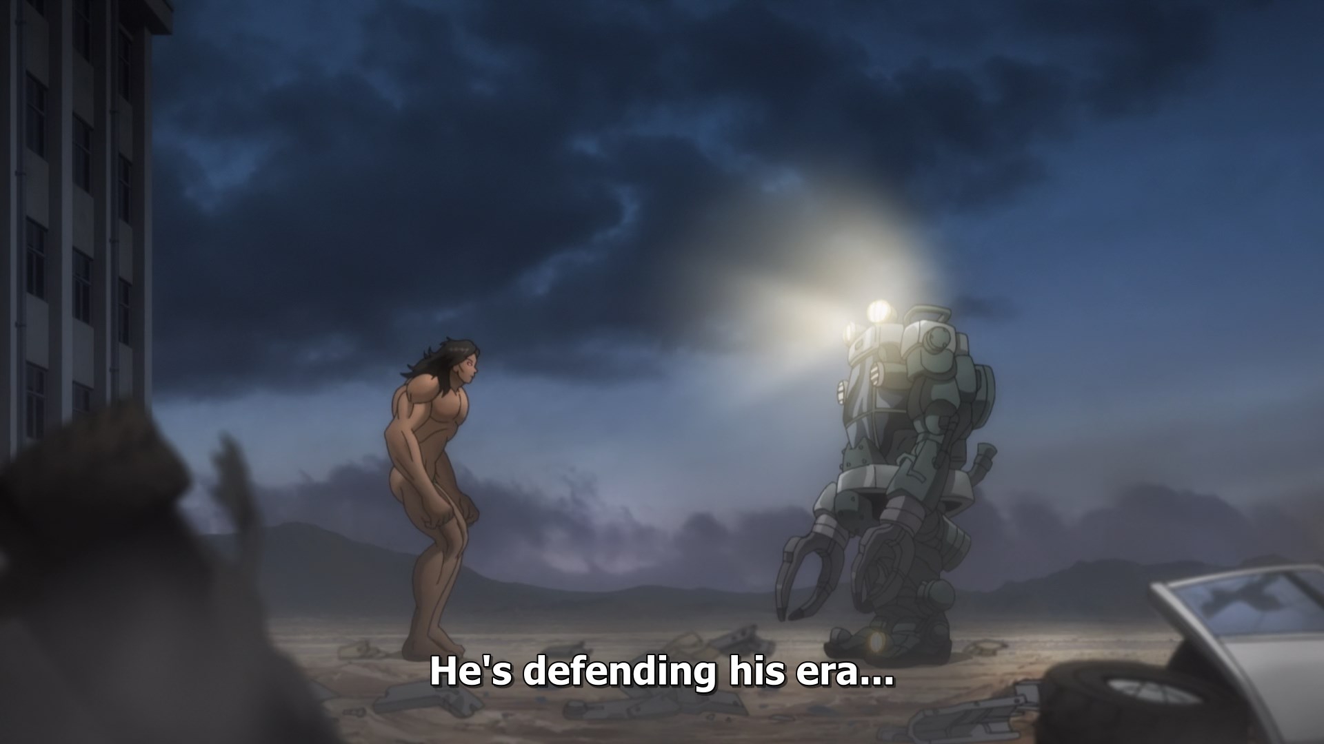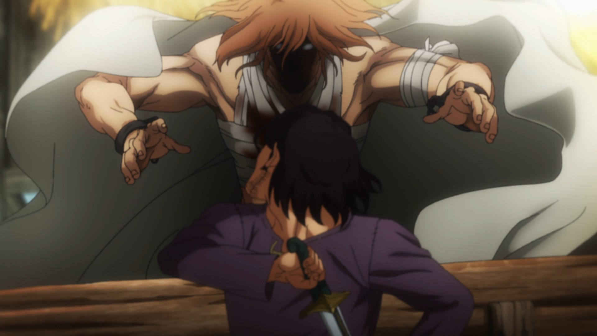 О, Саноске уже в следующей серии. Бля, как же жалко что он так быстро позабыл свой меч и перешёл на кулаки. Не, кулаки это конечно тоже круто, но эта его рельса была пиздец какой крутой...