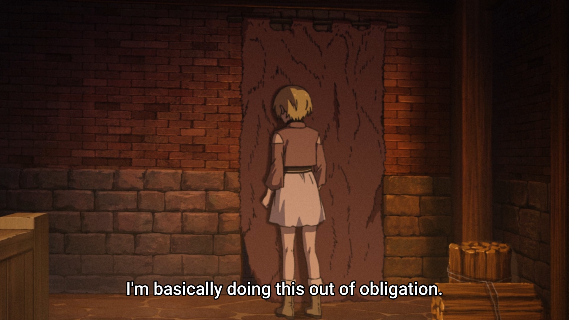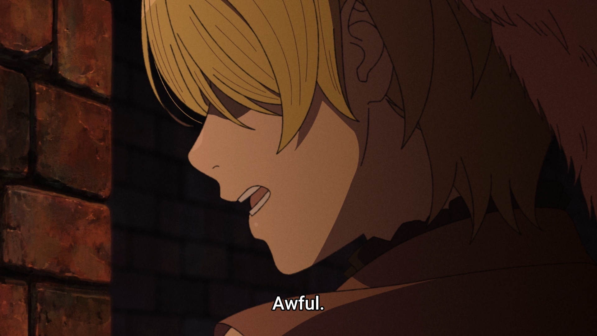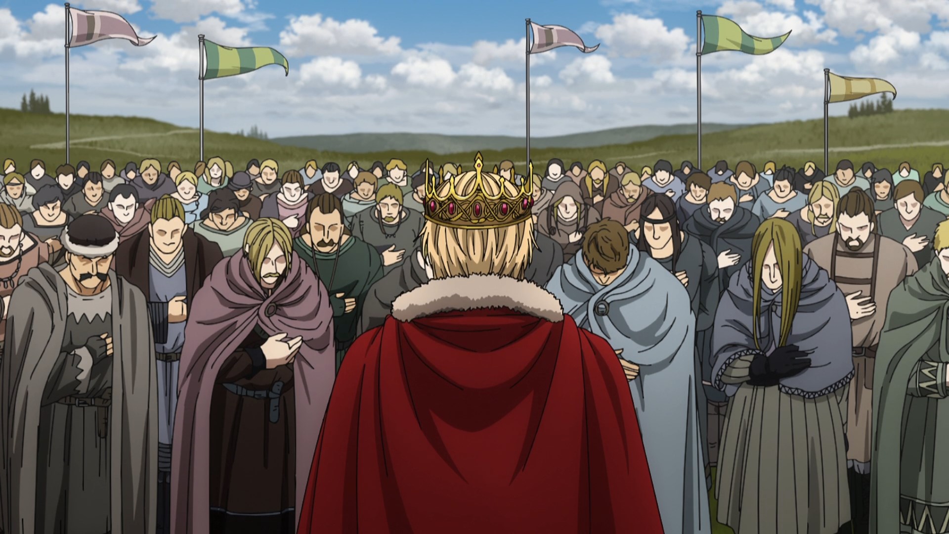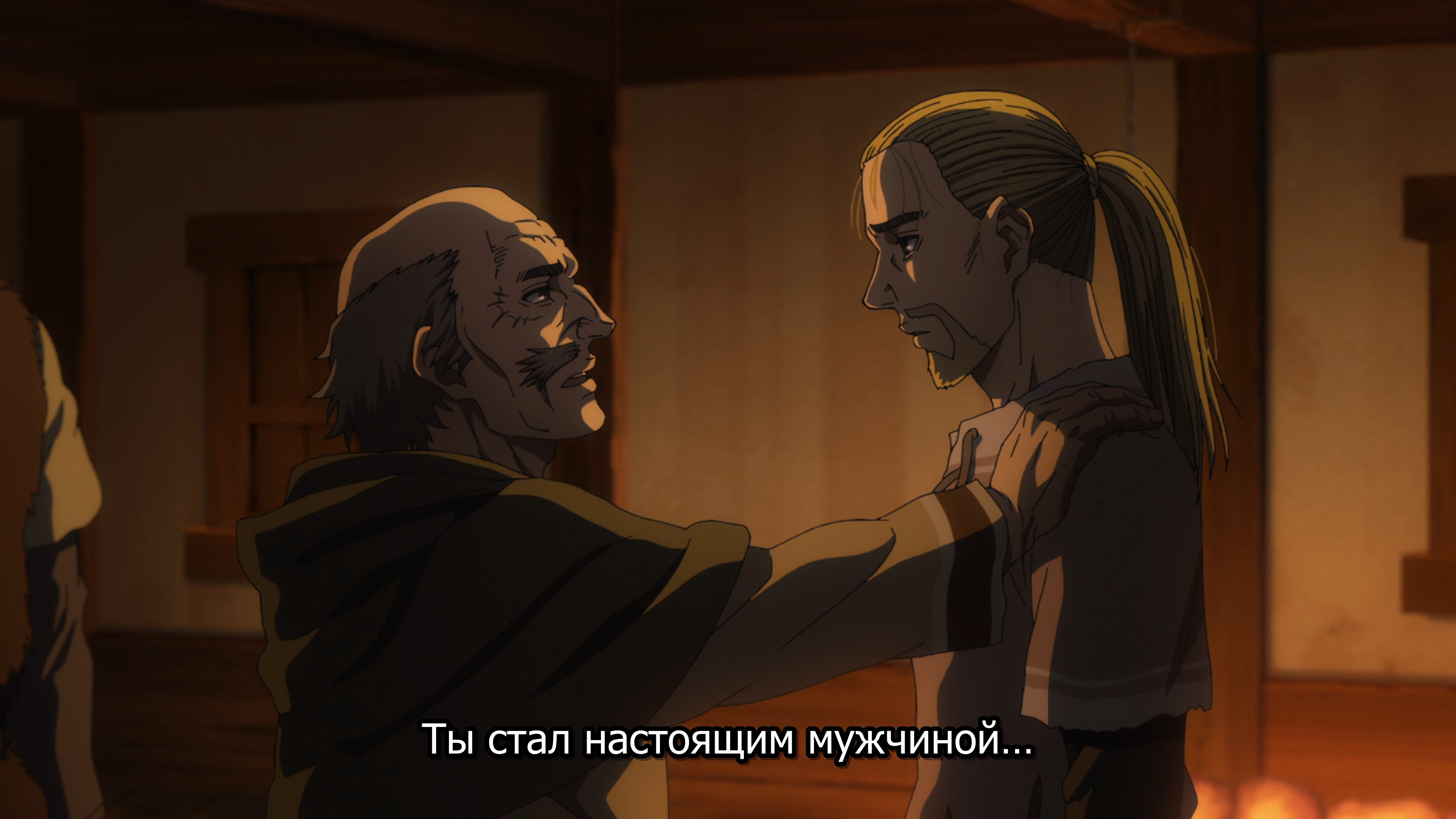 Первая половина вообще отличная. Такой прям слайсик, трудовой и мозолистый. Эйнар был довольно хорош как персонаж: познал несправедливость мира, познал свою слабость и бессилие, из-за чего, как мне казалось, он все время лез на рожон, пытаясь хоть как-то самоутвердиться, и бесился, когда реальность вновь била его по морде. Поэтому было весьма интригующе, как же он будет ментально эволюционировать в дальнейшем. Да и путь искупления Торфина был довольно занятен, во всяком случае ему я больше верил, чем какому-нибудь Вэшу - "я пацифист - ой, я убил мужика - да похуй, он все равно был козлом - я опять пацифист". Хотя меня скорее интересовало, когда же он сорвется, поскольку у нас тут вроде аниме с претензией на некую серьезность и реалистичность, посему все эти мечтания, исходя из окружающих его реалий, изначально были обречены на провал. Плюс, интриговала линия барчонка, и куда ж она его заведет. В общем, было чего ожидать и за что цепляться.