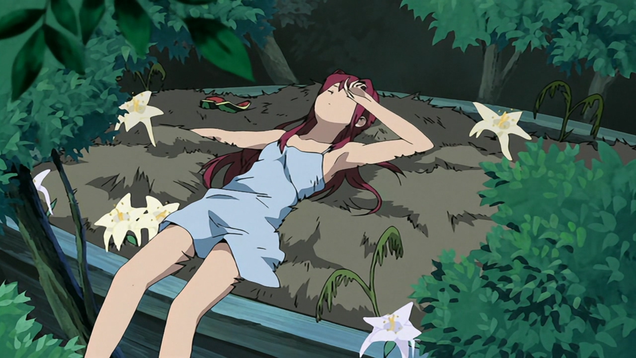 This ugly yet beautiful world - в общем то вся идея в названии, впрочем с изображением "ugly" части в тайтле явная проблема - она существует больше на словах и в финальной интроспекции главного героя. Концепция спланированного массового вымирания как аналогии тревоги от персональной стагнации по мне излишне эпична, но этож гайнакс - как же без космоса и апокалиптических кайдзю? Есть у меня некоторая слабость к артстайлу этого периода - рисунок, линии, палитра - особенно как на первом пике(кажется что-то такое пытались воспроизвести в опе маджикал дестроеров). Кстати этот дизайнер по цвету до сих пор в шафте работает и, если не ошибаюсь, это про него Симбо рассказывал, что тот ему не позволял я в моэ-тайтлы свои традиционные сумасшедшие цвета вставлять. 6/10
