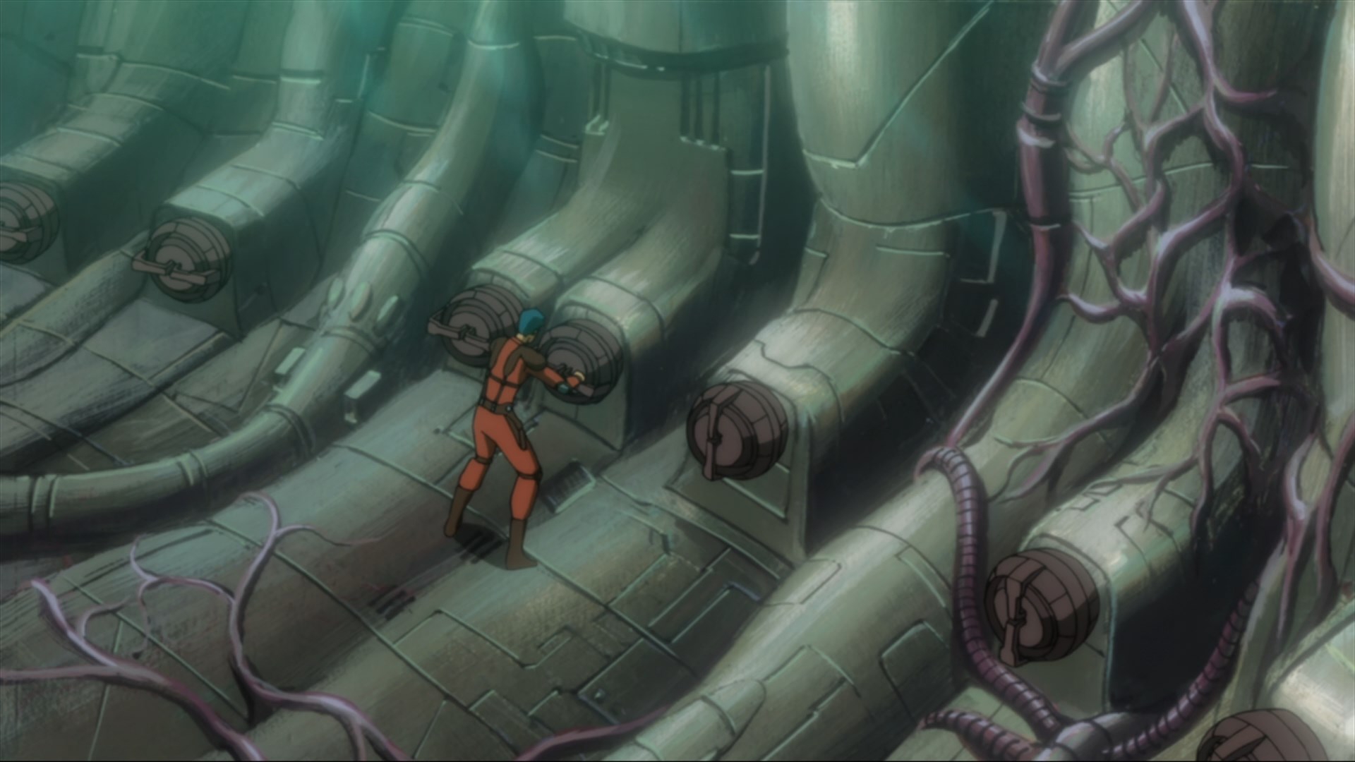 Нравится мне саунддизайн тут - напоминает Лейн. Ну только со своей спецификой, конечно - вместо гудения проводов электрические звуки, скрежет, пар, органическое чавканье - все с таким эффектом закрытого пространство, сочное и доминирующее - не перебиваемое музыкой или диалогами.