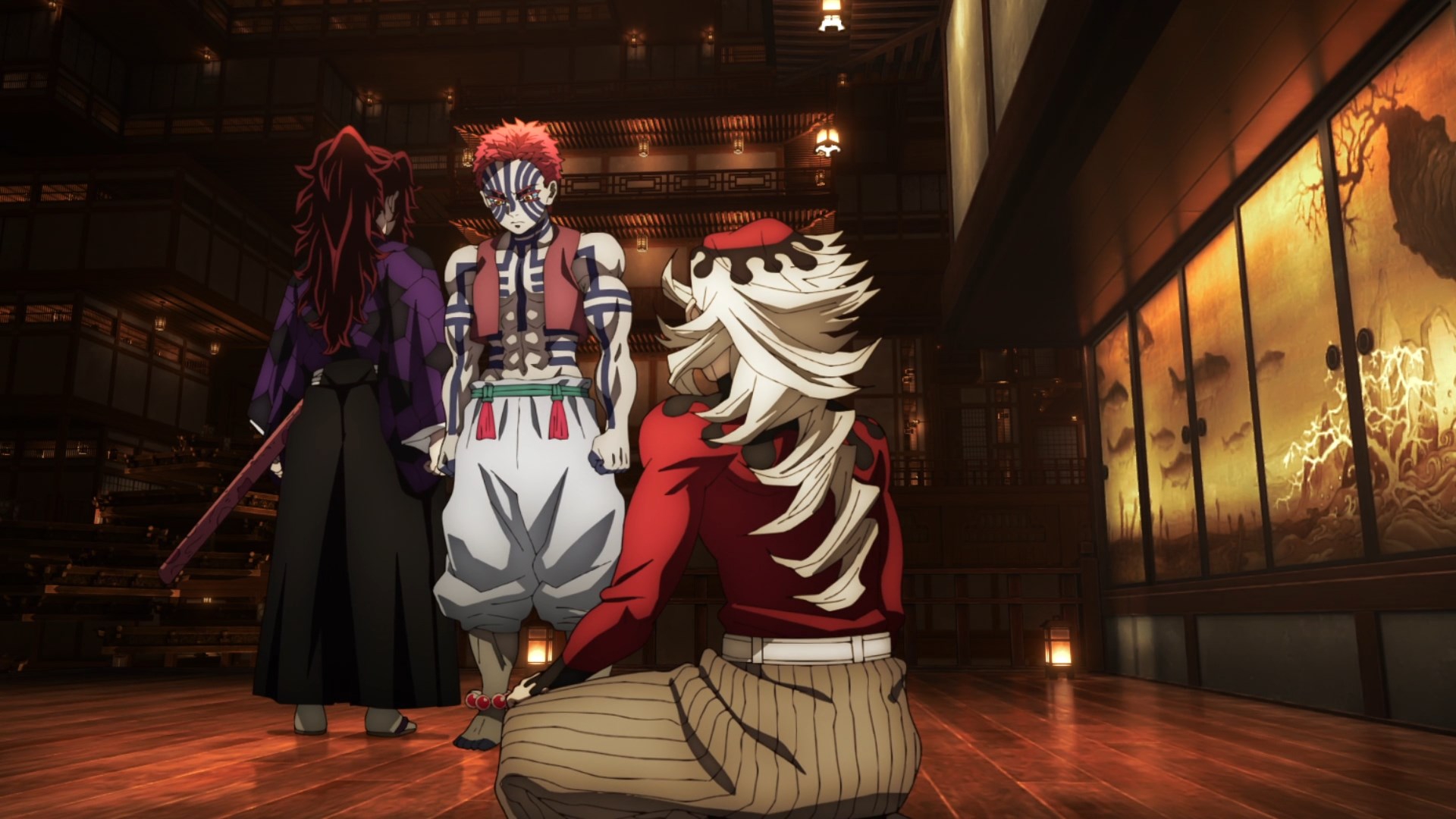 В целом мне понравилось больше предыдущего сезона. 2 боя одновременно в данном случае лучше 1, тем более сам Хантенгу по способностям самый хитровыебанный демон манги и его фазы повеселее унылого месива с Гютаро и время от времени нас в более спокойные события с Муичиро перекидывают, поэтому есть хоть какая-то динамика происходящего. Ещё в экранизации хорошо чувствовалось, что Хантенгу люто заебал персов к концу, лол. А мне зашло, с удовольствием в играх с таким боссом помесился бы. Он у меня в принципе одна из любимых Лун потому что способности с концептом доставляющие и в кои-то веки у нас прям ДЕМОН, а не мистер кринж или монструозный нытик для пожалейки. Второй любимчик - Дома, остальные meh, мистер горшок вообще статист, а Аказа в итоге главное разочарование из Лун. Ну и в конце концов, мангака не очень могёт в экшен и техники той же Мицури выглядили как непонятное говно с котами, когда в аниме это виртуозные сальтухи, но без котов. По-моему эта арка лучше в аниме, а вот Квартал наоборот в манге был менее душным. В остальном это всё тот же Кимецу но Яйба, таким он и останется до самого конца, но что забавно, судя по отзывам нормисы начали ныть именно на этом сезоне. 6/10.
