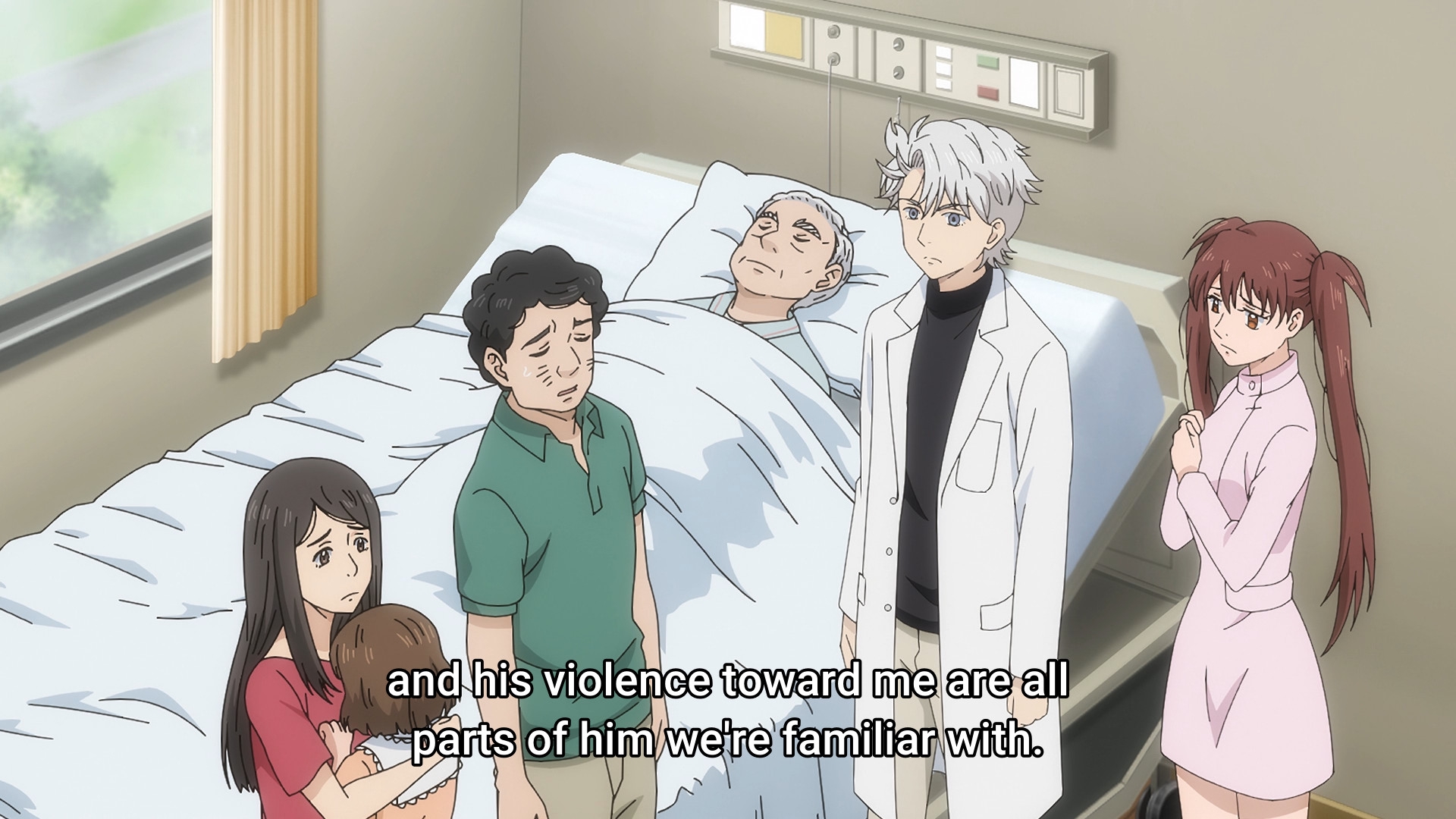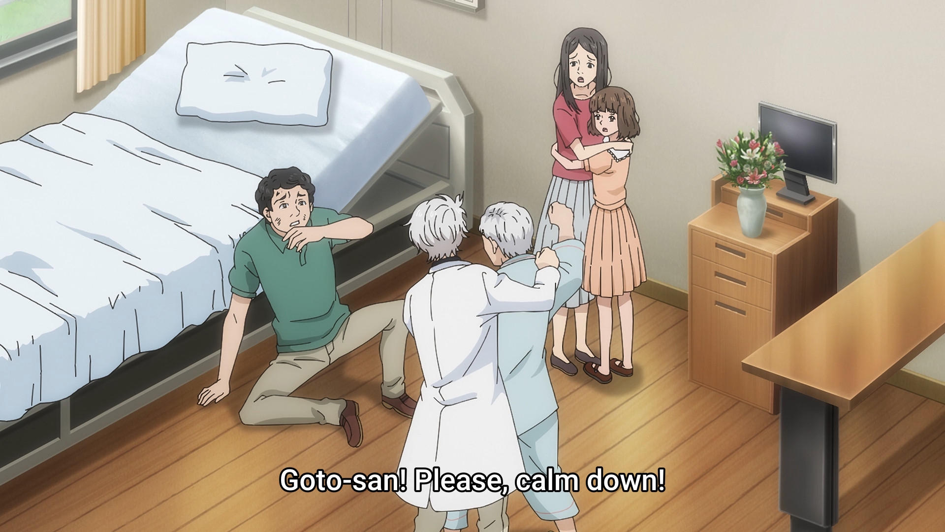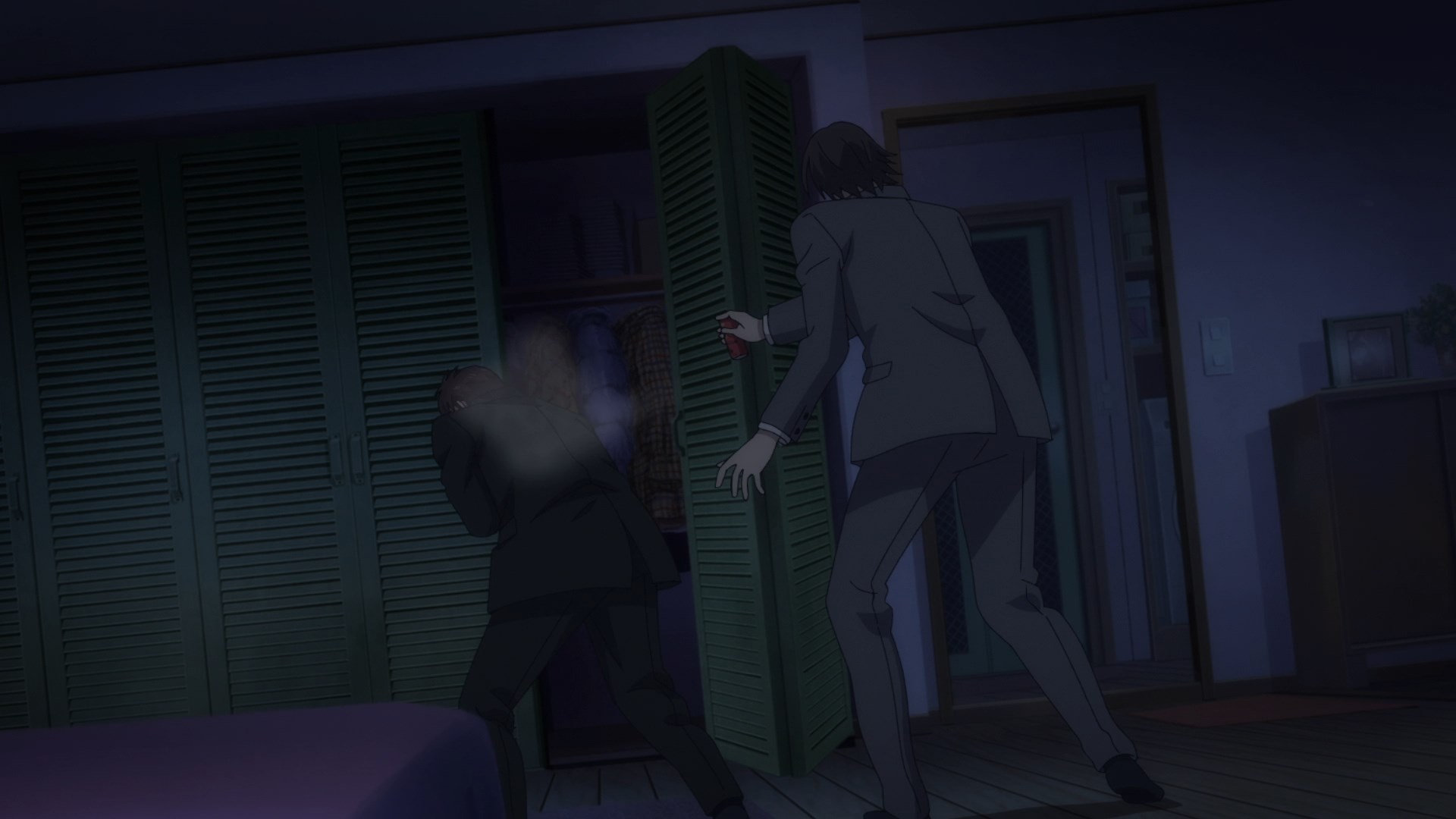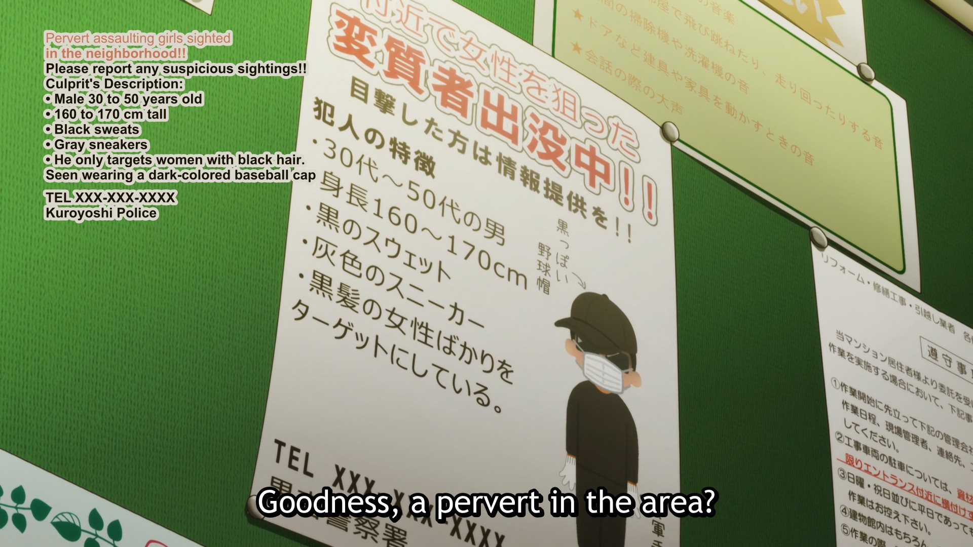 Я помню спойлер, что убийца кто-то из ближайшего окружения. Мужик, судя по первой серии. Какая же у конкретно этого оссана стрёмная рожа. Я, походу, спалил себе сюжет. М-да. Ну посмотрим на слайсик с младшеклашками тогда, хуле.