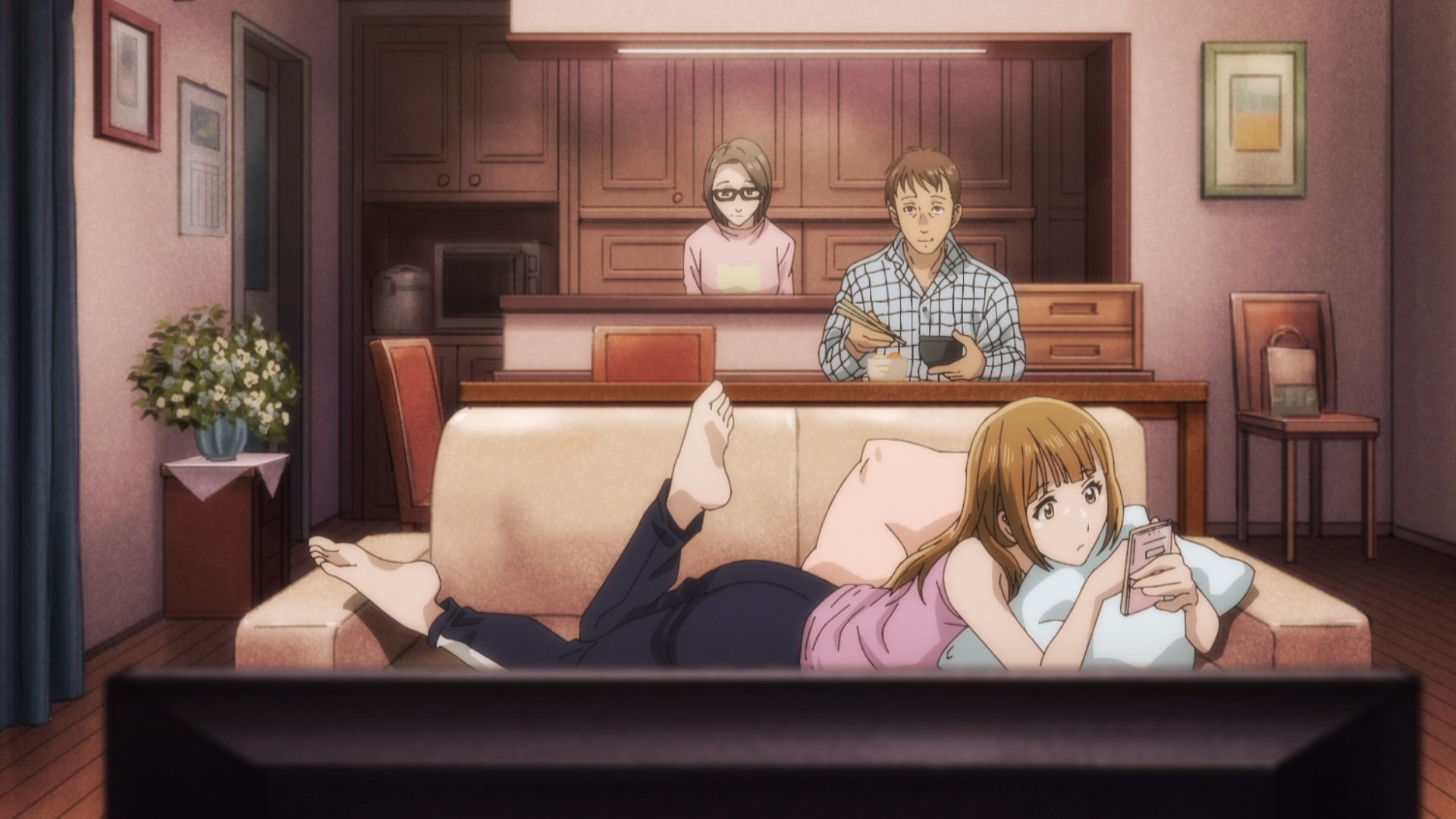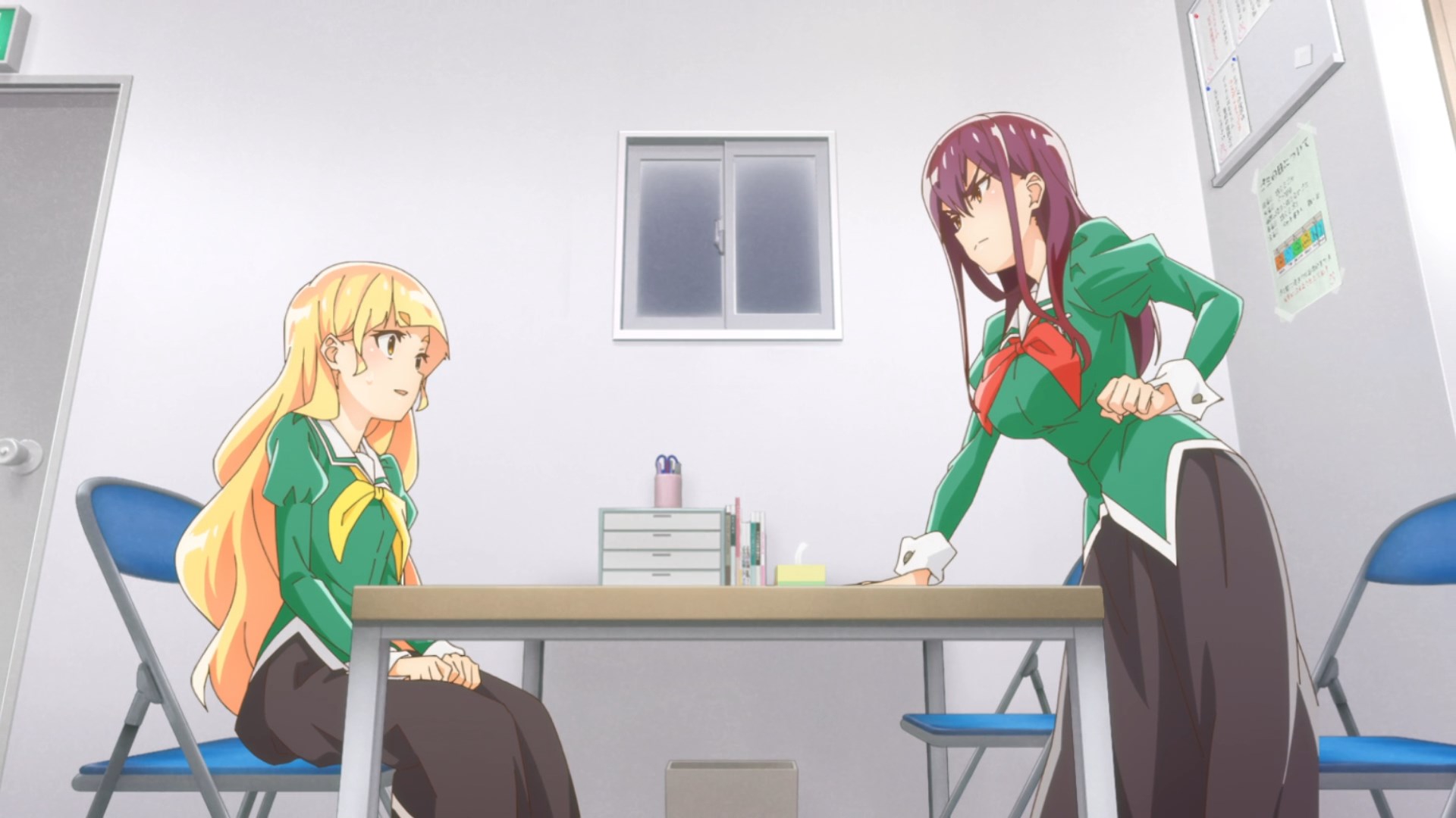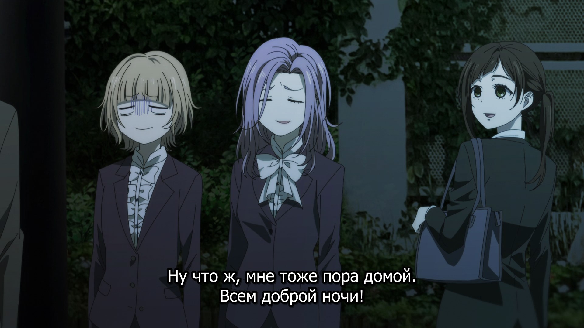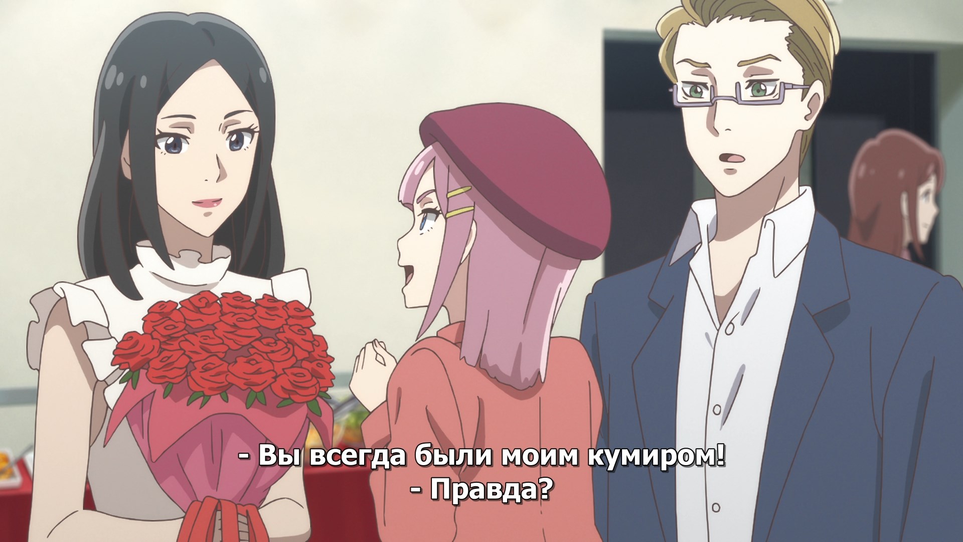 Какое-то очень неприятное аниме. Коллектив чет слишком реалистично бабий: срачи, манипуляции, подлянки из прошлого, постоянная ругань. Антислайс, короче.