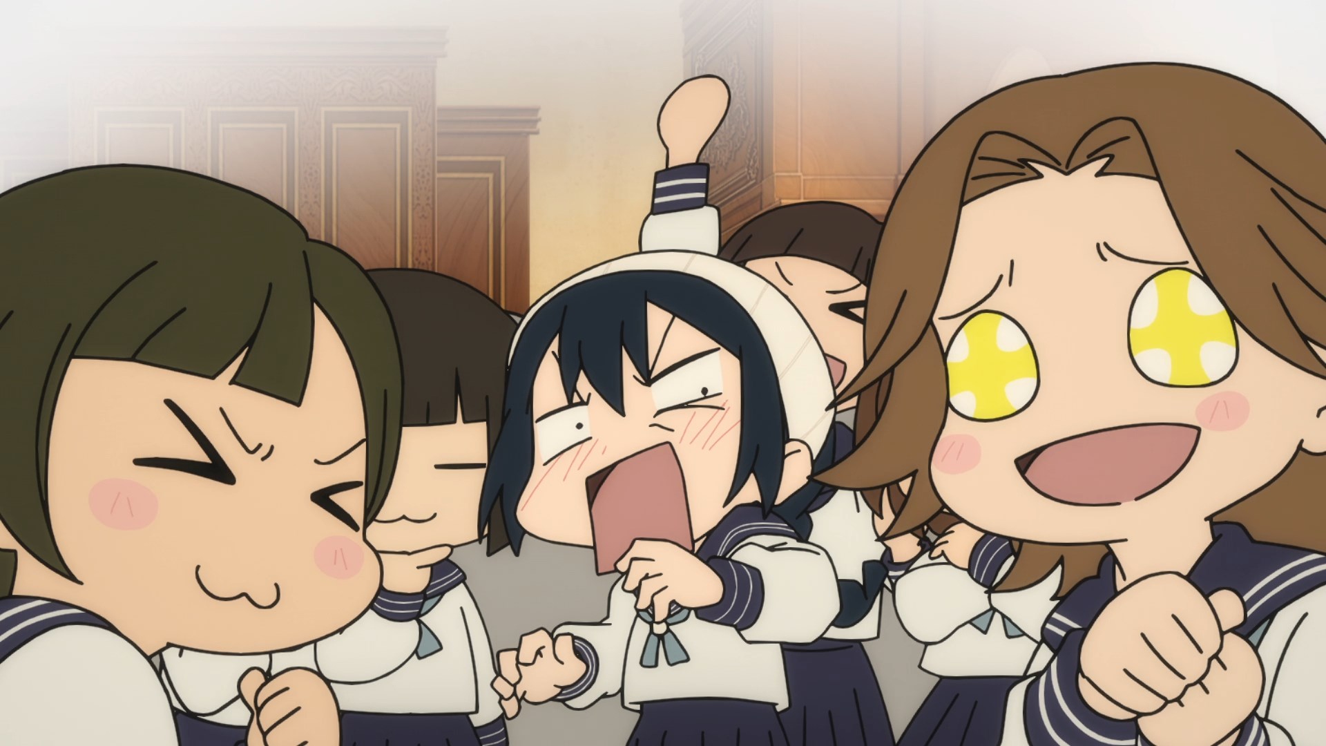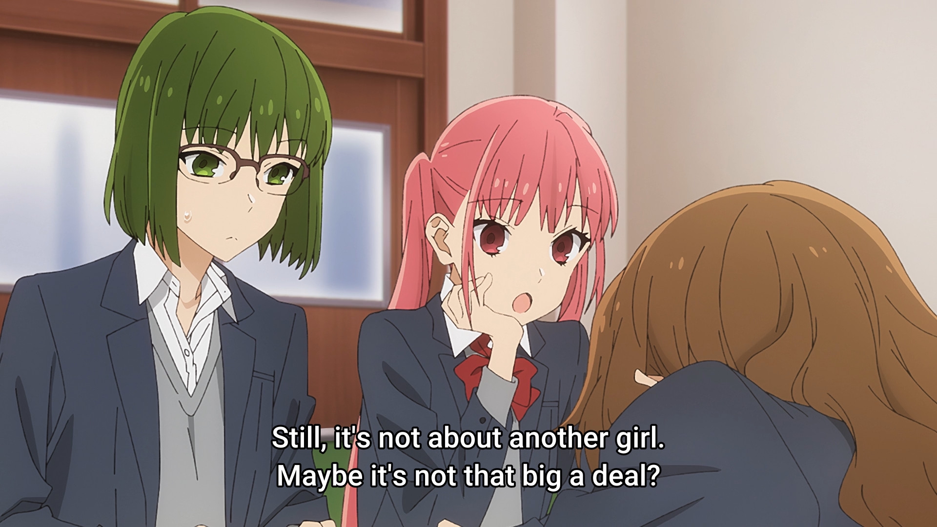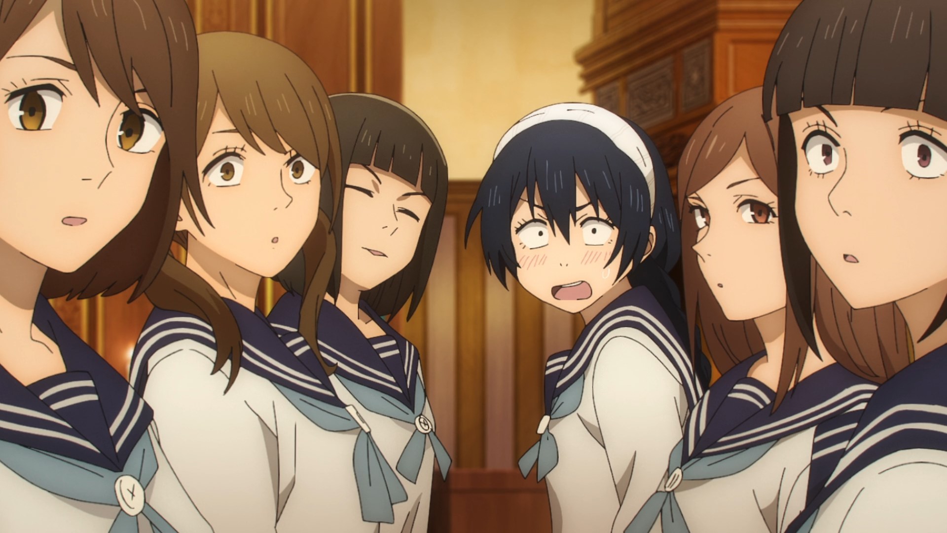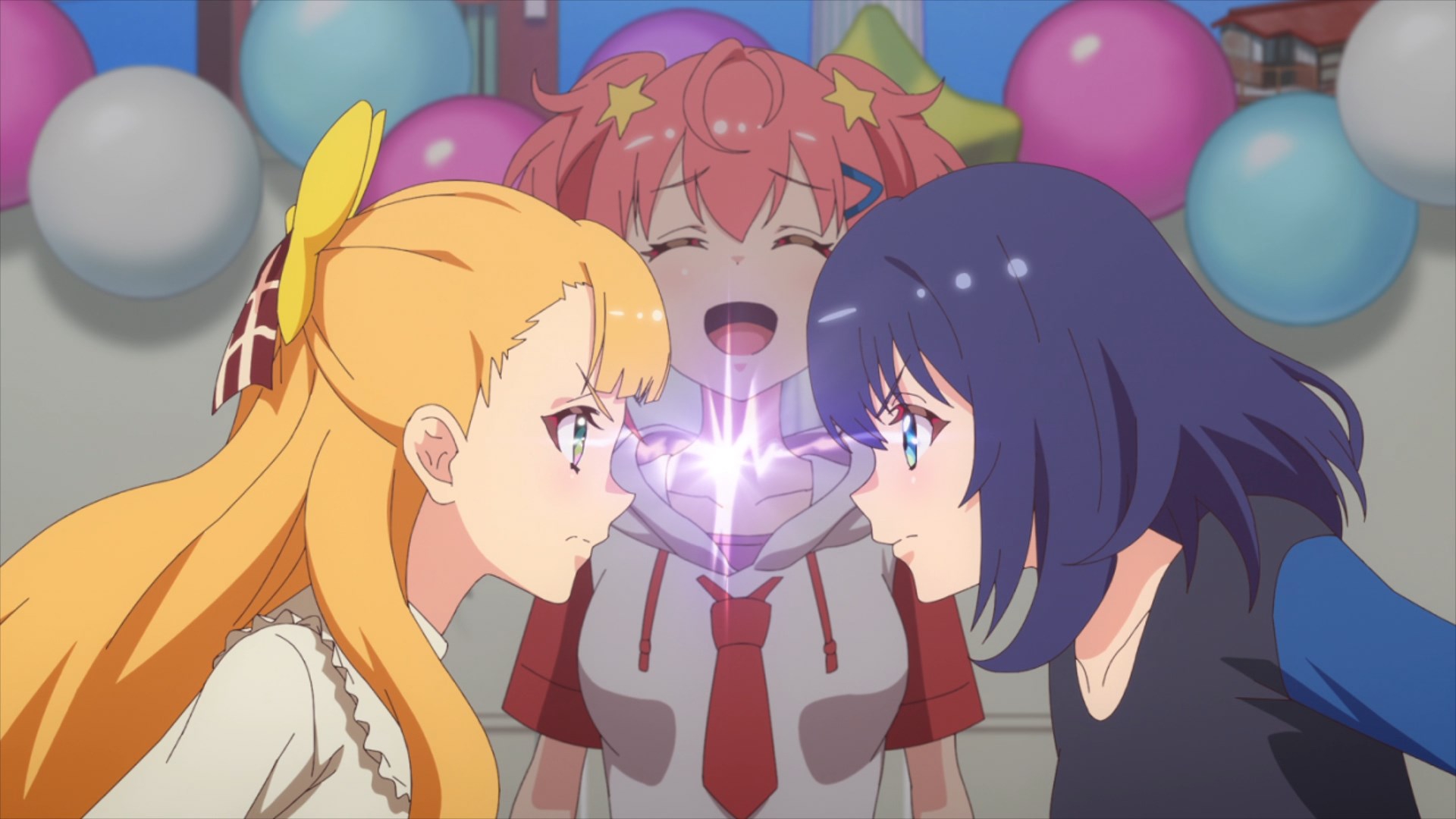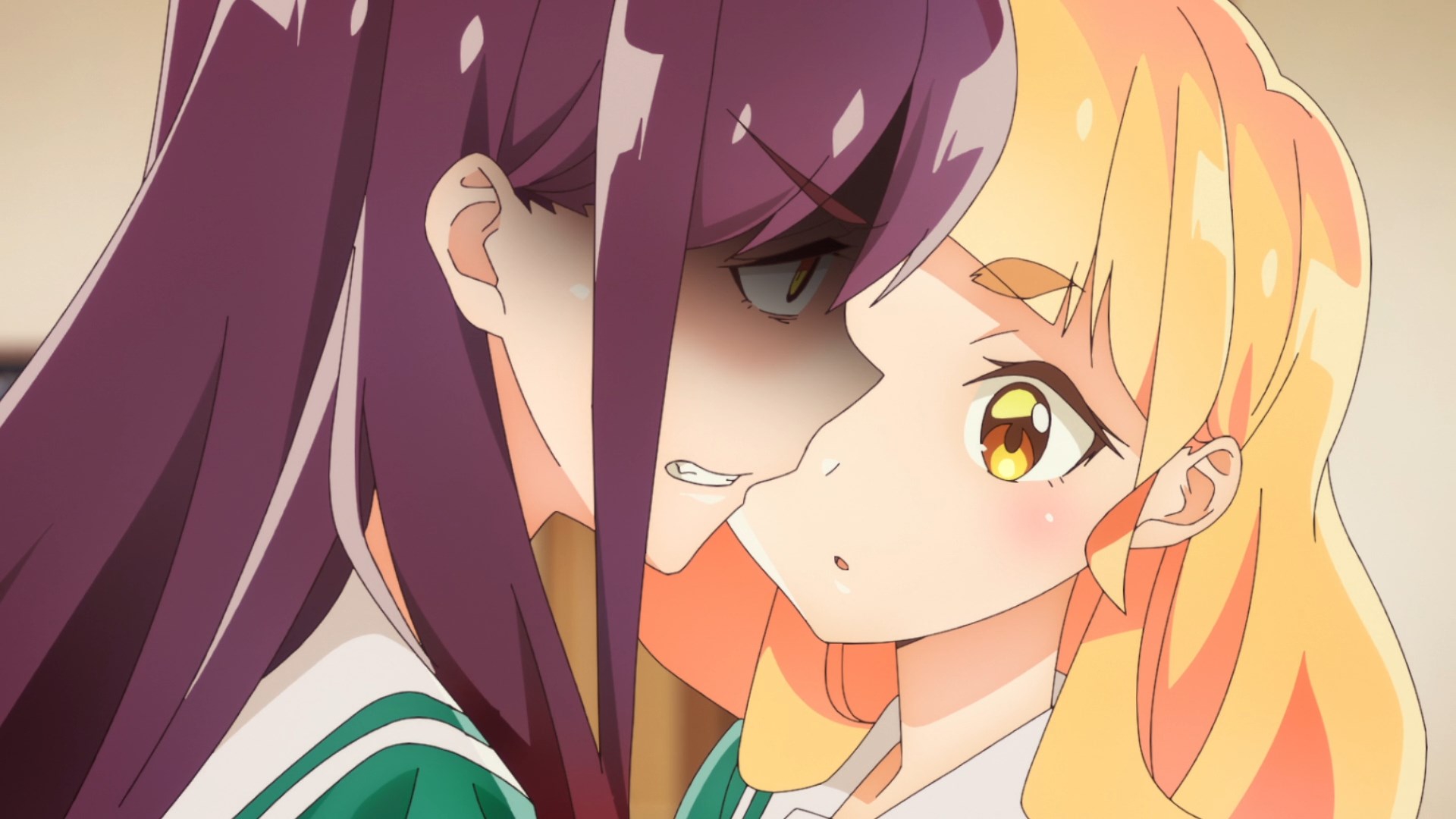 Какое-то очень неприятное аниме. Коллектив чет слишком реалистично бабий: срачи, манипуляции, подлянки из прошлого, постоянная ругань. Антислайс, короче.