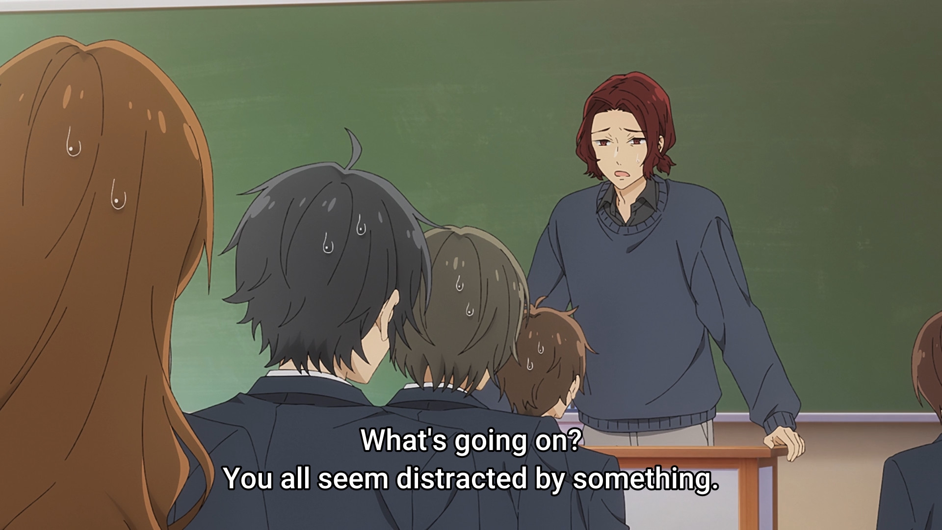ОЯШ у окна на последней парте, возле него его возлюбленная, гамма похожая, атомсфера легкой комедийной романтики, вот это всё. Всё таки нужно начать смотреть.