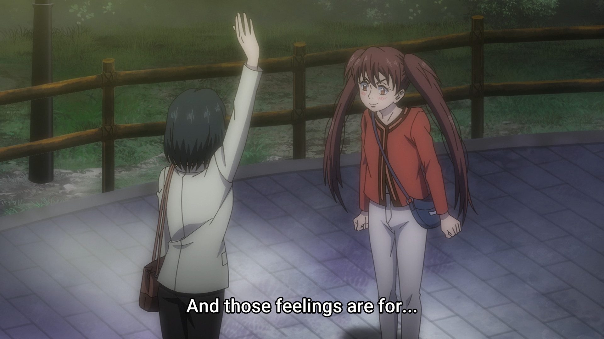 Мдаа, я думал тут дух трагически погибшей подруги помогает баке взойти на театральный олимп. Ну или главная героиня просто поехала и видит всякое, как розовая в Гаккогураши или сестра в Токийском восьмибалльном. А тут, оказывается, какие-то театральные абилки в духе нарутки по материализации идеальной версии себя... Чет я разочарован. С таким базисом слезодавильной финальной сцены ухода в астрал не получится.