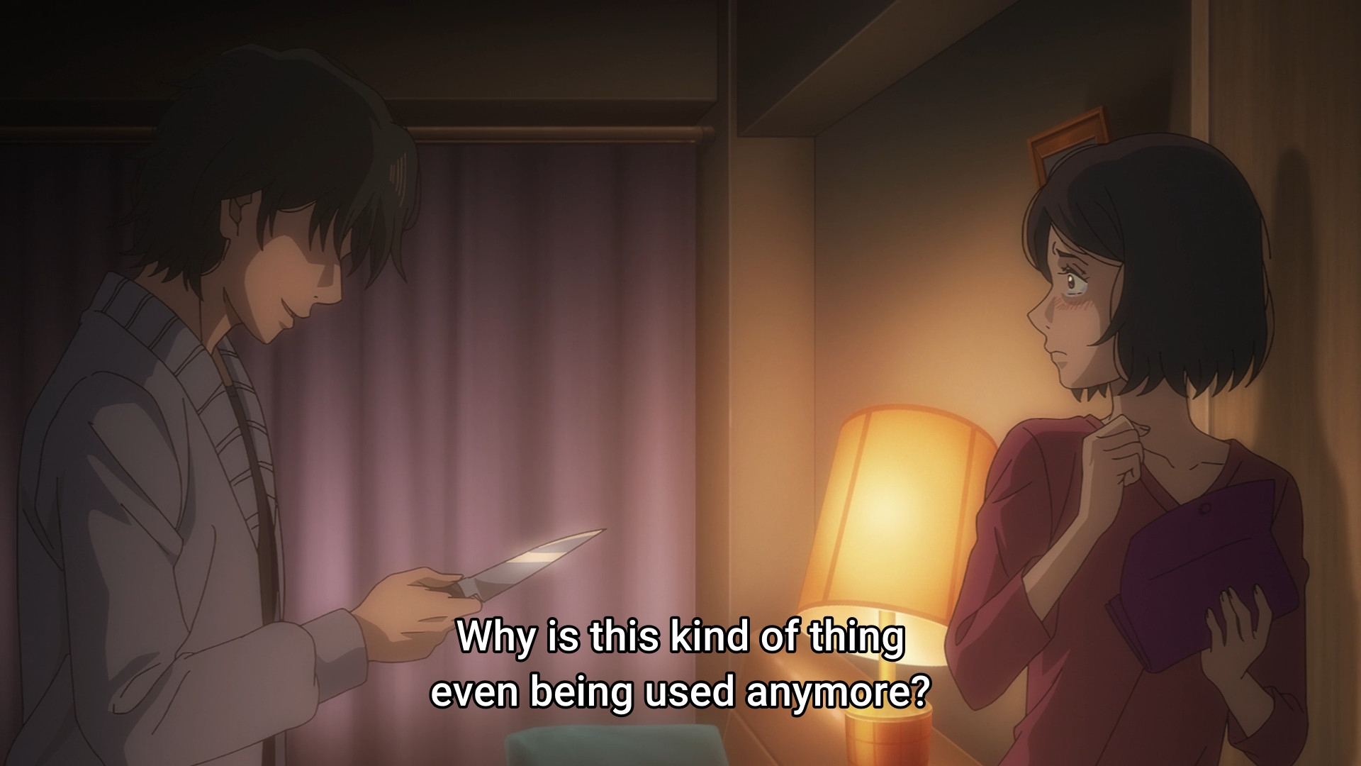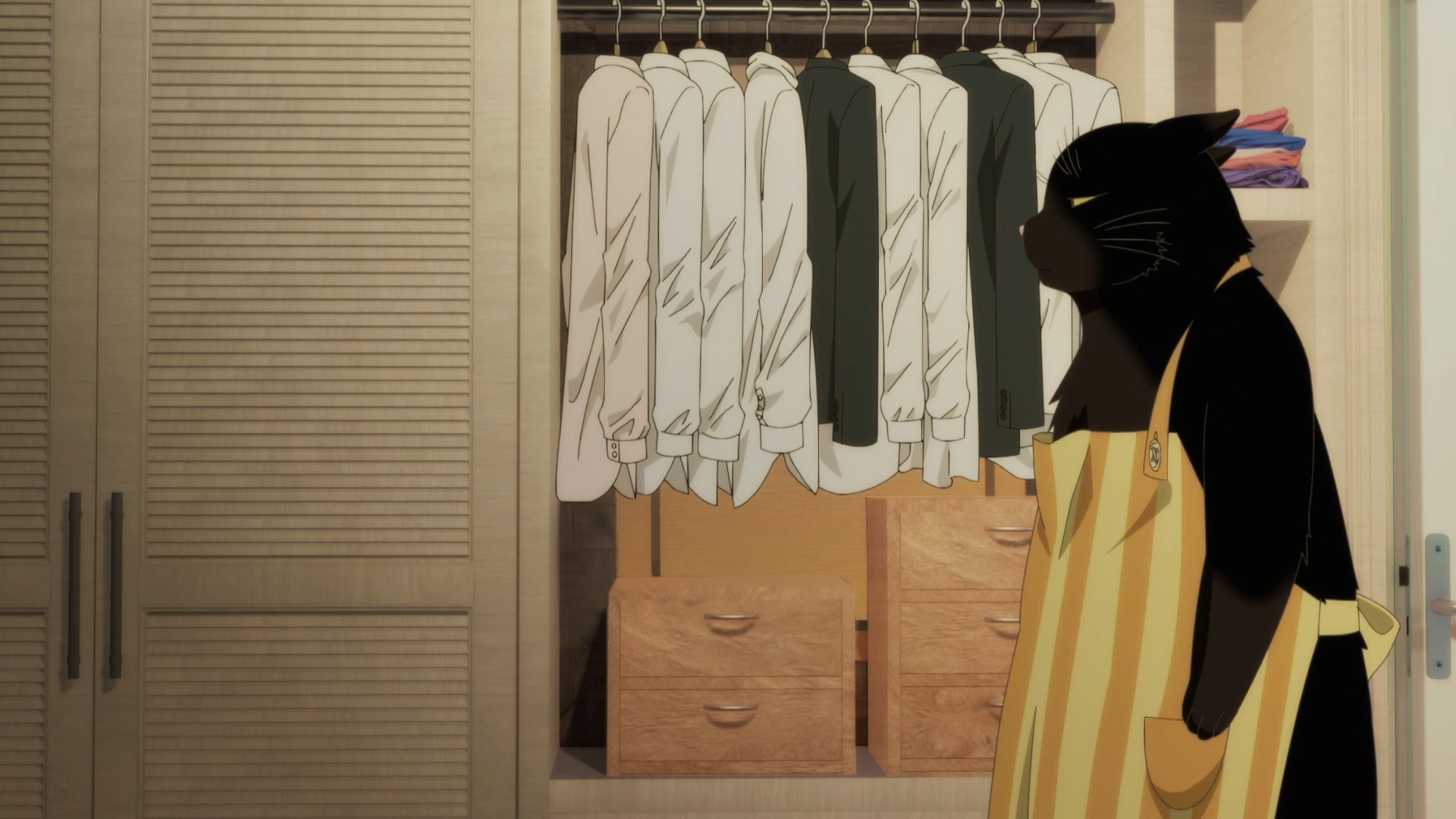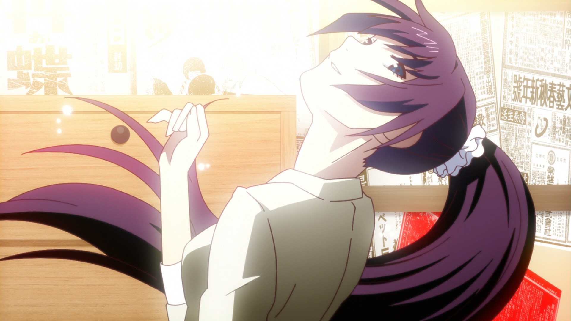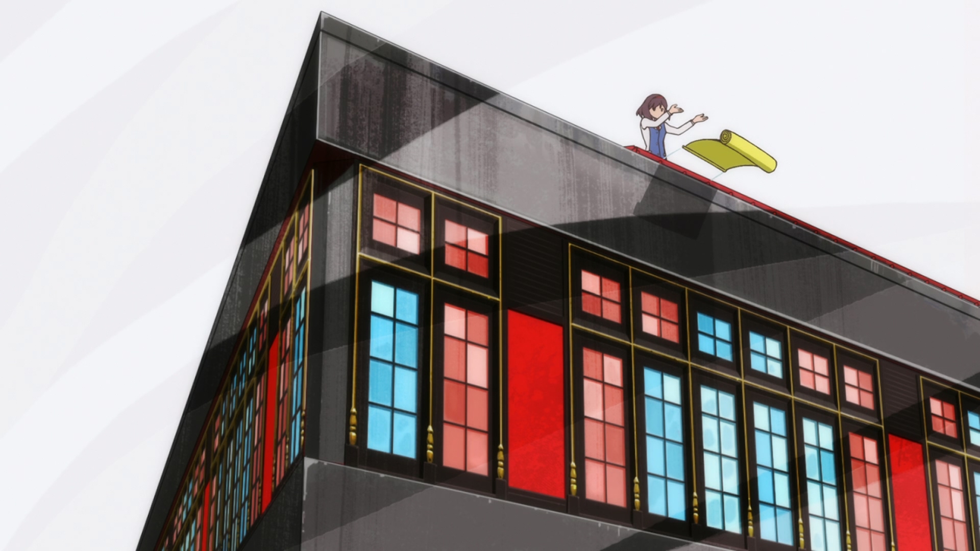 А второй эпизод выглядит немного иначе, хотя раскадровка все еще от главного режиссера. Вот он по своей визуальной композиции даже больше похож на шафтовский. Ну и сеттинг проясняется, довольно интересно.