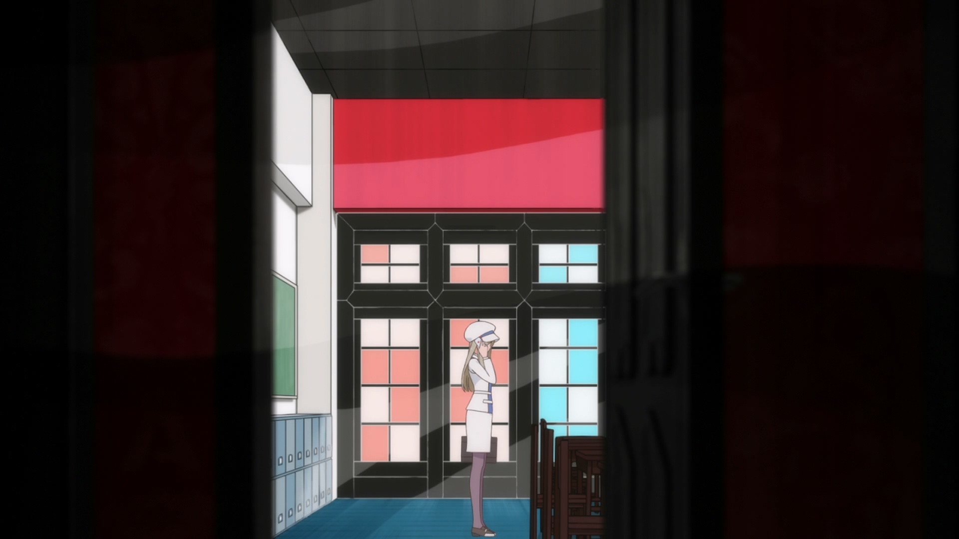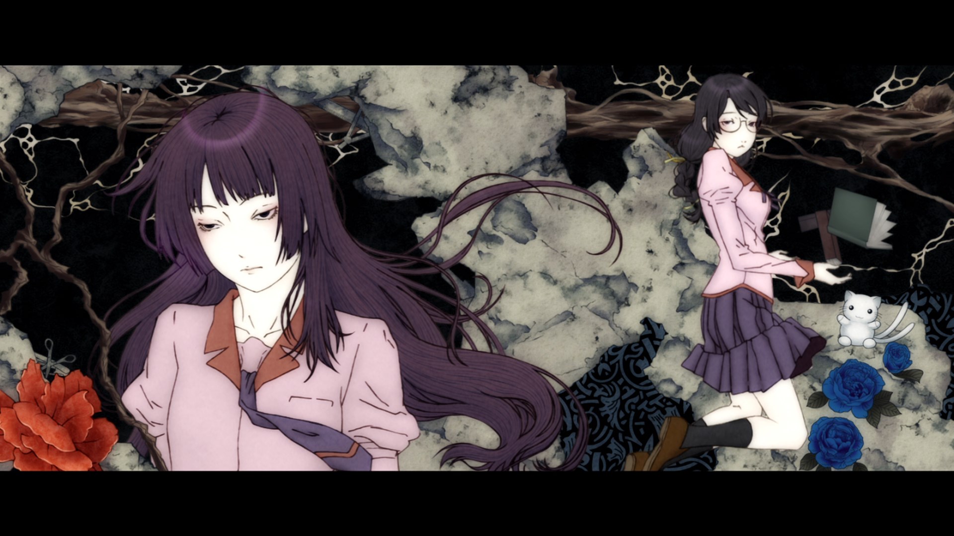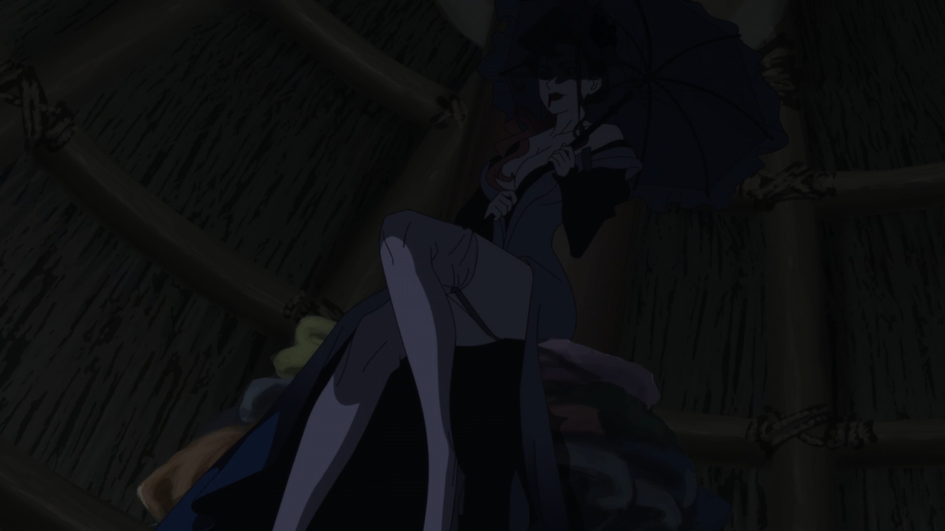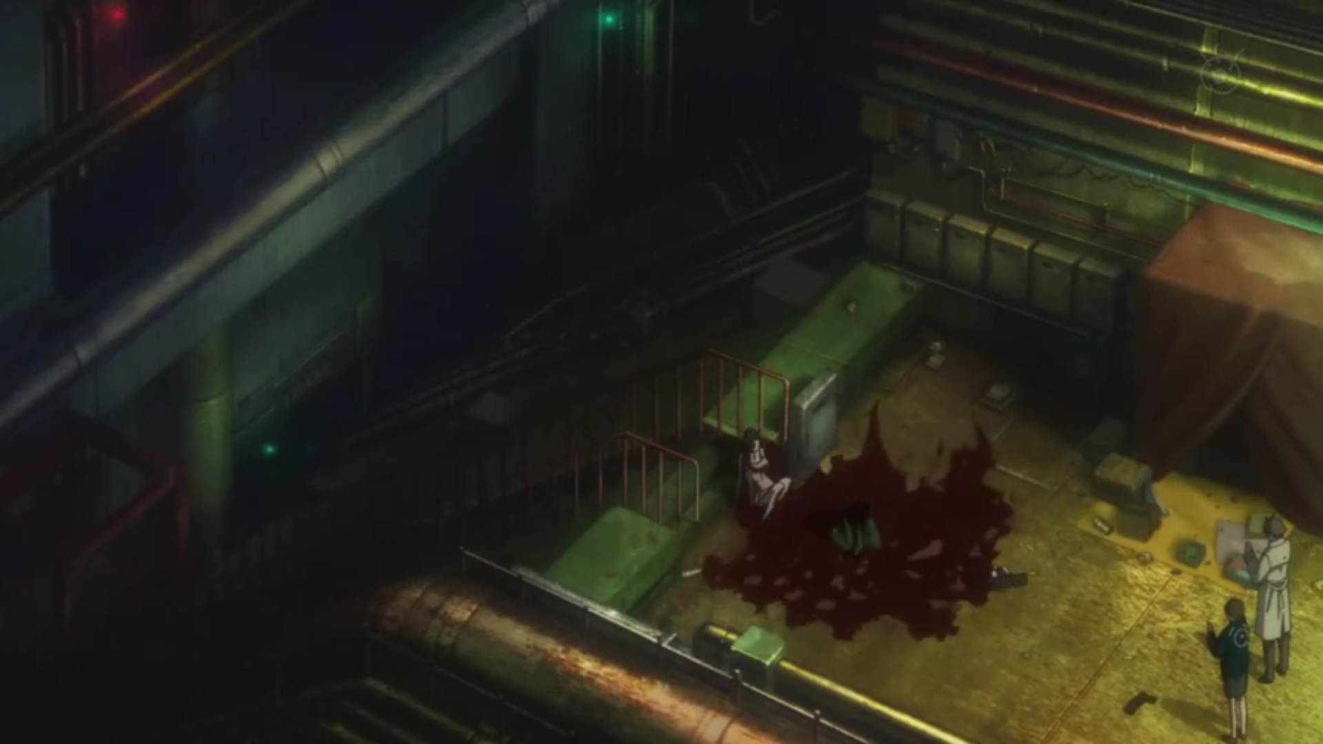 Ну выглядит конечно здорово - чувствуется сразу и влияние многолетнего опыта с шафтами и более ранняя работа над Hells - последнее особенно в абсолютно непоследовательном колор-дизайне и некоторых особенностях рисунка, хотя тут нужно смотреть еще и насколько что наследуется от манги. Финальная(для эпизода) рейп-сцена выполнена наиболее абстрактно, что тоже отлично подходит.