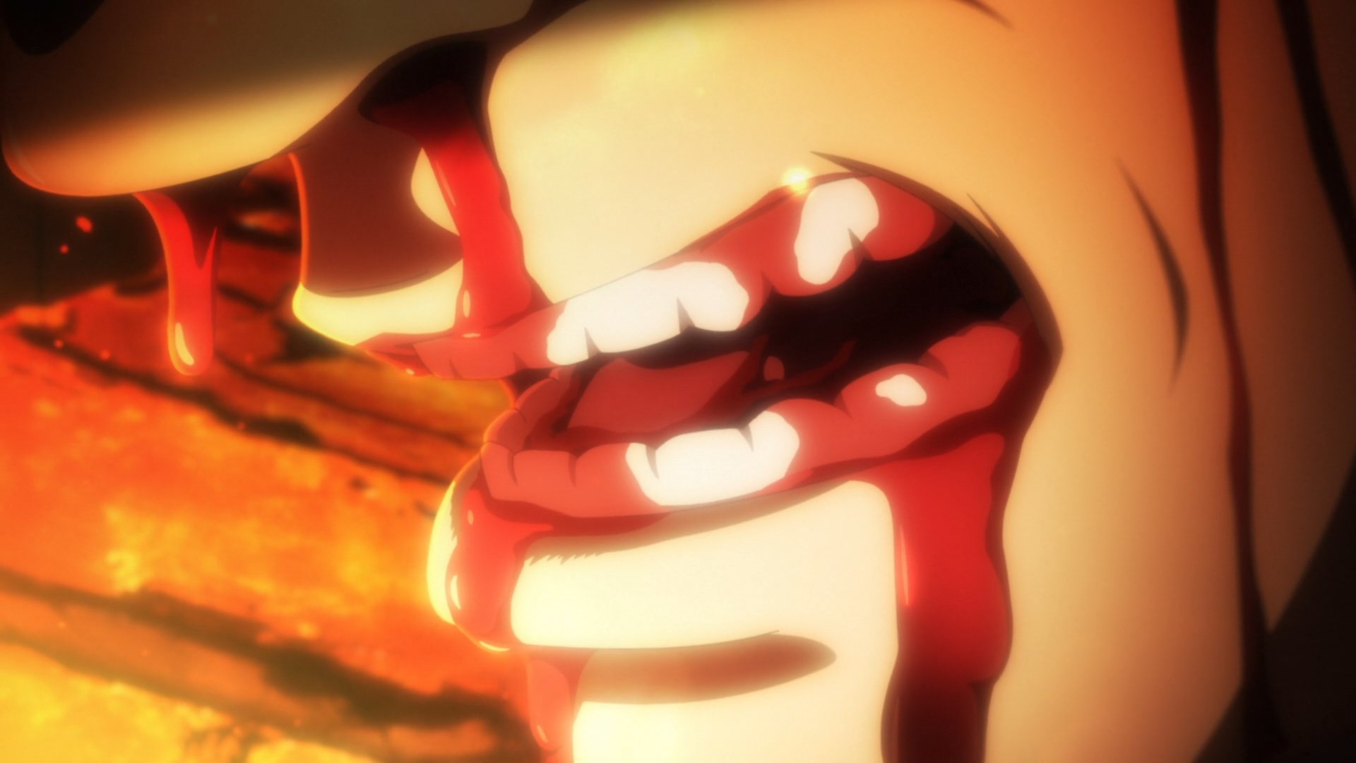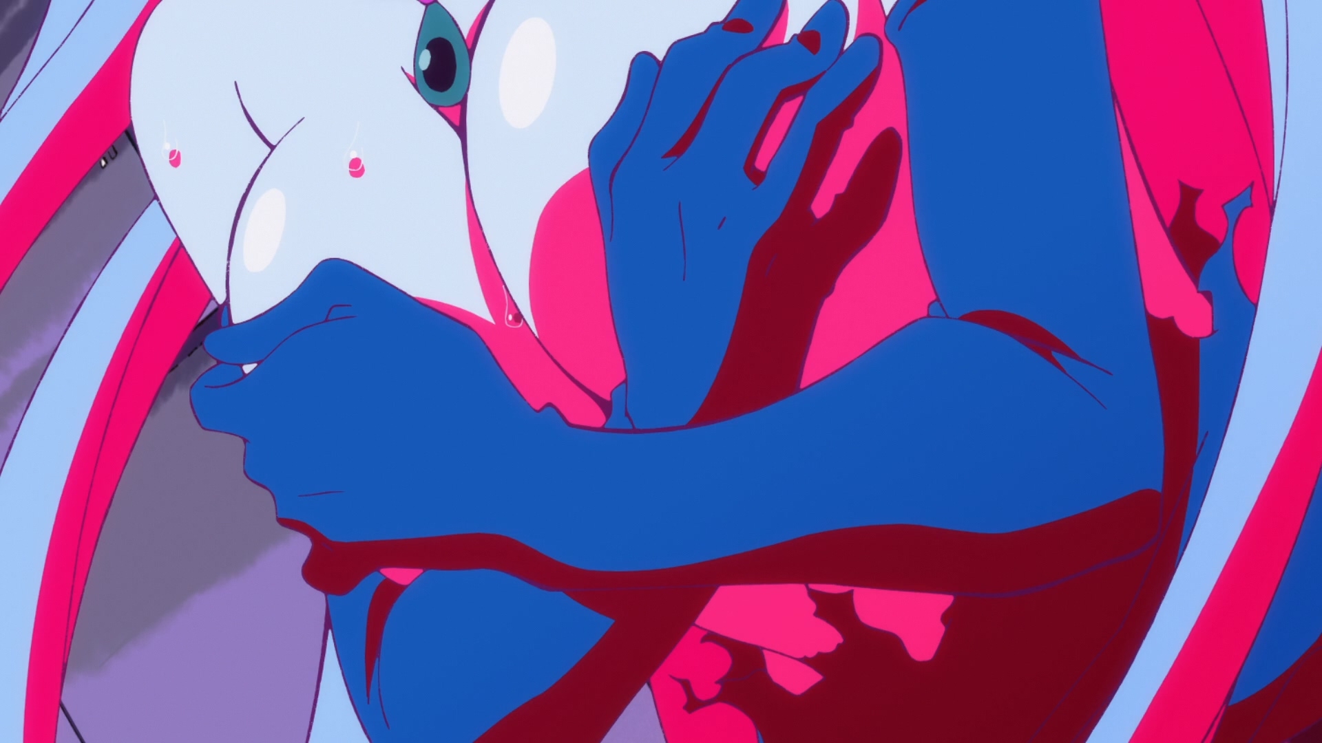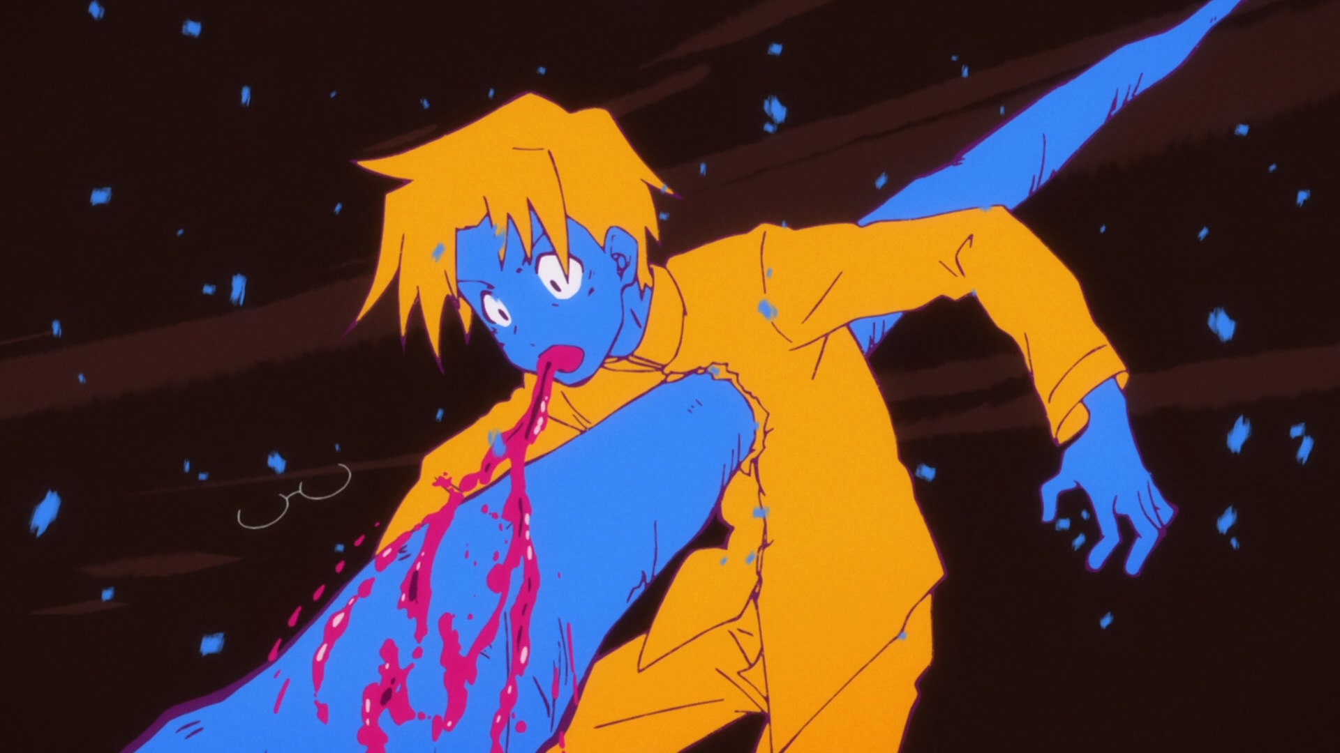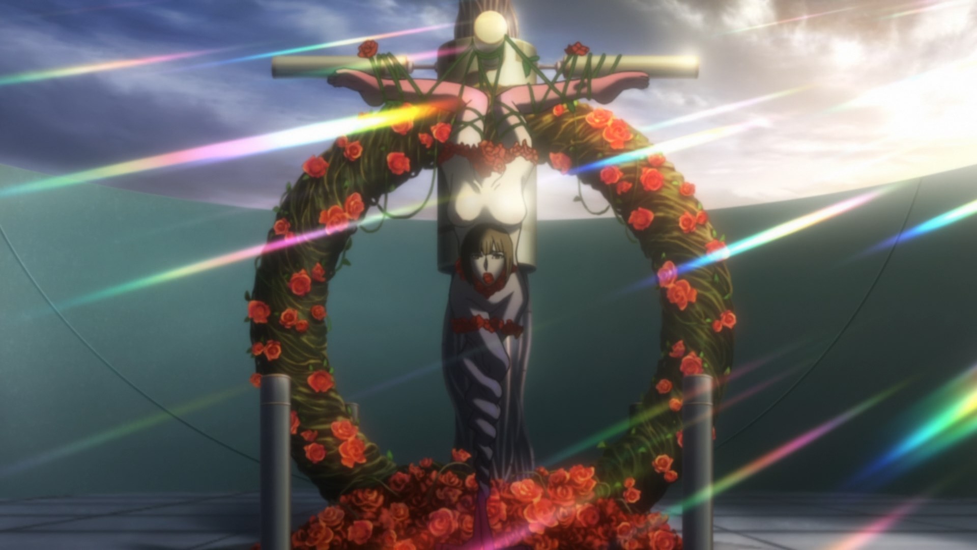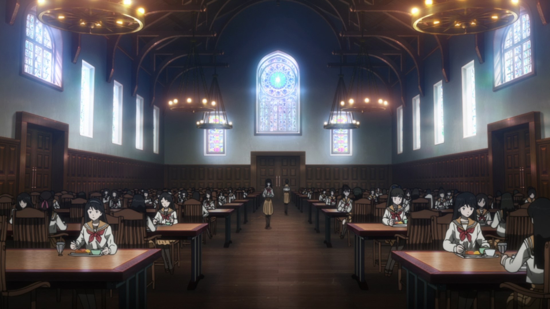Ну выглядит конечно здорово - чувствуется сразу и влияние многолетнего опыта с шафтами и более ранняя работа над Hells - последнее особенно в абсолютно непоследовательном колор-дизайне и некоторых особенностях рисунка, хотя тут нужно смотреть еще и насколько что наследуется от манги. Финальная(для эпизода) рейп-сцена выполнена наиболее абстрактно, что тоже отлично подходит.