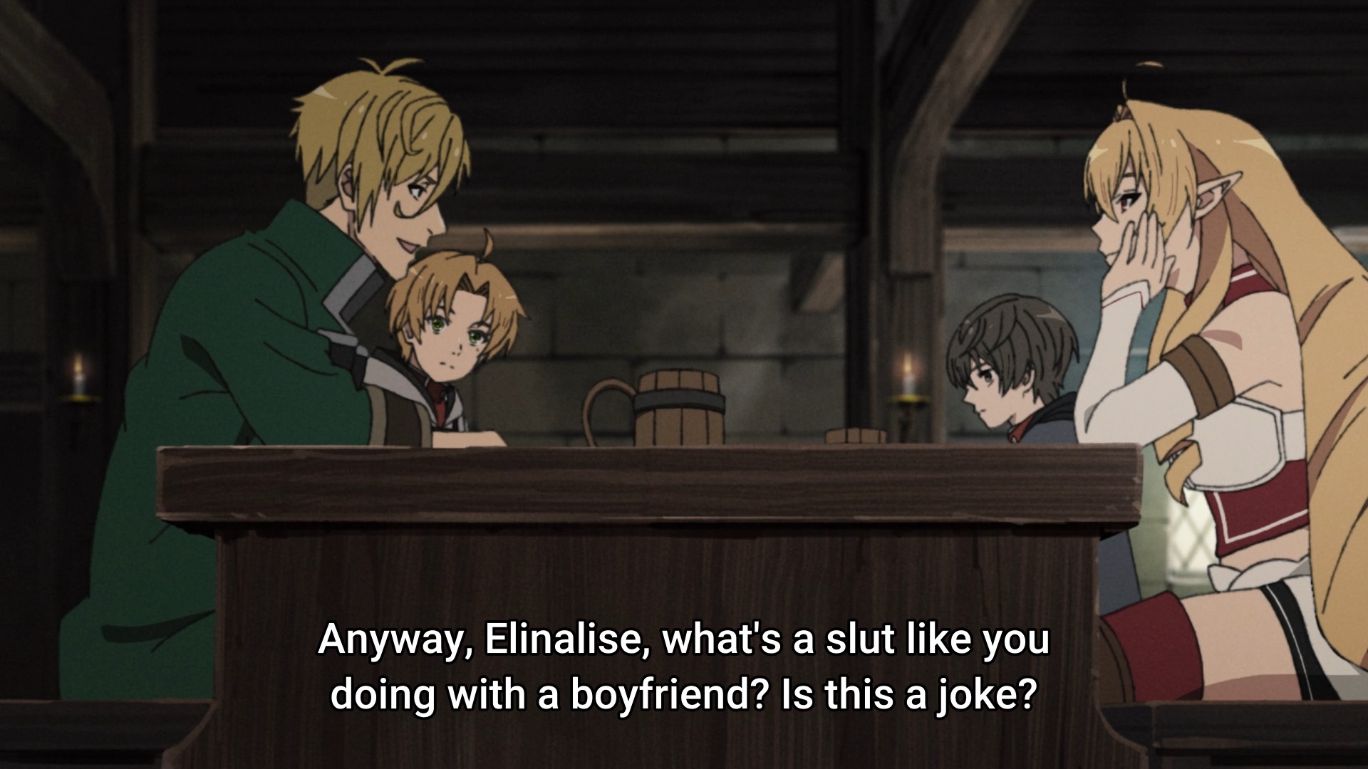 ё баны йврот Не, мне конечно никогда этот ваш мушокутенсей не казался интересным, но в первом сезоне, насколько я помню реакты, были там какие-то разнообразные локации, приключения, анимация, драконы и всякая такая фентези-залупень. Ну хоть понятно было чего люди кипятком ссут. Но я вот смотрю реакты на этот сезон и это какой-то пиздец, нахуй. 90% это эльфийка в ебанутых анахроничных очках на фоне какой-нибудь серой стены. Смотрю для последнего сезона эту элдьфийку поместили на простыни для разнообразия. А основное событие и тема, как я понимаю - не соящий хуй. Давно меня так реакты не бесили и это, если что, критика не самих реактов.