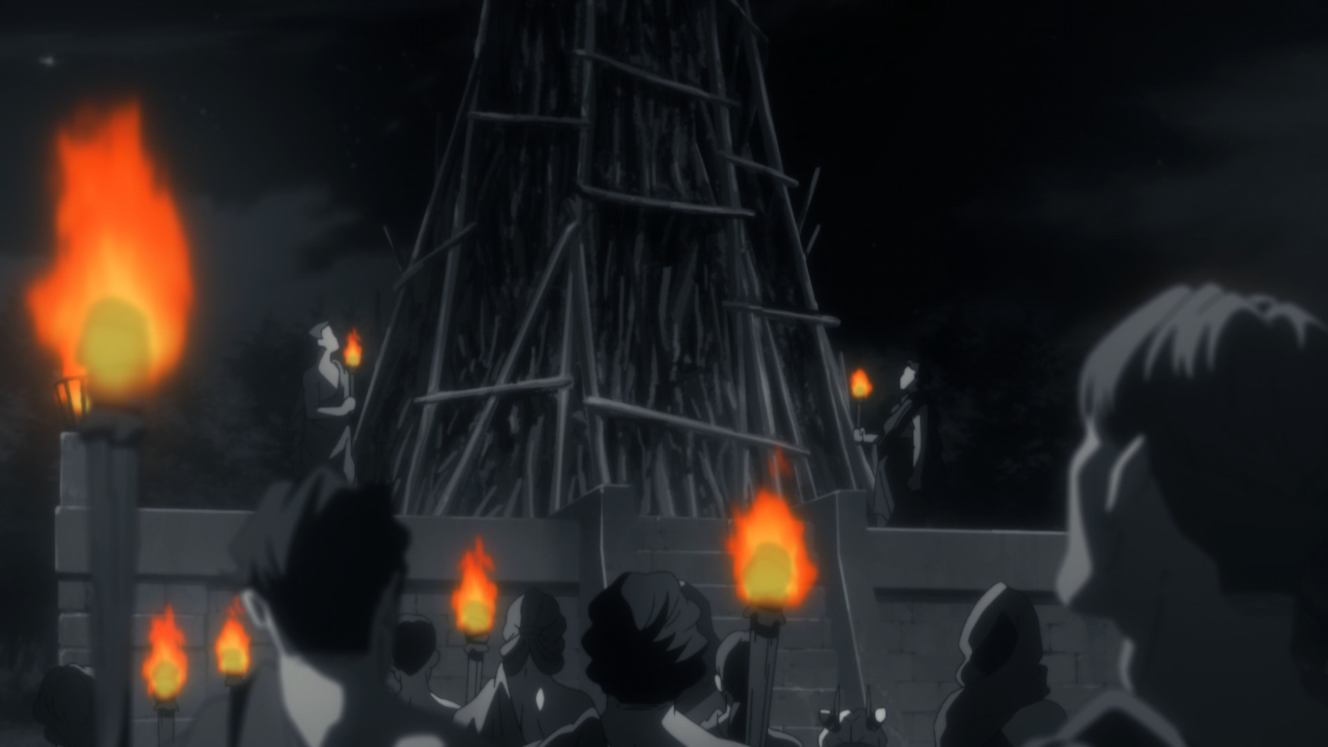 После ужасной лондонской арки эта хорошо идёт. Конечно, визуально стало послабее по сравнению с первыми сериями, прежде всего с точки зрения постановки. Но сюжетно эта арка куда более интересная, хотя теперь и понятно, что всё действо зеркалится между двумя деревнями. То, что мейде дали много экранного времени - тоже хорошо, а то уж больно она незначительным персонажем была несмотря на казалось бы не последнюю роль.