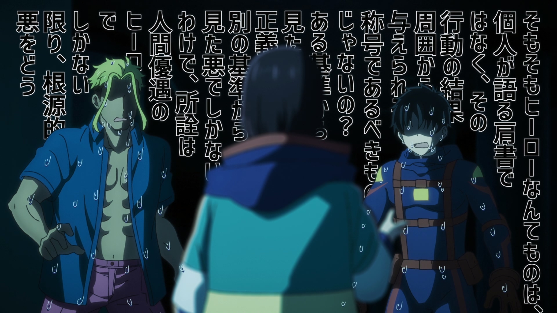 При попытке посмотреть каждый новый сезон у меня возникает закономерная проблема: как пережить первую десятку серий, пока тайтл не наберет нужную скорость. Гитс со своей игровой концепцией должен был решить эту проблему. Но вышло все совсем наоборот. Тот тайтл, который я начинал, смотреть после первой арки, заканчивается и хеншиниться в какую-то самопародию, где как по спирали на титульного камен райдера из серии в серии накручивают всё новые и новые титулы. До тех пор, пока он не станет богом нового мира. И это мне, в принципе, было интересно смотреть, если бы не превращение всех остальных персонажей в задник, которым дают поднять голову только раз в десять серий ради своих арок. Вот эти все проблемы делают игровую концепцию совершенно лишней для сюжета, что и вылилось во внезапные снижения бюджета с хиатусами и даже вырезанием целых драк из эпизодов. По итогу гитс, имея большое количество заимствований из гайм, должен был быть приятным буферным сезоном для дальнейшего разогрева получился со всем уж жижей с кучей слабо сочетающихся концептов.