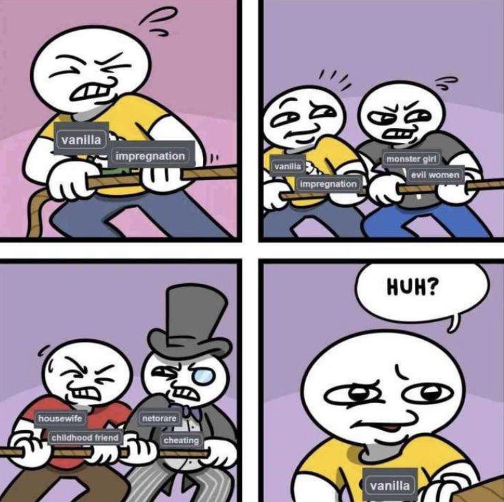 >>178563 Ну большая часть из этих явлений не являются девиациями. Настоящая девиация тут только netorase(если не брать последние многоступенчатые, в которых мне даже разбираться лень) - хотя говорят, что в некоторых культурах это даже было нормальным сексуальным поведением - подкладывать жен под заезжих геологов, но в целом конечно это девиация. Н