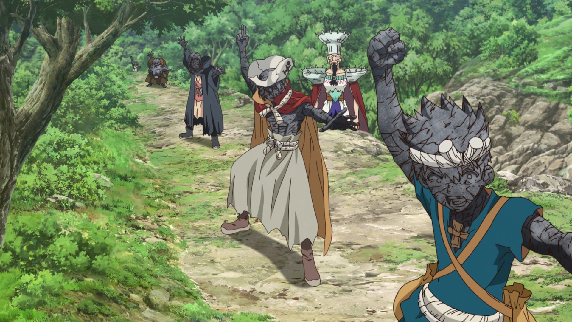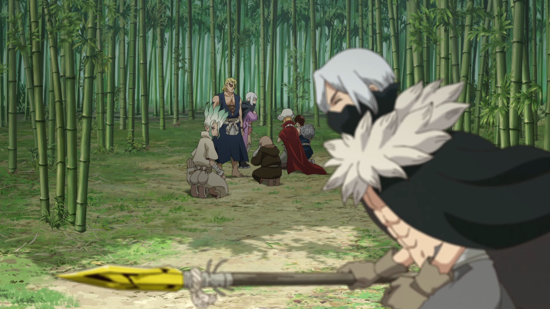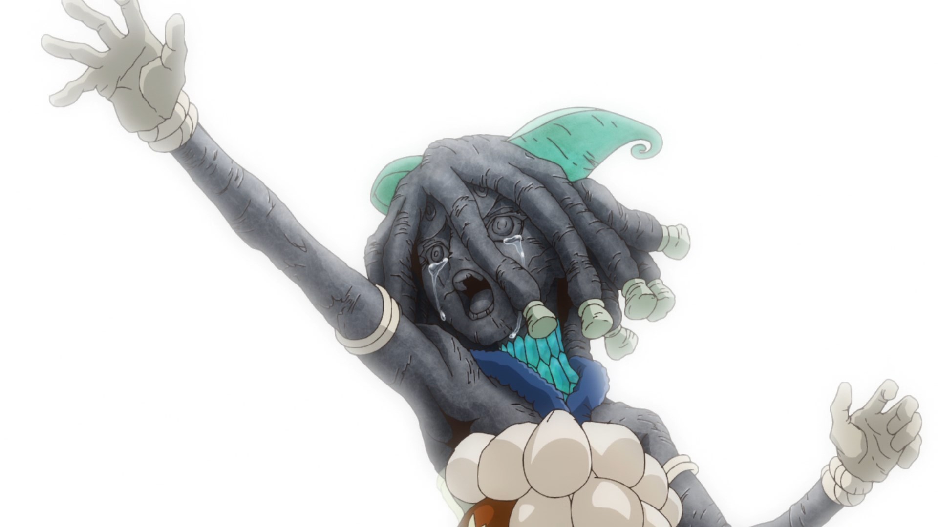 Вообще ни малейшего представления, как он избежал петрификации и зачем челы встали в ряд в такой позе