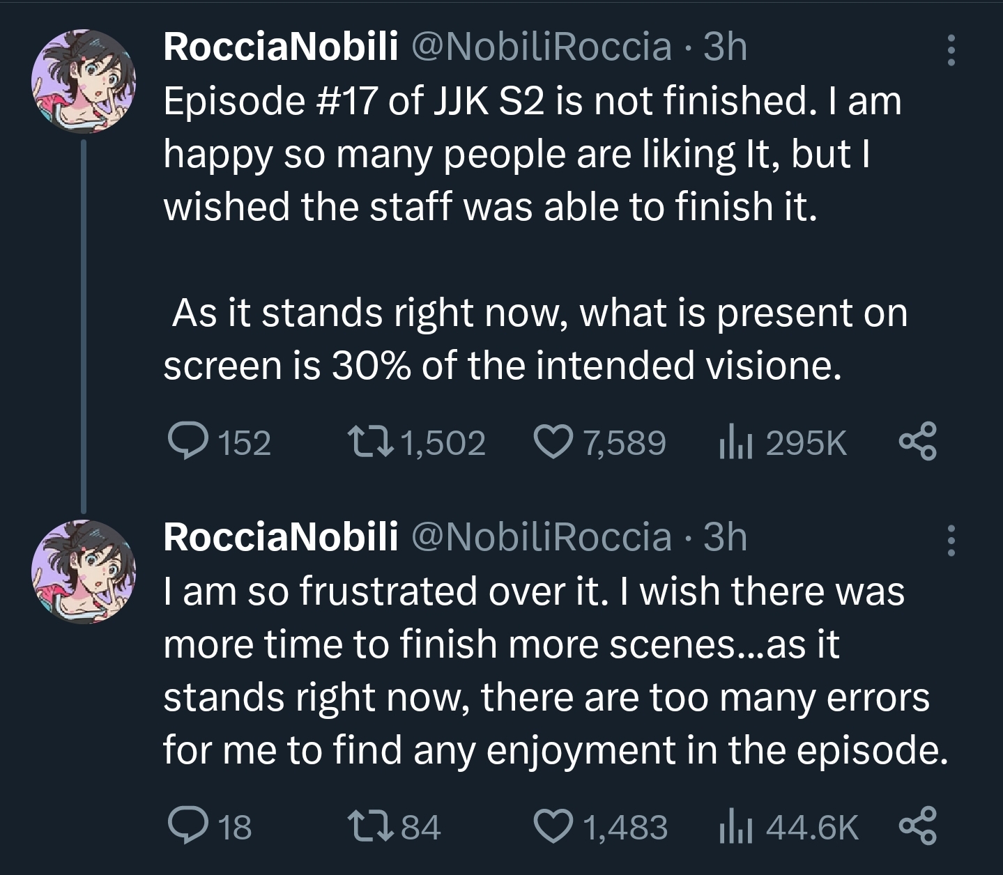>>180049 Я просто напомню, что аниме-индустрия называет главным прогрессом эпохи ковида распространение шаринга материалов, позволяющее работать удаленно и сократившее ее зависимость от пробок на дорогах. Не полностью заменившее физический их обмен, конечно, но хотя бы частично. Одна достаточно крупная аниме-студия недавно в интервью хвалилась, что у них теперь есть свободно говорящий на англюсике PA и поэтому они гораздо свободнее могут привлекать заморских фрилансеров.