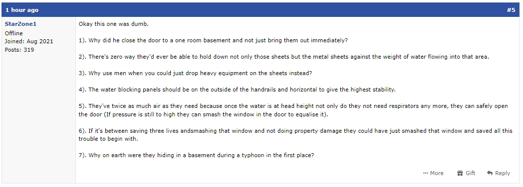 Чет реально какая-то жижа Мало того, что реально могли бы либо окна разбить и вытащить бабку с ребенком из затапливаемого подвала, либо дверь под водой ломами выломать, так и очевидный вопрос - что они блядь забыли в подвале во время наводнения? Бабка там совсем из ума выжила походу