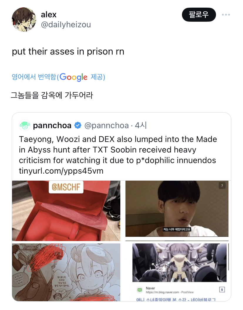 >Japanese animes are a landmine, there's no benefits from mentioning it.. they're just dumb >Even Japanese people are not fond of that author... Most Japanese people have canceled that guy >There are a lot of instances where Japanese manhwas are so f*cked that I wonder what went through their heads when making it, but this one is way beyond that, this is just insan e >unfortunately this show is consistently ranked amongst the best anime's of all time, and was one of the most popular anime's the year it came out. this is not only an issue of these specific people, but an issue of culture that allowed this to become a thing. >Japan is a fucked up country. >they should apologize for watching those manhwas >What do you expect from a Japanese kid? I can't expect her to be normal