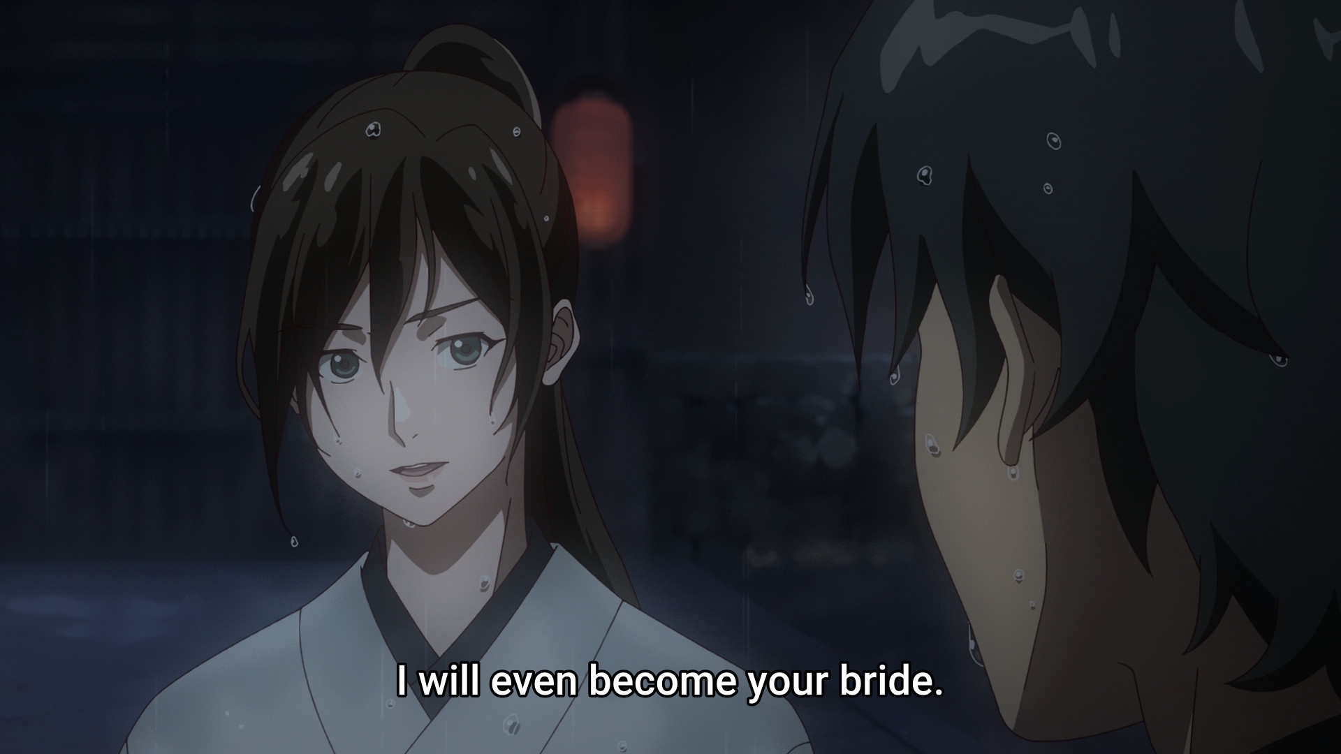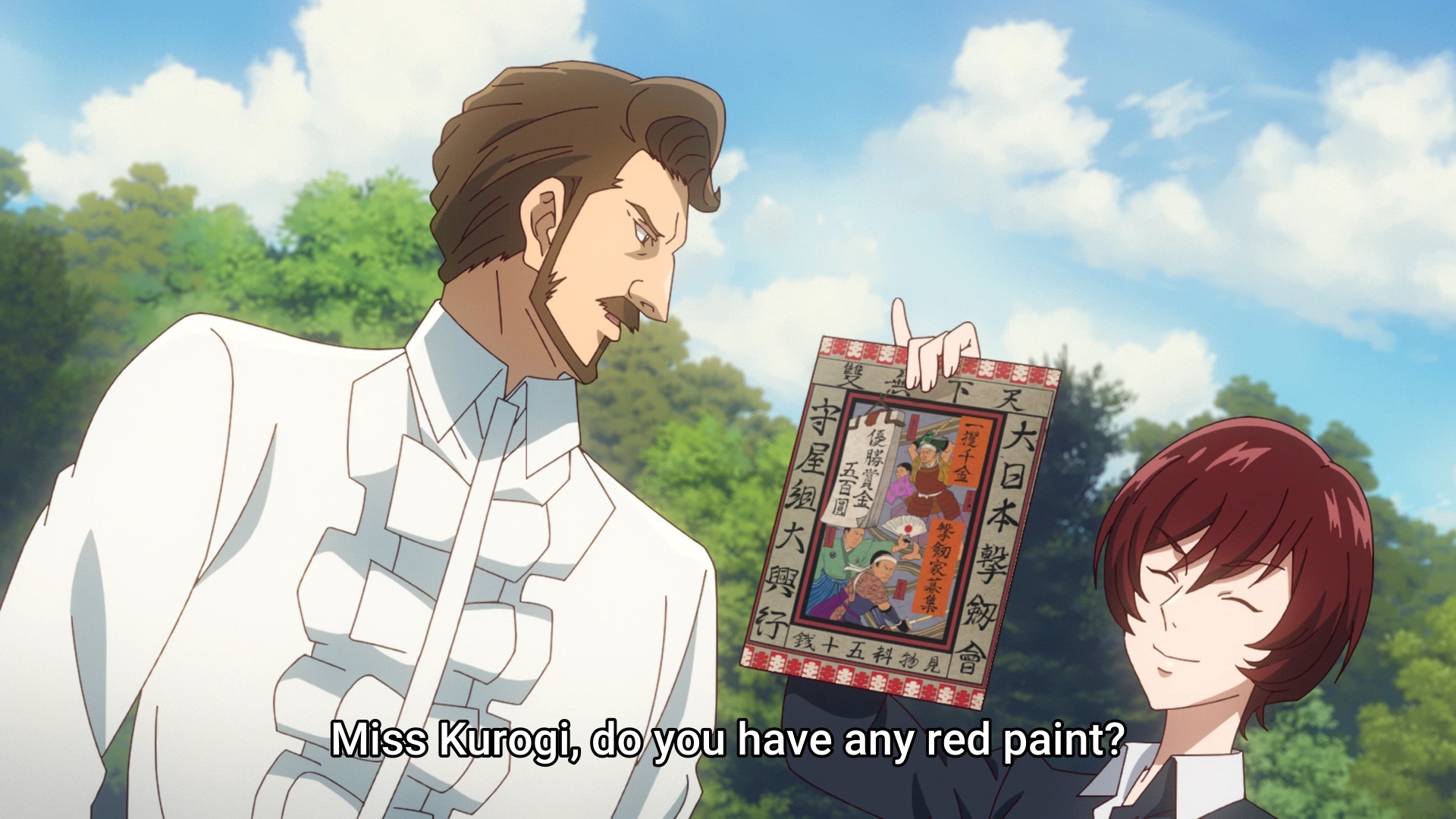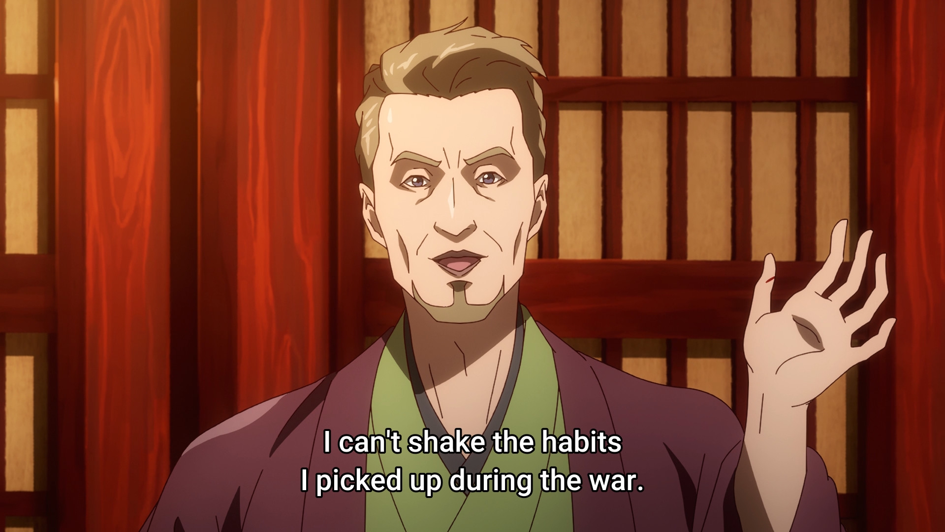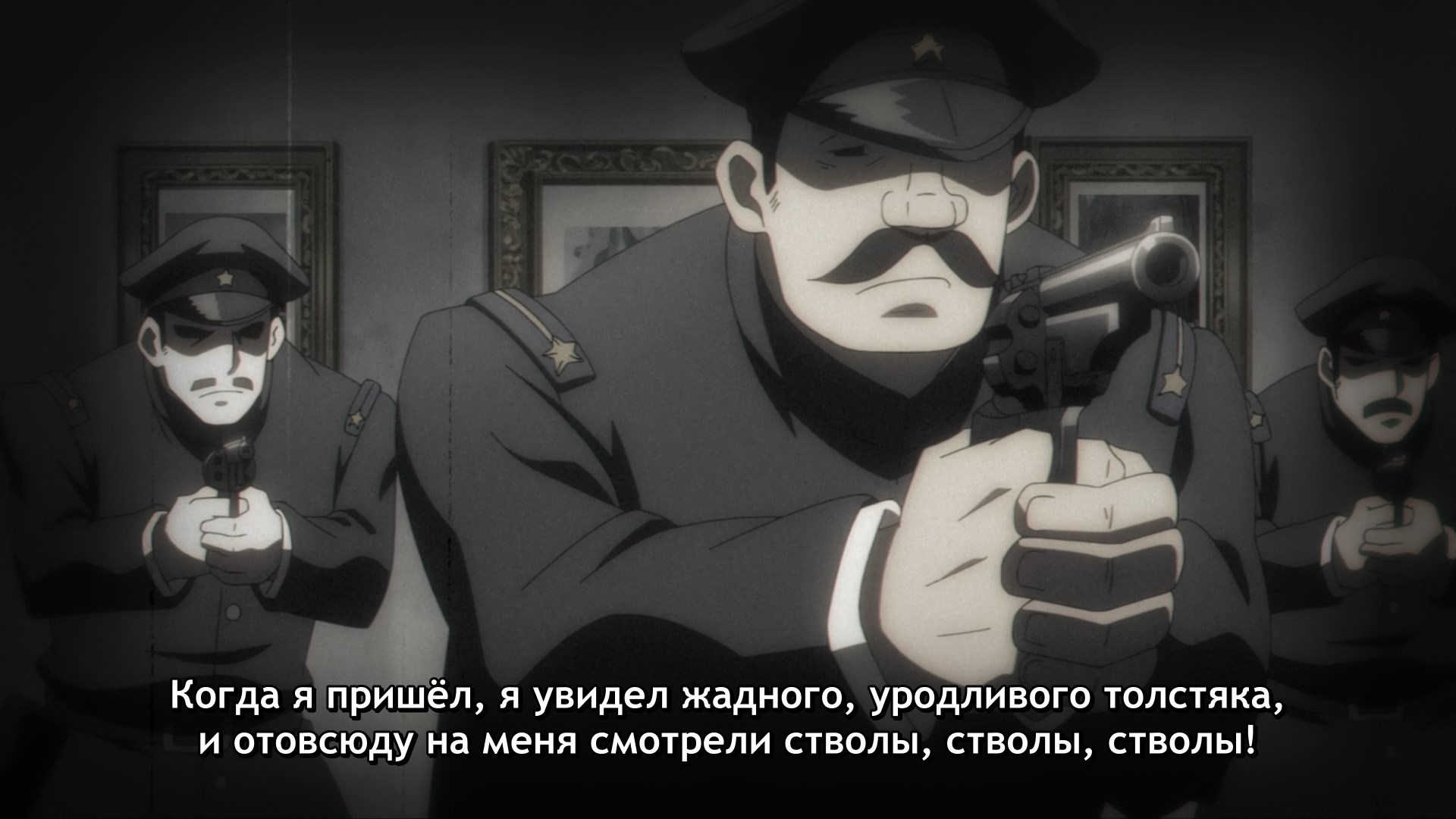 Мне неприятна тема, что невеста по уши влюбляется в убийцу жениха, и даже собой готова пожертвовать, хотя сначала отомстить думала. Ну вот сделали бы её просто левой бабой, такой же жертвой времён, там даже проговаривалась история, когда народ анализировал, кто она и откуда. За это минус балл. А в остальном всё на высшем уровне. Графон, постановка, тут всё не уровня мультиков, а прям киношное. Диалоги, накал драмы, да тут даже мелкую мимику лица постарались изобразить в немой сцене. В общем, к исполнению не приебёшься, хоть в общем сюжетец и попсовый, но даже не помню, когда я последний раз бы видел столь серьёзный подход. 9 из 10. Я бы с удовольствие глянул ещё что-нибудь подобное про Бакумацу.