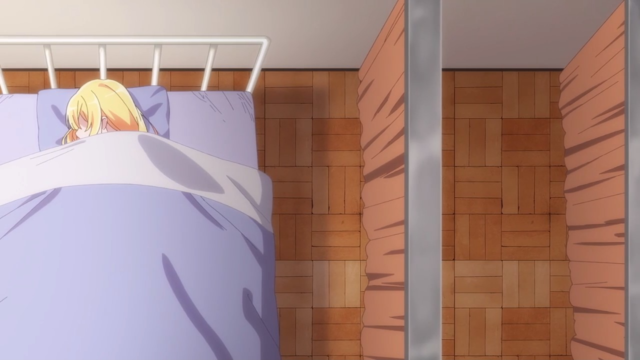 Немного попытались в визуальный сторителлинг через сновидения, но все опять портят слабые борды - тот же сб, что и в третьем эпизоде. Но на этот раз хоть хоть анимация в порядке.