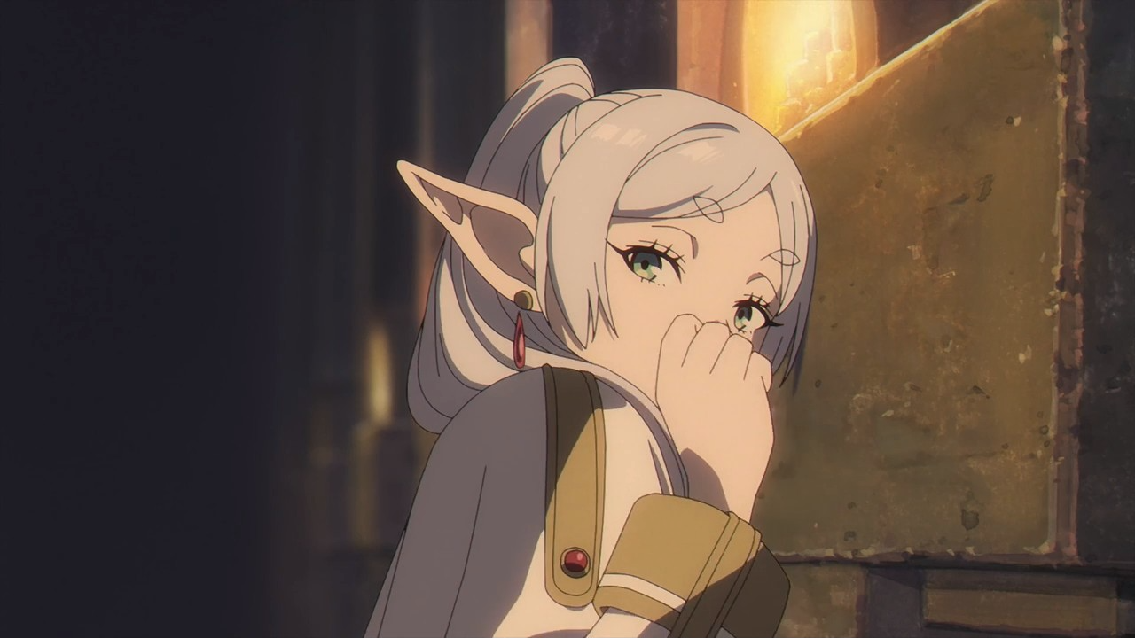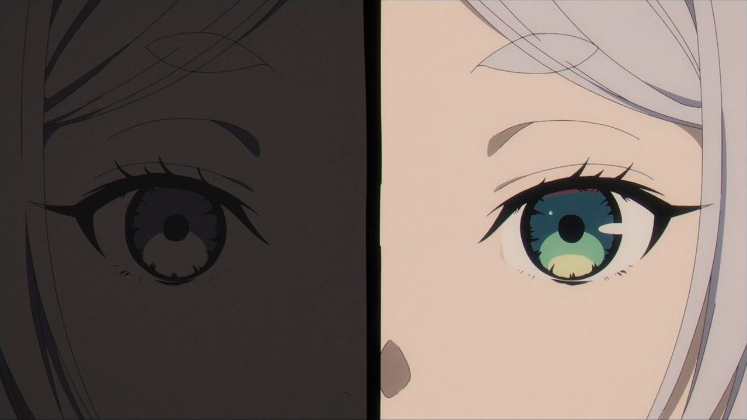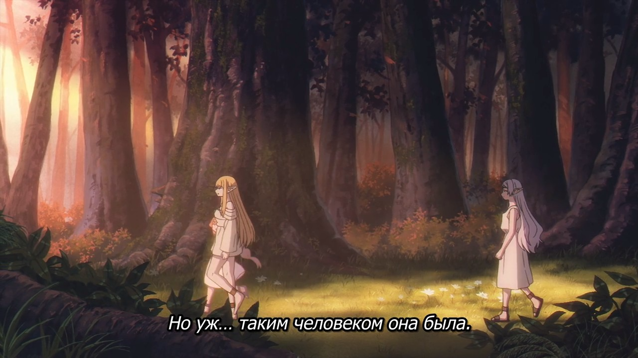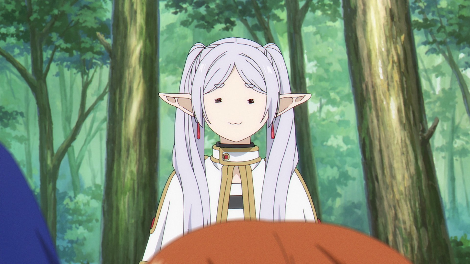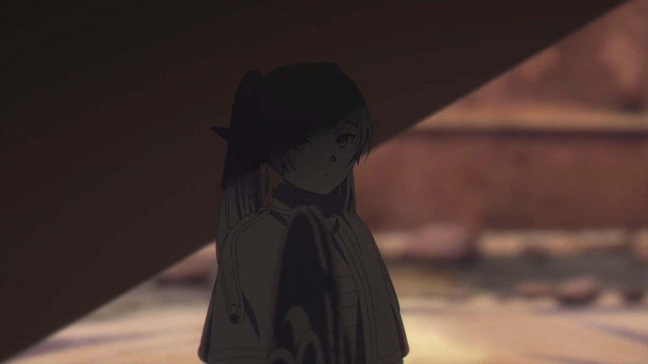 А второй просто красивая и типичная для этого аниме композиция, где персонаж находится на монотонном фоне неба в приятных глазу пастельных цветах. Если бы Фрирен лицом в камеру смотрела, можно бы сразу на обои ставить.