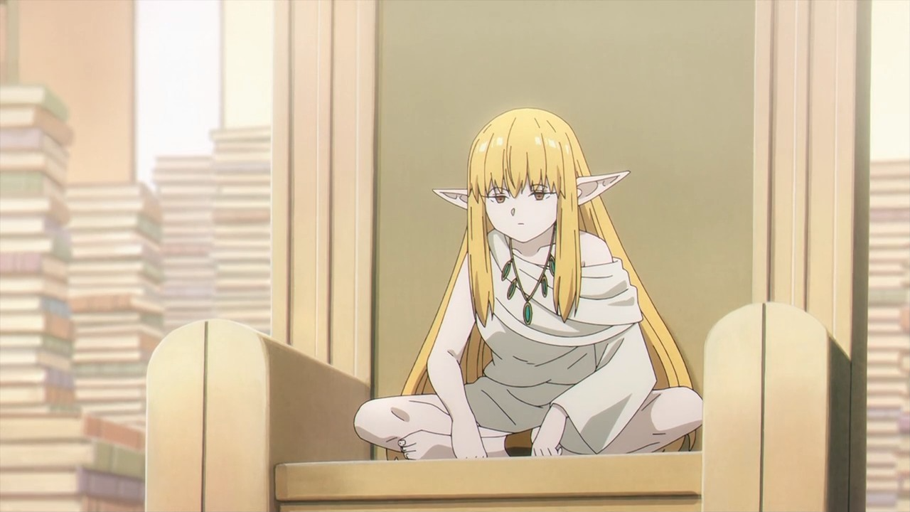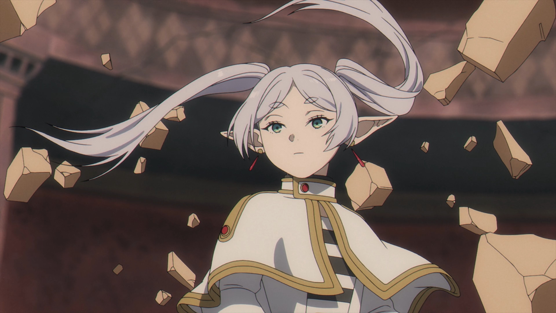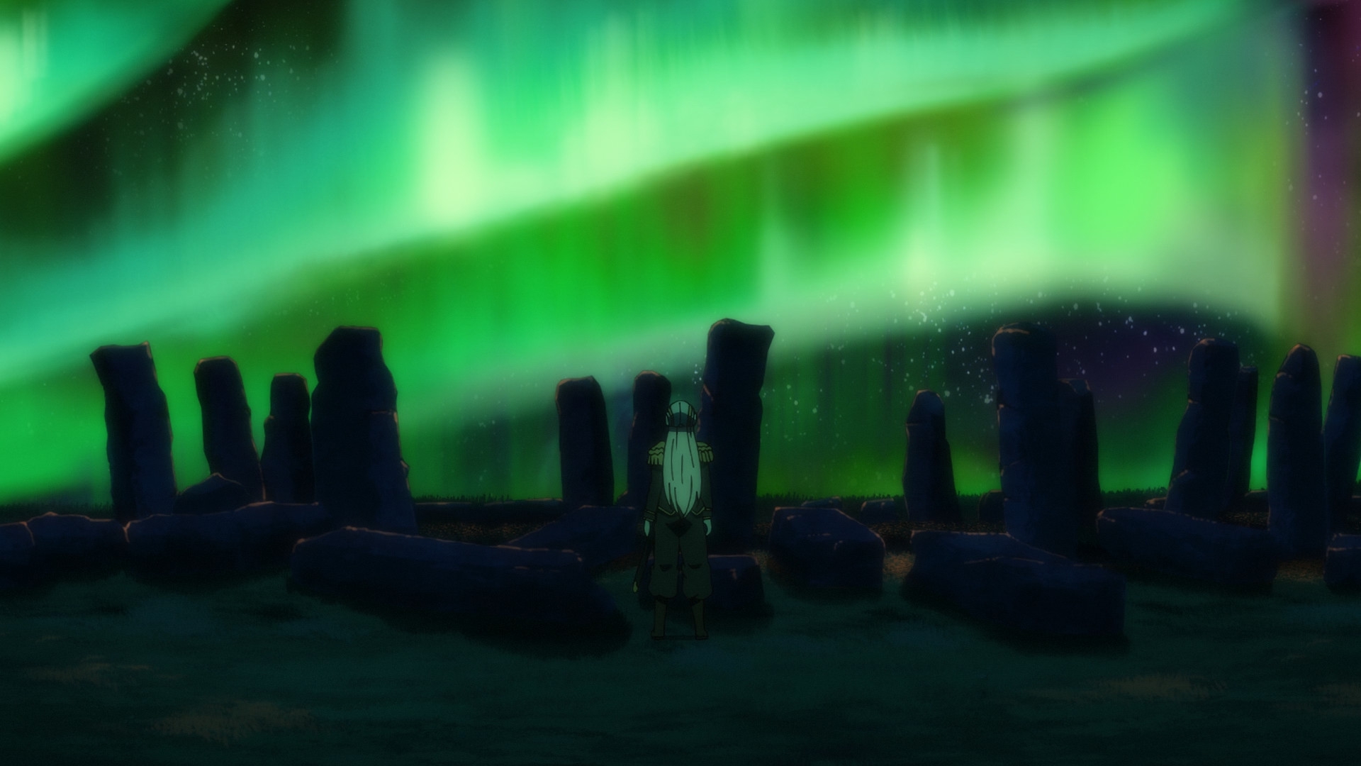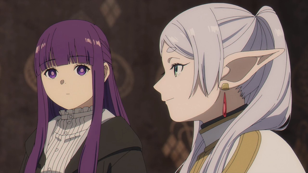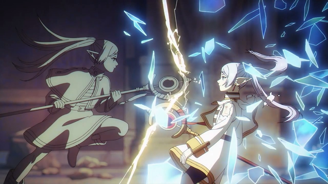А второй просто красивая и типичная для этого аниме композиция, где персонаж находится на монотонном фоне неба в приятных глазу пастельных цветах. Если бы Фрирен лицом в камеру смотрела, можно бы сразу на обои ставить.