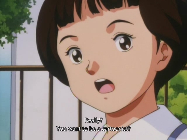 В англюсике меня тоже один момент смущал - не мог понять, почему Михо вроде говорит "манга", когда описывает кем мечтает стать, а в сабах что она хочет быть cartoonist, что я понимал как устаревший вариант "аниматор" - но вот в этом разговоре уже и из контекста понятно, что она именно мангакой хочет быть. А потом прочитал определение cartoonist и это оказывается как раз именно что мангака/автор комиксов. Не знал