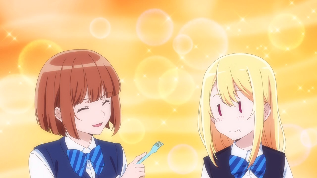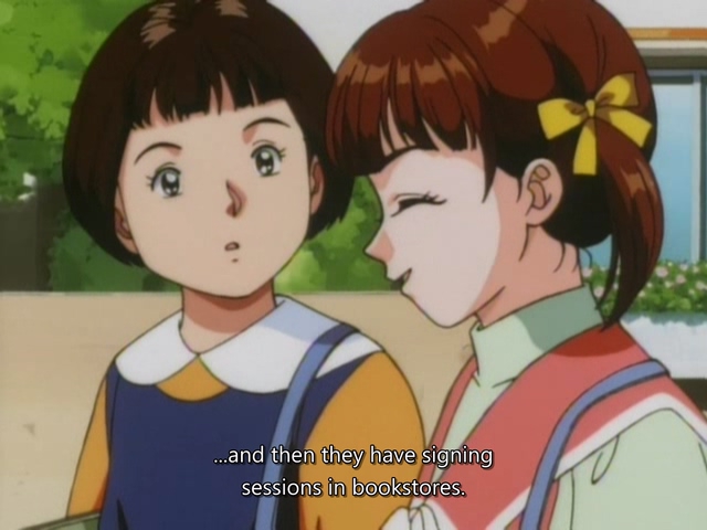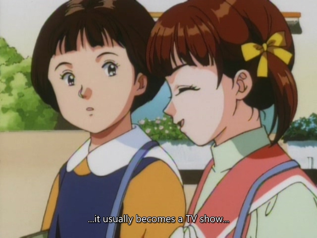 Вот это интересная идея, кстати - встречи со знакомыми и близкими в другой обстановке и другом образе. Тут уже был сюжет с девушкой родней соседей и по совместительству популярной старлеткой, которая была мила и приветлива с девятилетней соседской девочкой Михо, но конфликтовала с ней в образе конкурентки-Лалы. Теперь вот мама - мне вот всегда было любопытно посмотреть на родителей в их рабочей среде. Или наоборот на некоторых коллег когда они дома в окружении только близких.