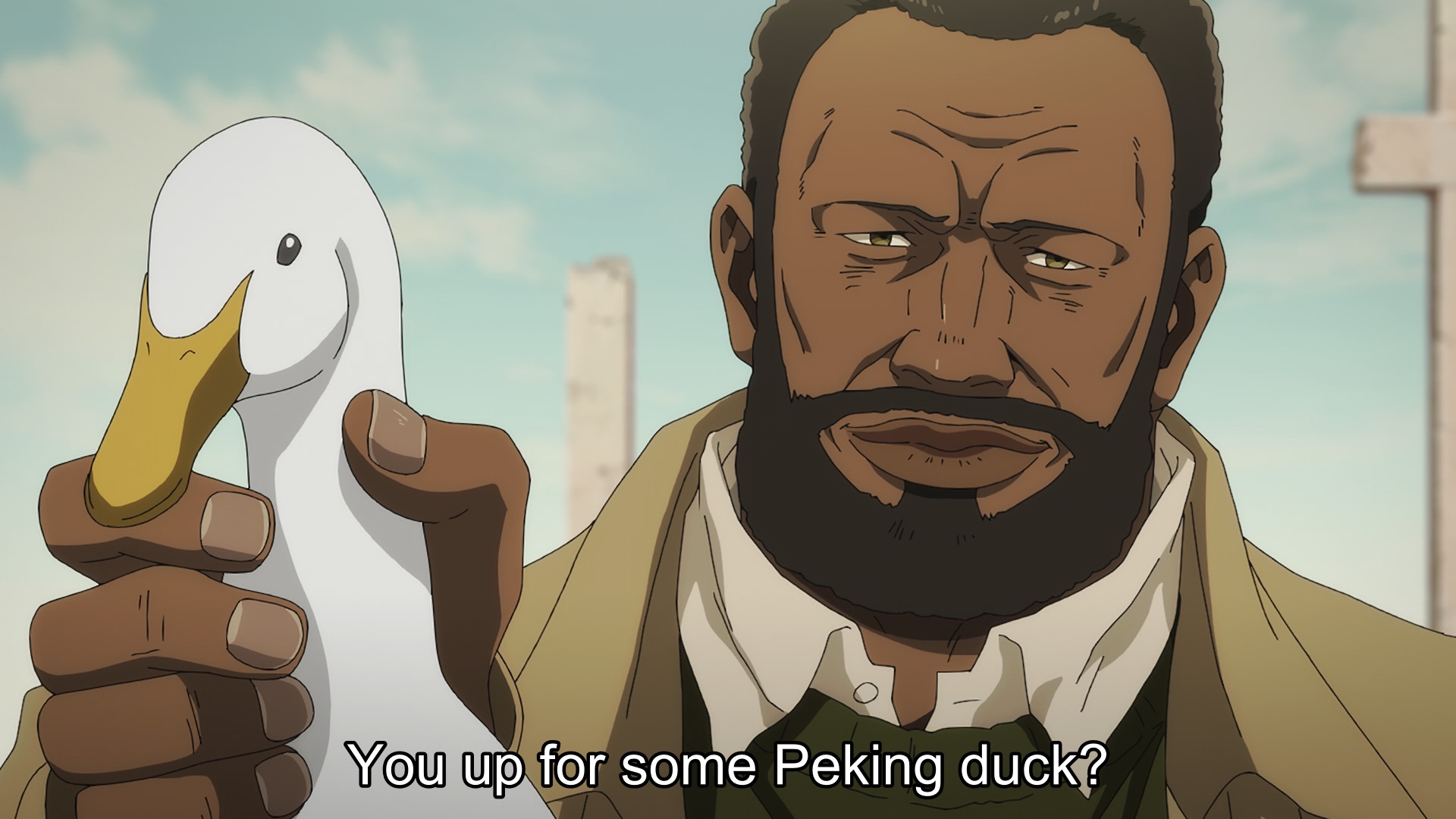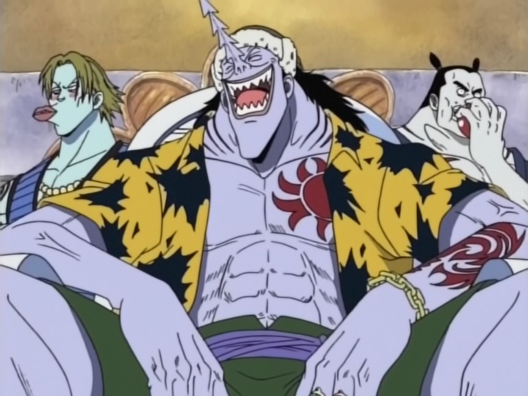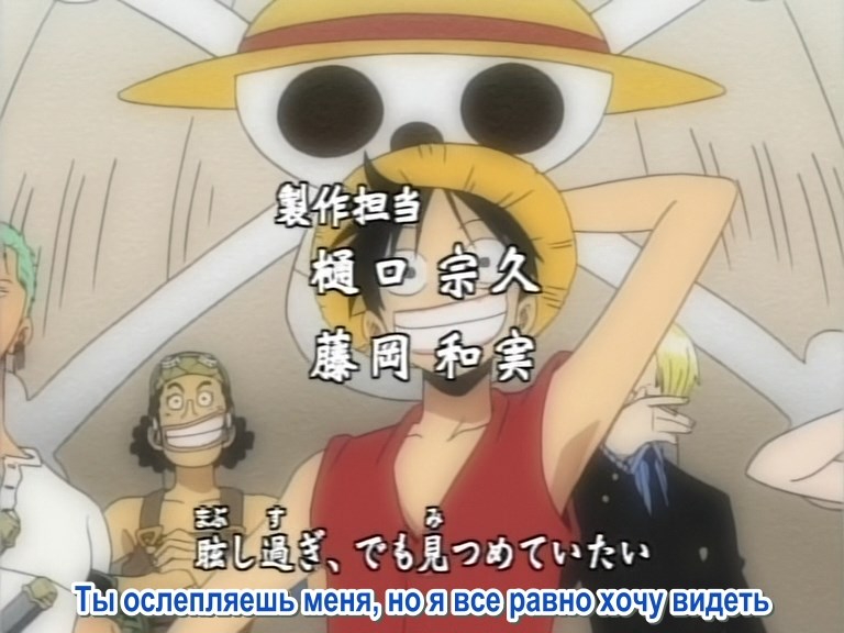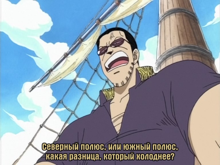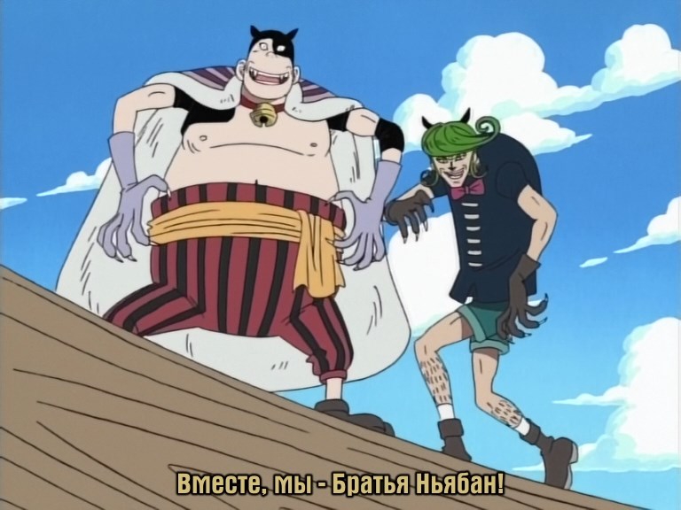 Я всё пытался отца Усоппа в сериальной команде узнать, но не смог. Там было 2 темнокожих. Один толстый в очках пилота и второй худой с дреддами. В аниме он вообще белый, что как бы подсказок мне нихуя не дало...