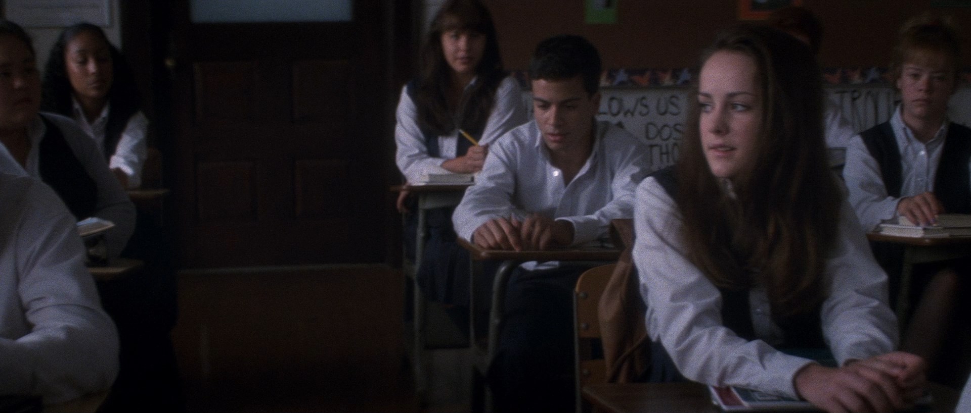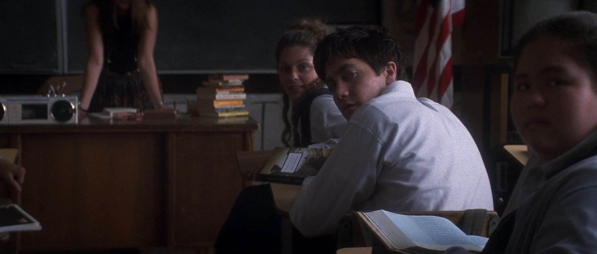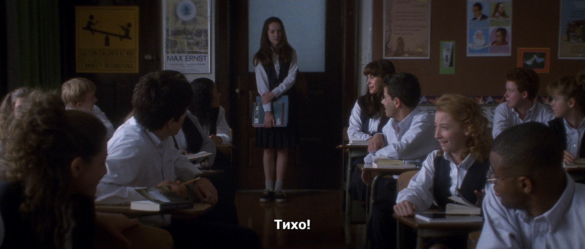 Глядите на композицию. Персонажи находятся далеко друг-от-друга (типа широкоугольник), а затем близко (типа портретник) и силуэты находятся на одном уровне. Киношные приемчики. Уважаемо.