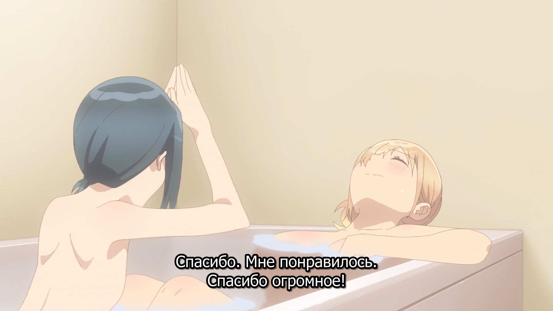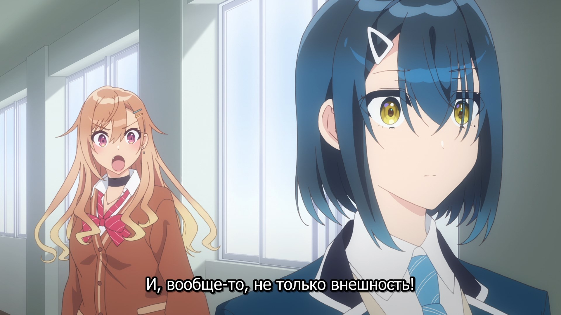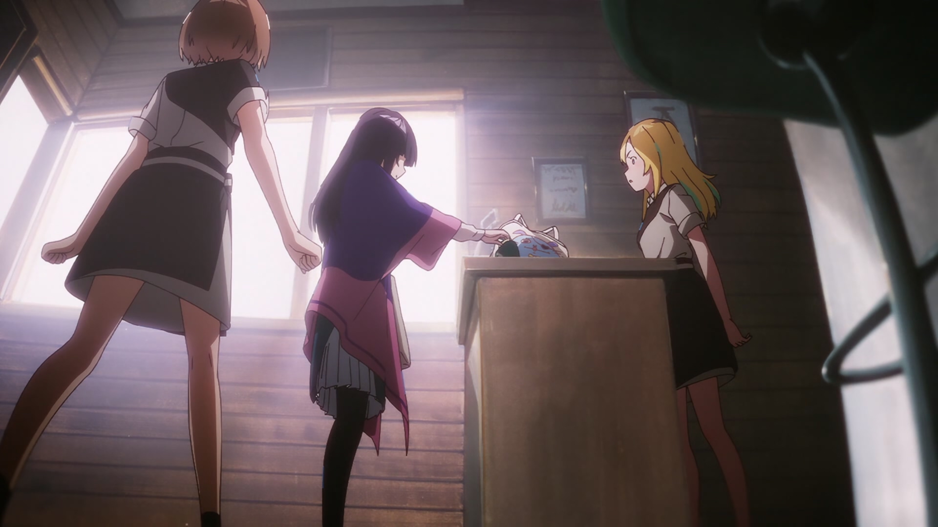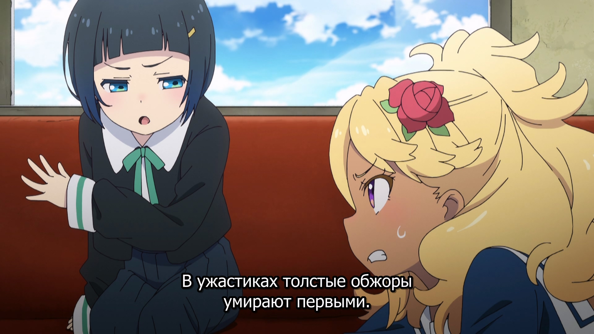 Забавно, очень мило(больше, чем забавно - в оригинальных юру-юри было наоборот), шафтово. Например опенинг чем то напомнил опенинги Хитаги и Цубасы из баке - не только, потому что с лайф-экшн, но и по своей структуре и темпу. Еще бросается в глаза очень четко-различимая уникальная визуальная идентичность каждой локации - дом, школа, улица - тоже характерный пункт в "шафтовской методичке". И дом палитрой похож на дом Мами в рекап-фильмах. Общее качество тоже на высоте - настоящий муви-буст, который далеко не всегда бывает.