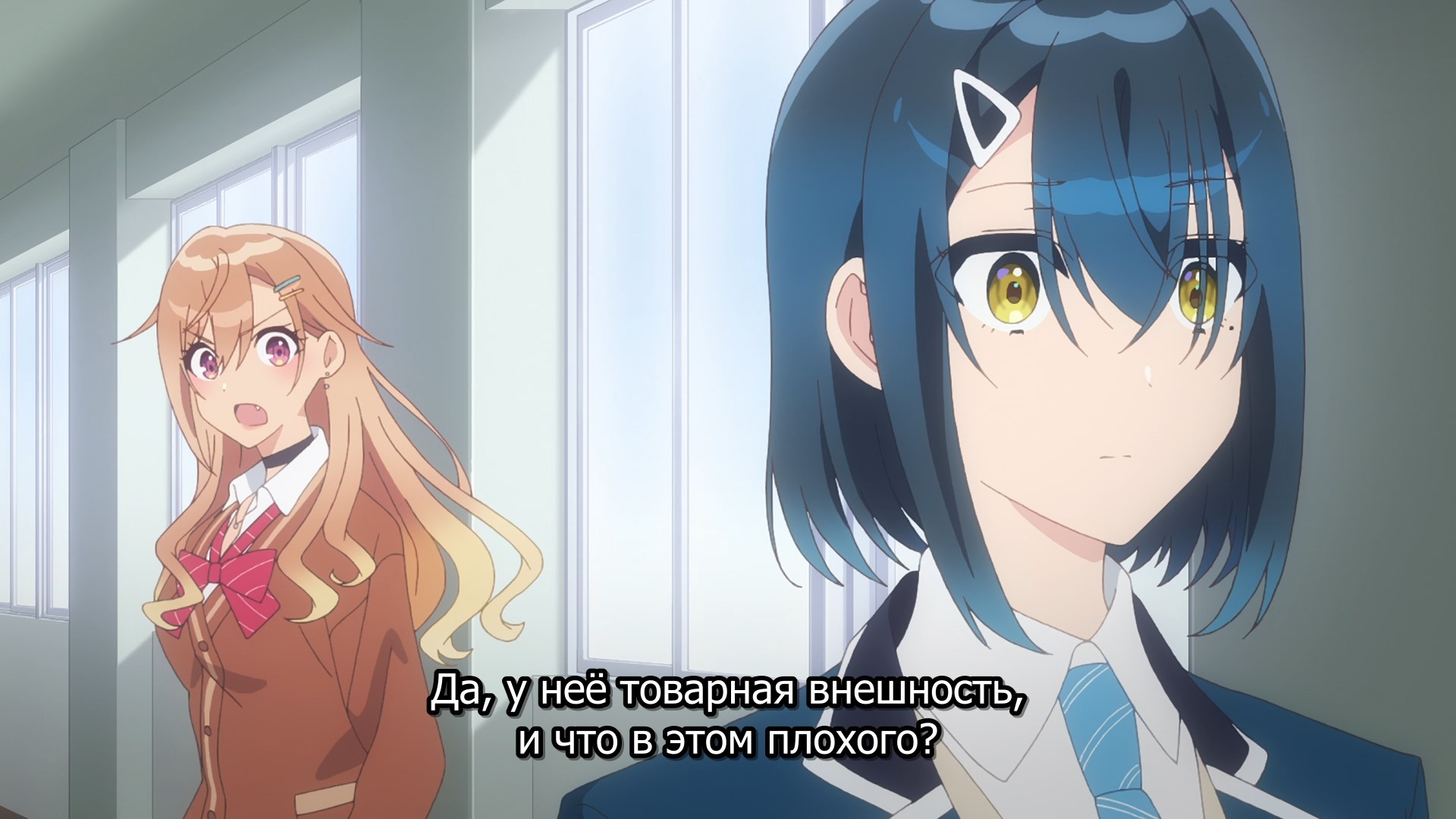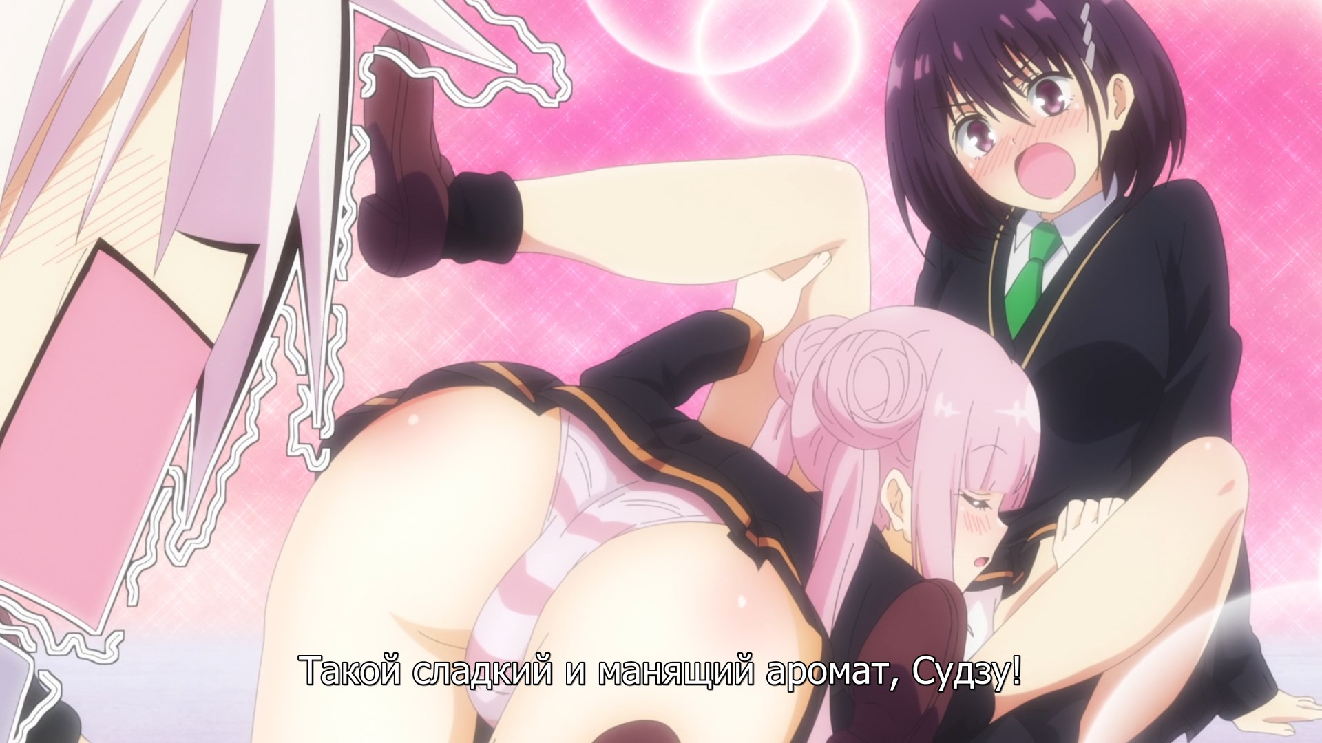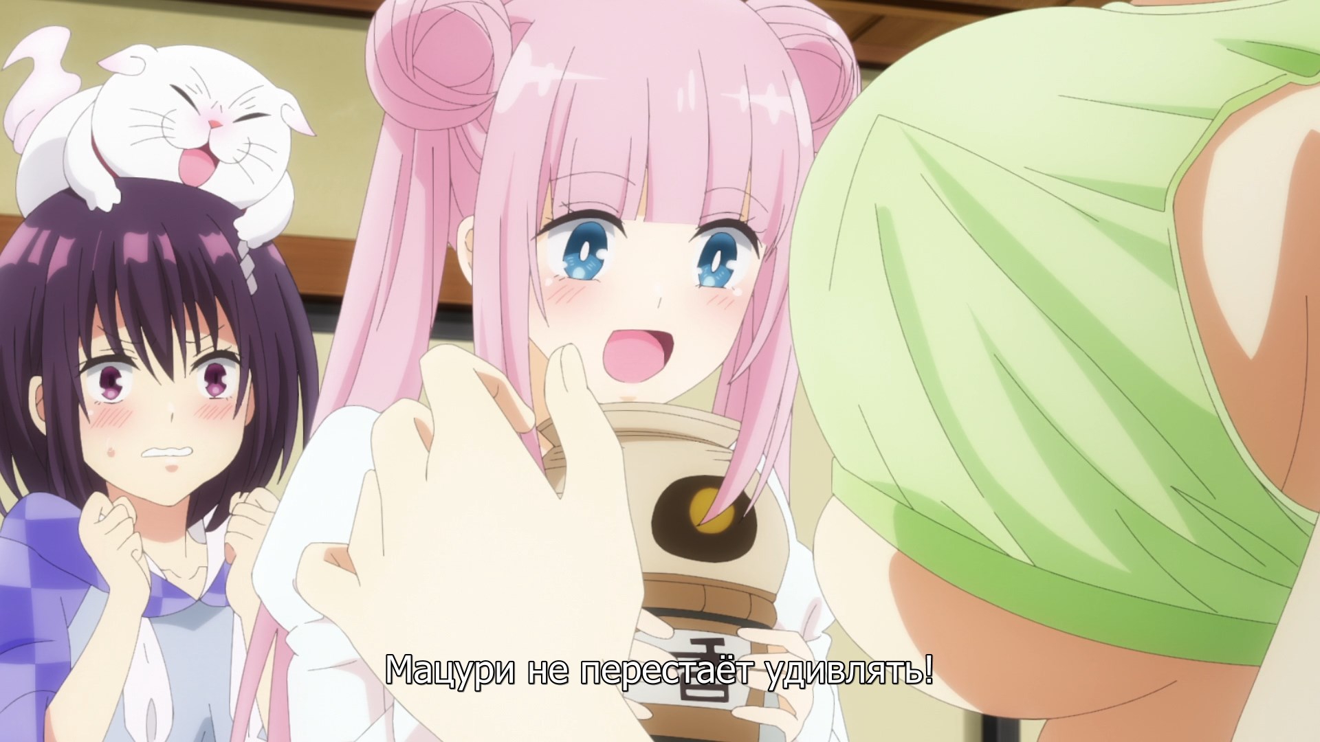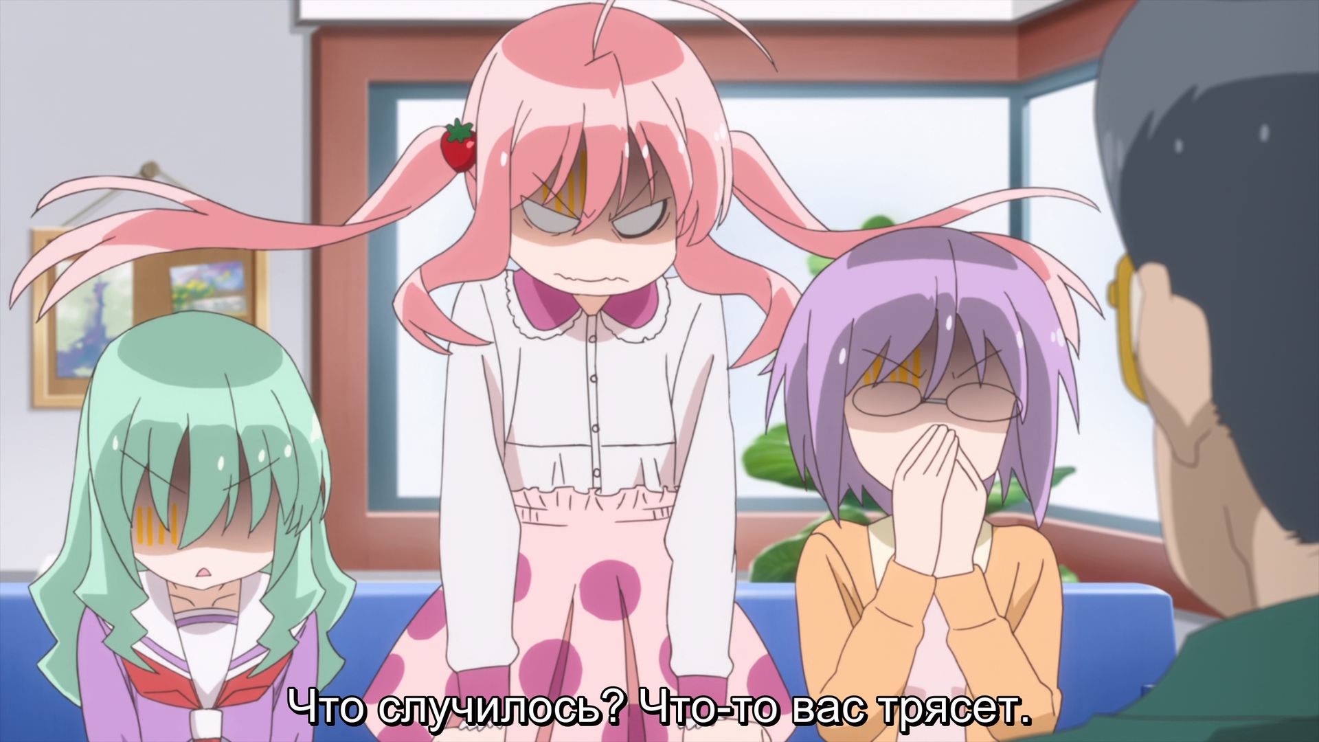 Забавно, очень мило(больше, чем забавно - в оригинальных юру-юри было наоборот), шафтово. Например опенинг чем то напомнил опенинги Хитаги и Цубасы из баке - не только, потому что с лайф-экшн, но и по своей структуре и темпу. Еще бросается в глаза очень четко-различимая уникальная визуальная идентичность каждой локации - дом, школа, улица - тоже характерный пункт в "шафтовской методичке". И дом палитрой похож на дом Мами в рекап-фильмах. Общее качество тоже на высоте - настоящий муви-буст, который далеко не всегда бывает.