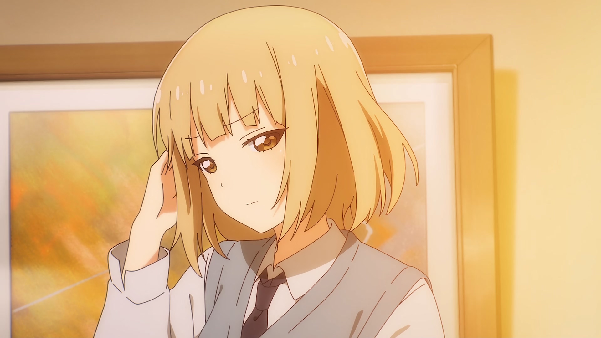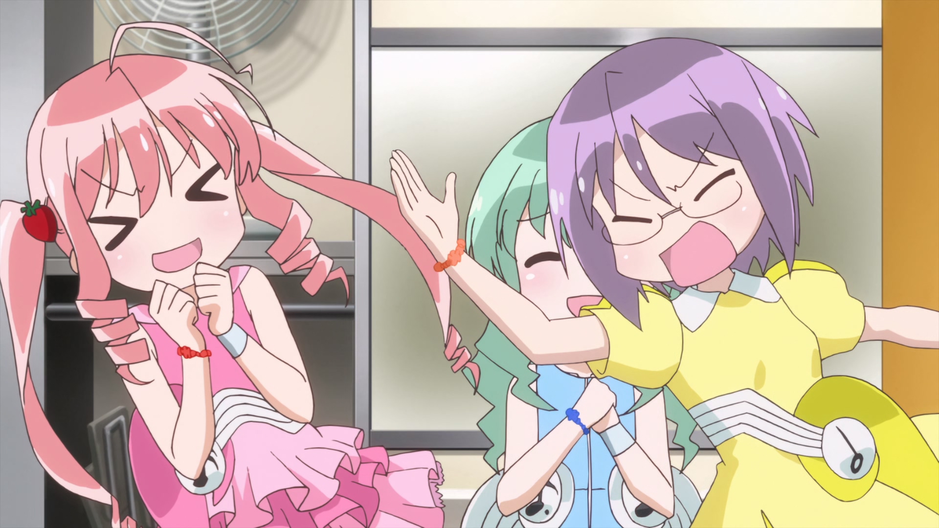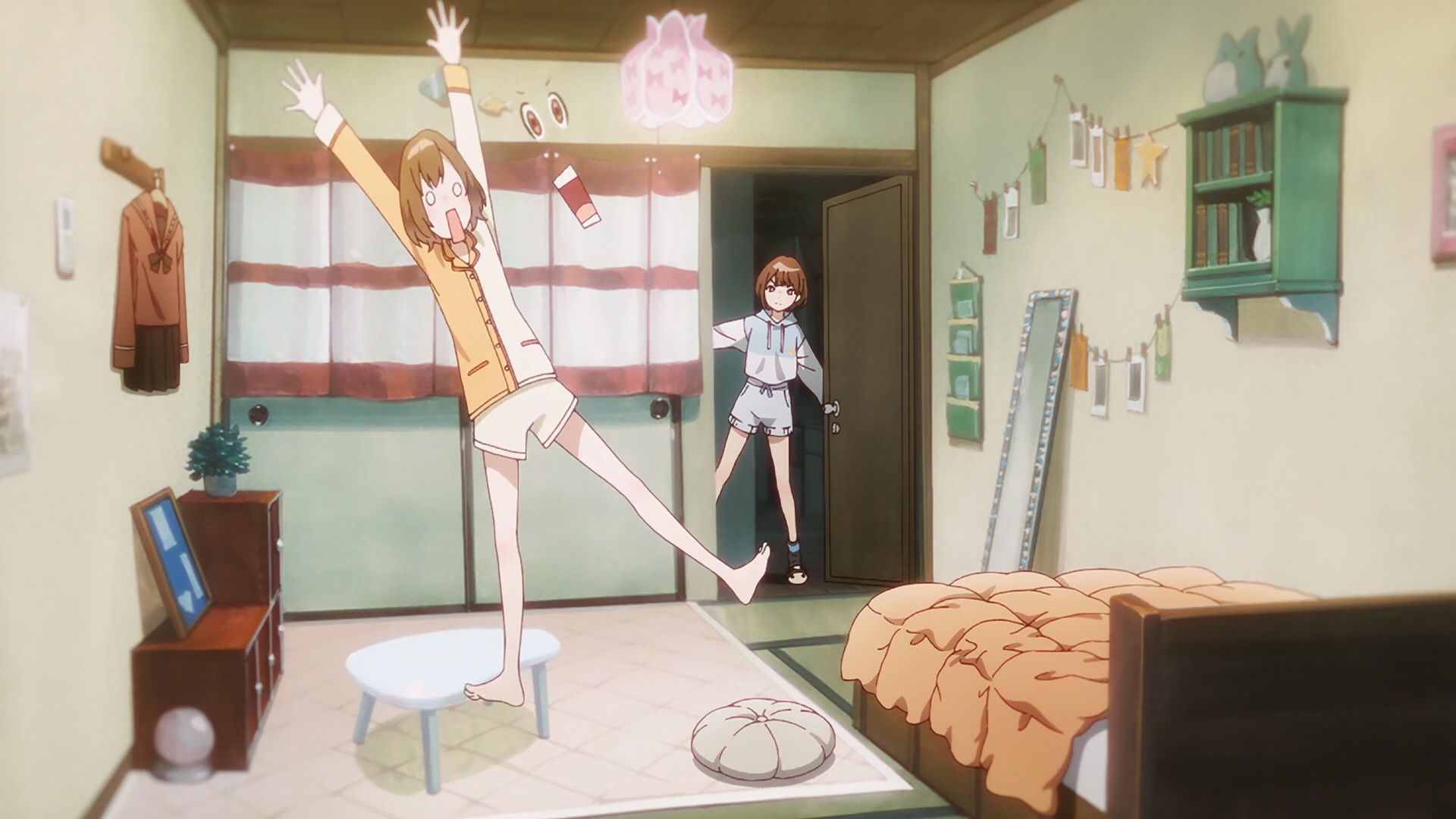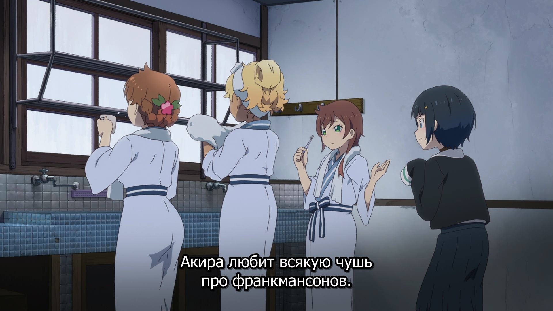 Забавно, очень мило(больше, чем забавно - в оригинальных юру-юри было наоборот), шафтово. Например опенинг чем то напомнил опенинги Хитаги и Цубасы из баке - не только, потому что с лайф-экшн, но и по своей структуре и темпу. Еще бросается в глаза очень четко-различимая уникальная визуальная идентичность каждой локации - дом, школа, улица - тоже характерный пункт в "шафтовской методичке". И дом палитрой похож на дом Мами в рекап-фильмах. Общее качество тоже на высоте - настоящий муви-буст, который далеко не всегда бывает.