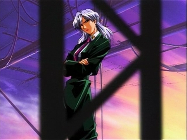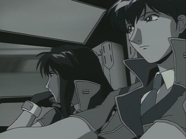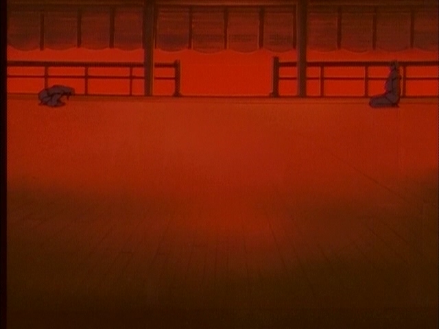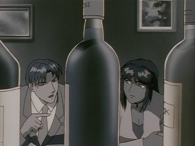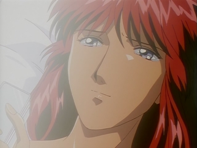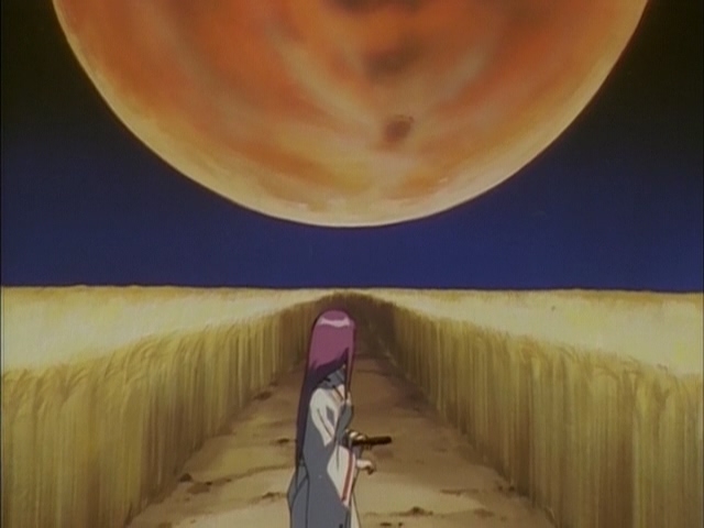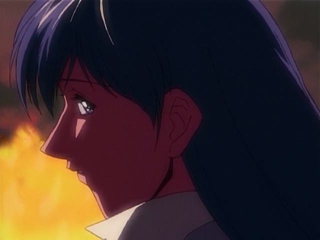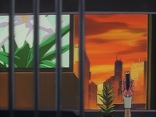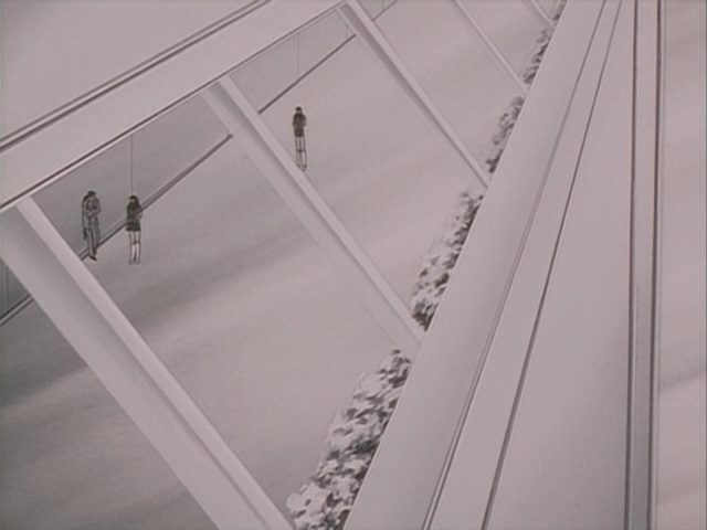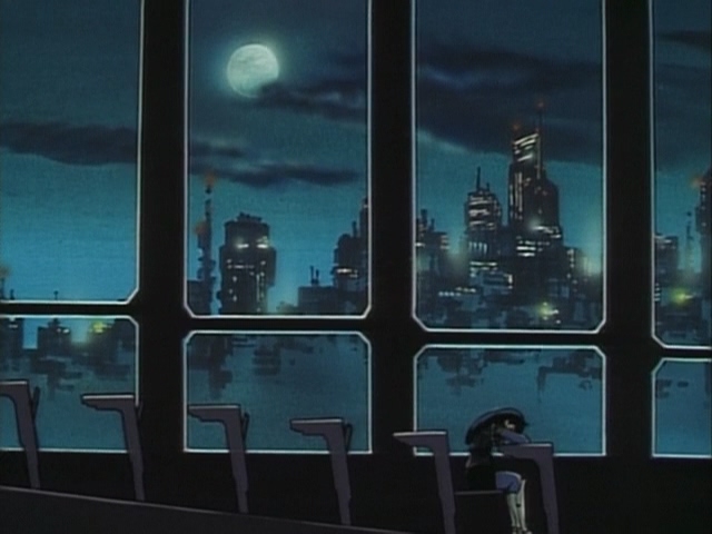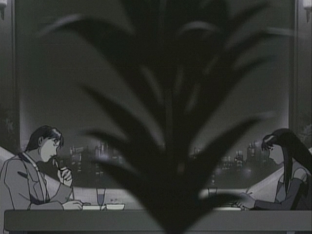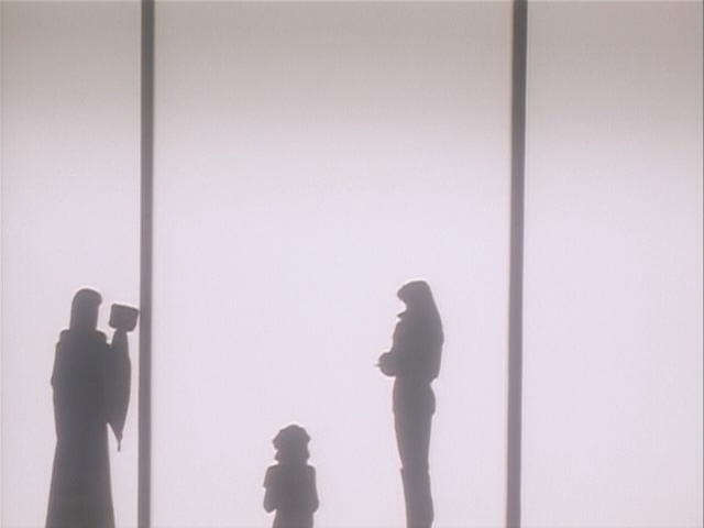 Прикольно, в этом фрагменте чувствуется особенно сильное влияние Икухары, особенно в "монтаже" - от сцен свиданий пары к этим девушкам, показанным силуэтами, обсуждающим их - явно копируя А-ко, Б-ко и С-ко из Утены. Собственно Такеучи и шафт как раз буквально за пару месяцев до этого над Утеной работали.