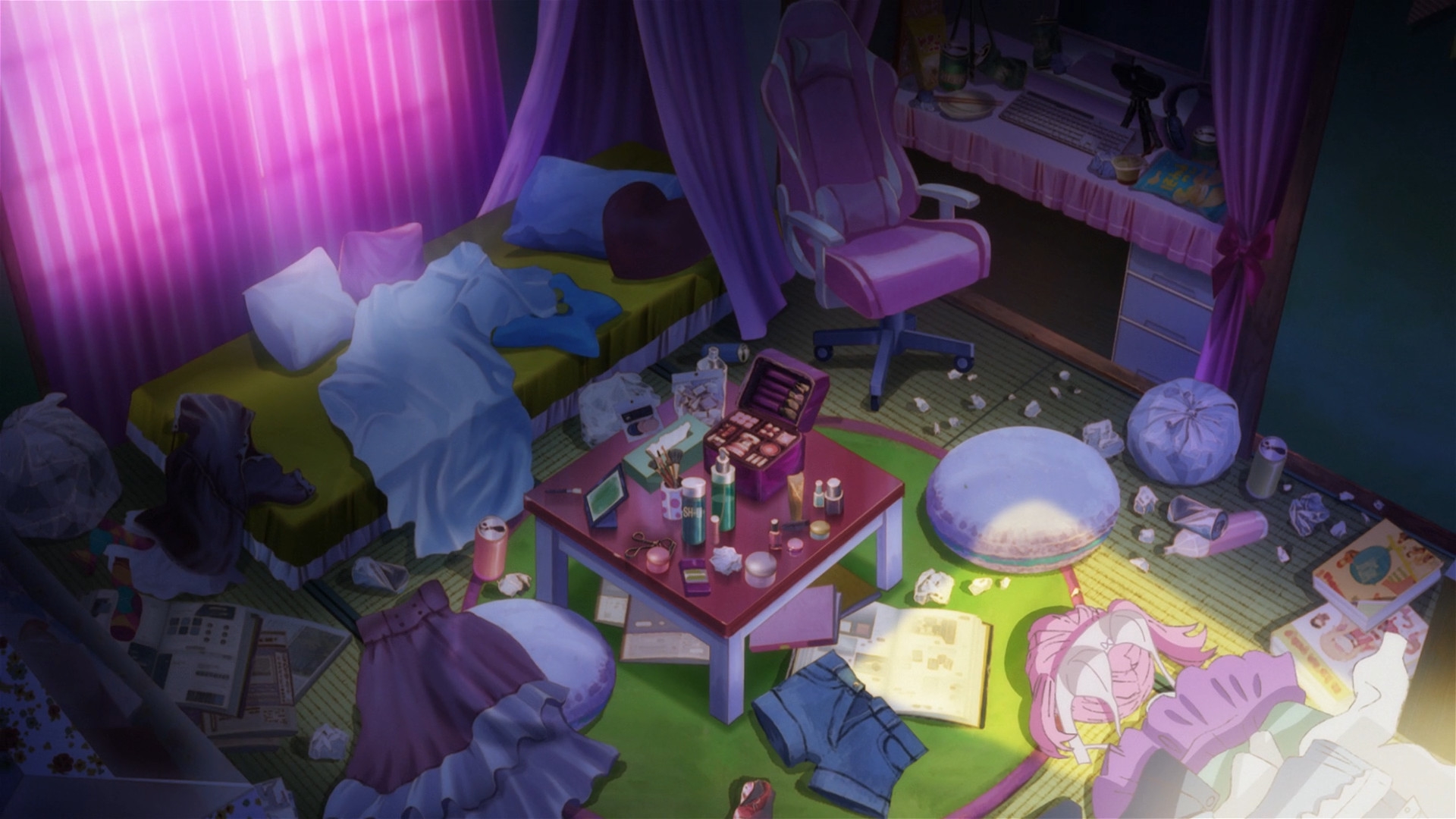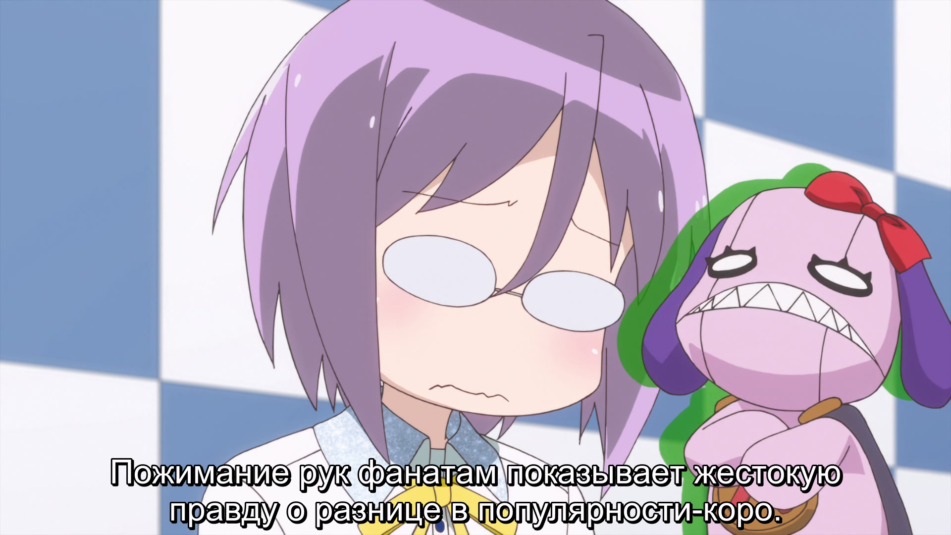 Приятный слайсик, одна из основных фишек которого это камео реальных сейю - вот только я не сейю-фаг и по именам и голосам знаю из всех там только Хироши Камия, Кугумию Рей и Юи Хорие. В какой-то мере это ограничение, ведь понятно, что реальных людей не покажешь как-нибудь нелицеприятно в качестве напыщенных и самовлюбленных мудаков, хотя тут конечно и цели такой не было(была бы - можно было бы сделать это через левых персов) - все же это про то, как милые девочки милые вещи делают, а не битое стекло друг другу в салат подсыпают. Так что все эти сейю тут - приветливые и понимающие ветераны, всегда готовые помочь советом, только шутка с Юи Хорие и несоответствием между ее публичным образом и реальностью делала что-то другое. В итоге я думаю girlish number был смелее в изображении индустрии и характеров сейю, хотя именно самой их работы тут вроде больше(я уже не так хорошо помню gn). 6/10