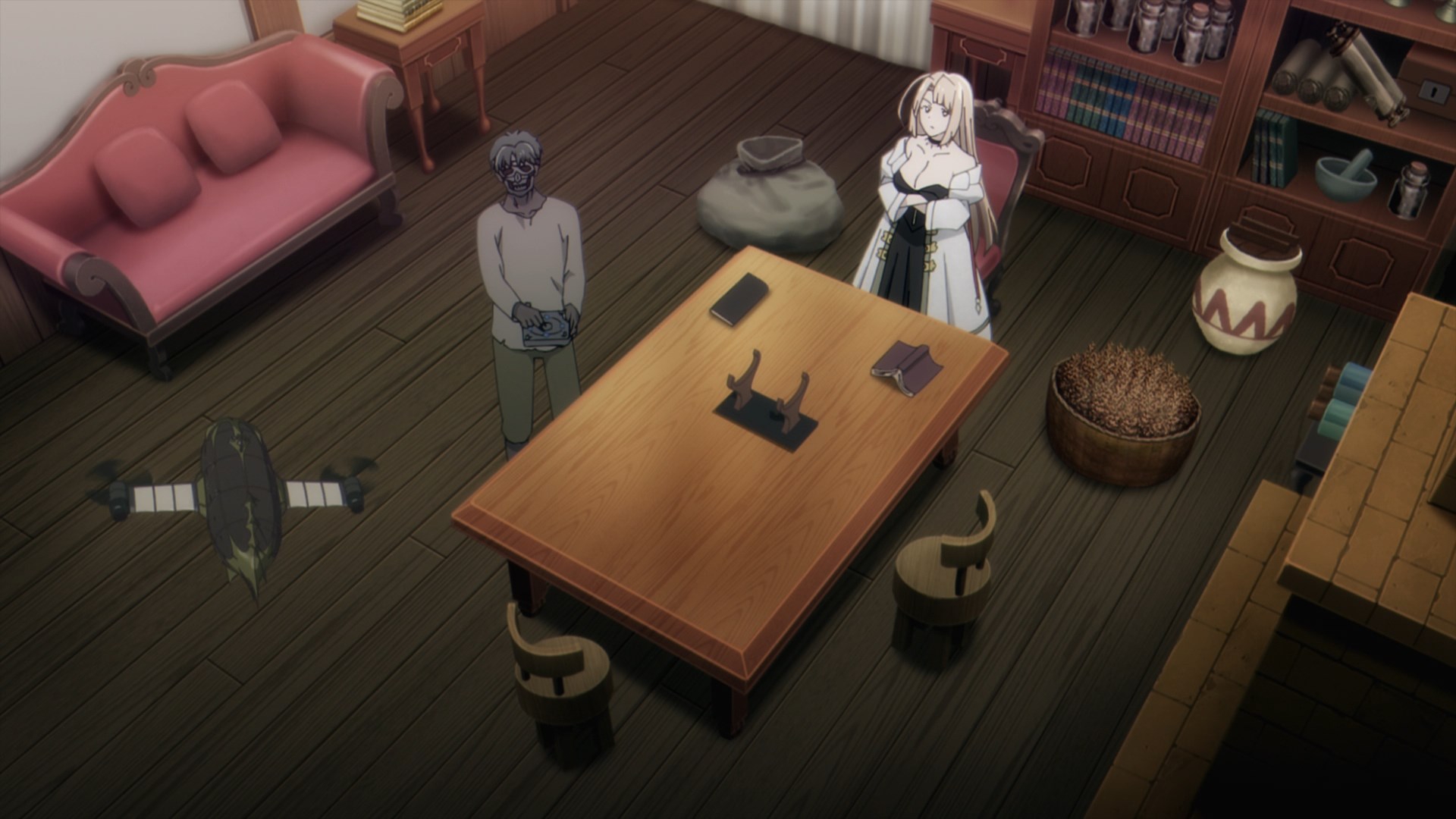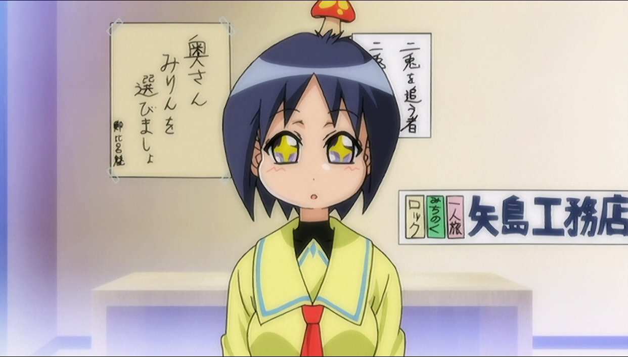 Даже проверил был ли этот "персонаж" - игрушка, с которой гг разговаривает и через которую объясняются профессиональные моменты - в манге или это влияние широбако. Но нет, был(может быть как раз тут влияние наоборот)