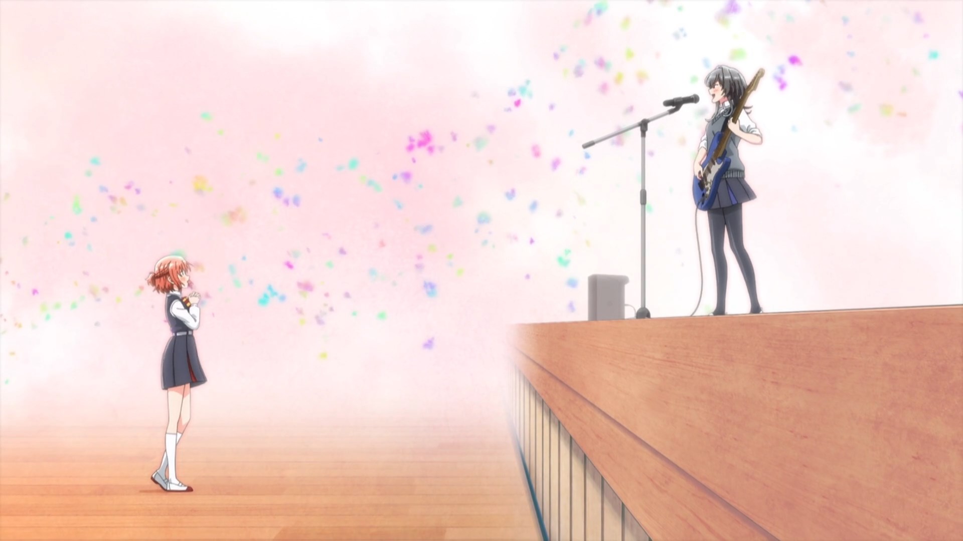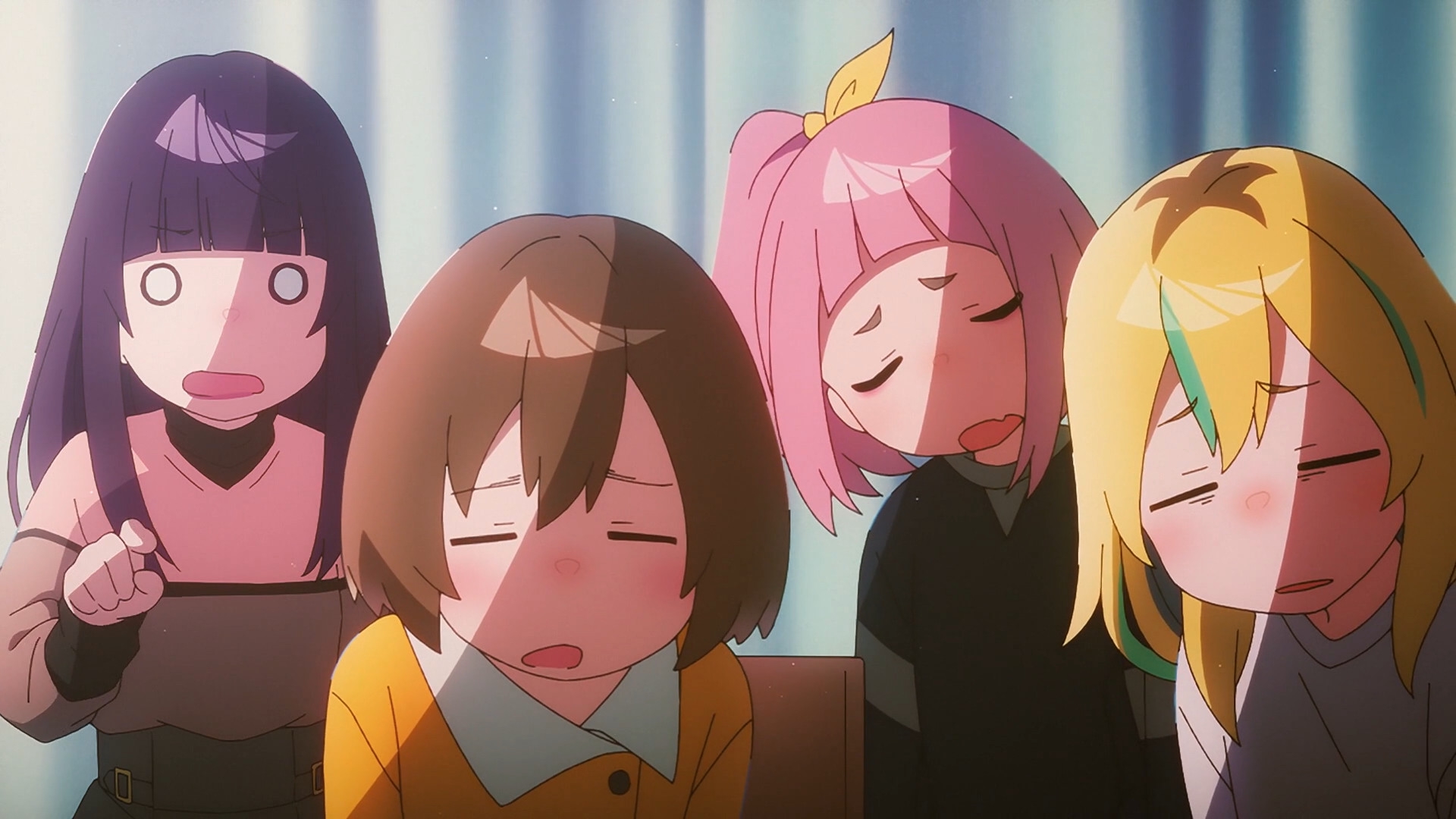А в реальности из всех троих как раз у неловкой и наименее популярной гг лучше всех карьера сложилась. Я так почекал стафф и получается всю троицу набрали из начинающих сейю - у всех первые роли в 2014(за год до выхода тайтла) и только суппортные. И как и в тайтле тоже сформировали из них группу с таким же названием.